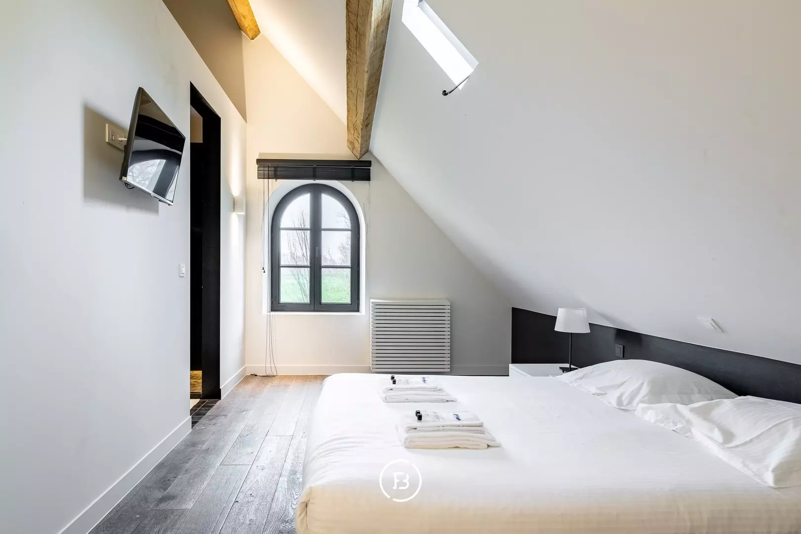 DammeLocated just 50 meters from the picturesque center of Damme and alongside the idyllic Damse Vaart, this stunning farmhouse offers an exceptional living experience. Surrounded by artisanal bakers, butchers, charming coffeehouses, and cozy restaurants, this property seamlessly combines rustic charm with modern comfort.