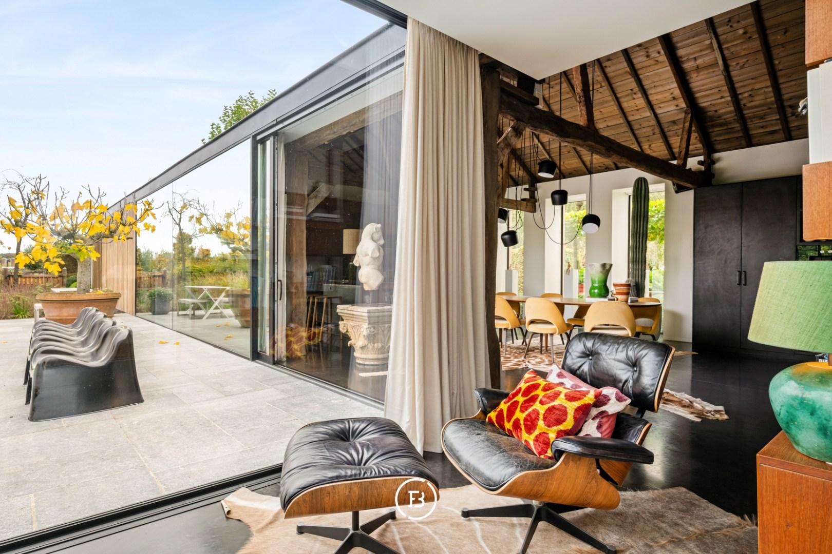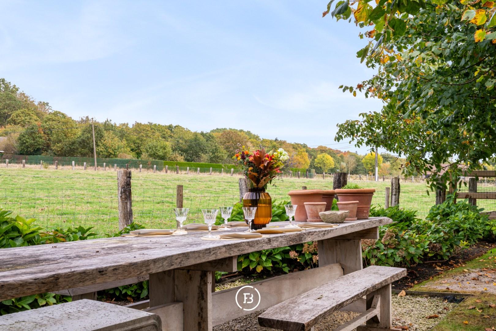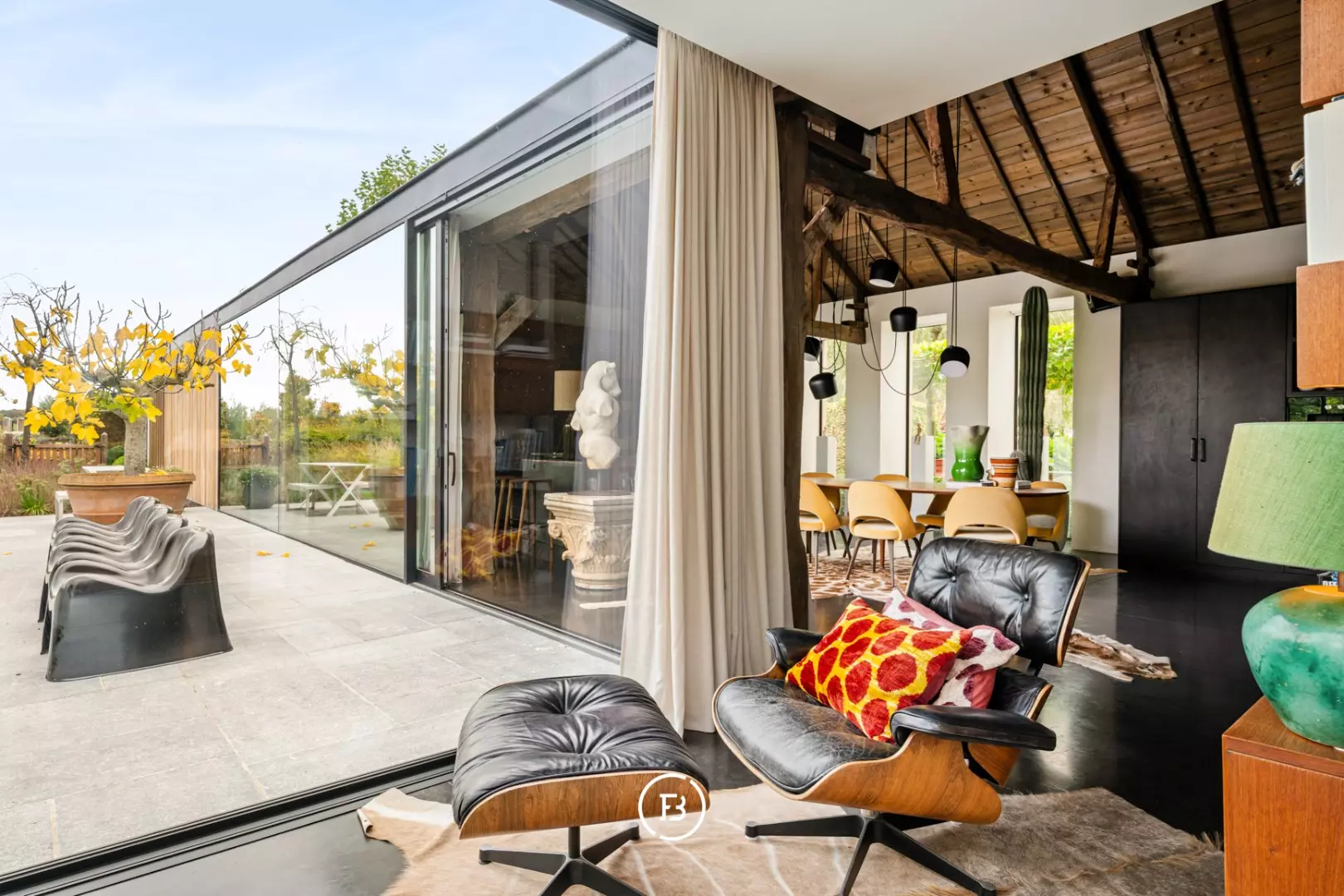 At the edge of the Hertsberge woods, hidden behind a stately driveway, lies this exceptional property on a stunning 7,031 m² plot. Here, you can enjoy complete peace, privacy, and breathtaking views over the surrounding nature. The fully rebuilt and energy-efficient farmhouse combines loft-style architecture, luxurious finishes, and tasteful décor with a warm and inviting atmosphere.