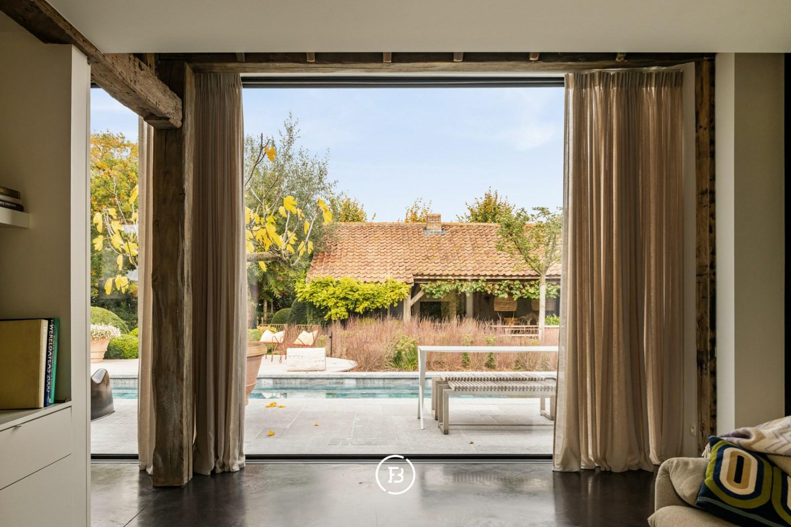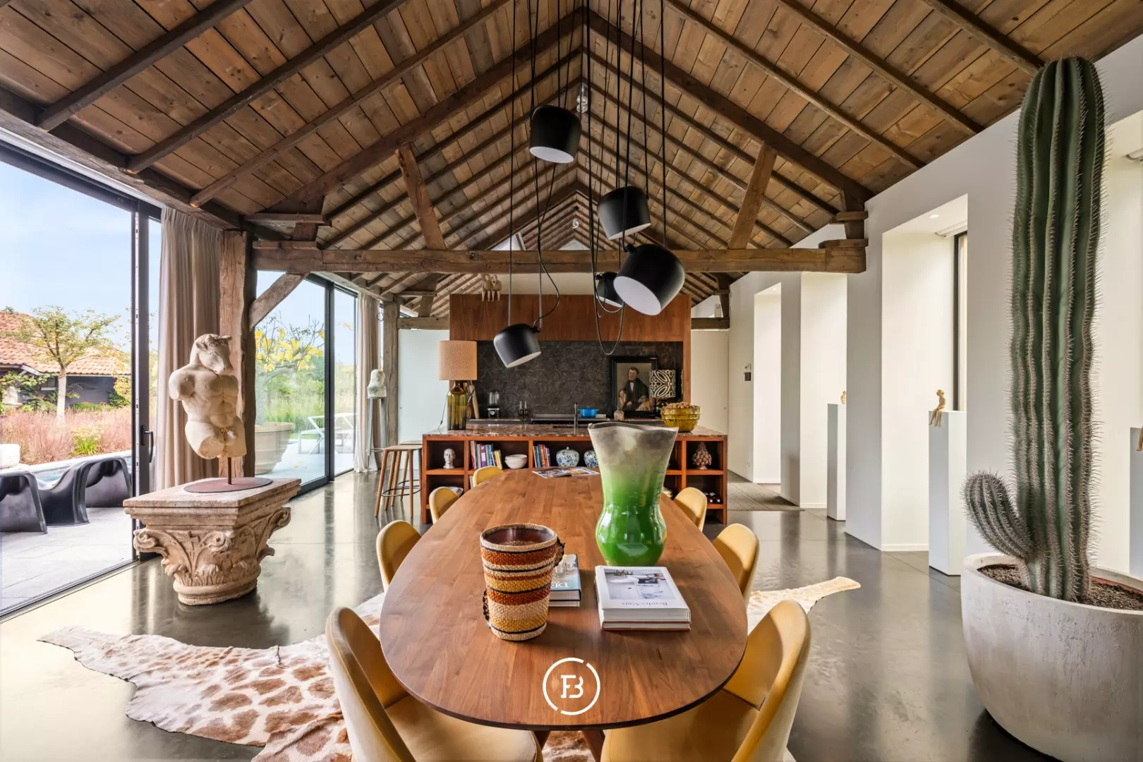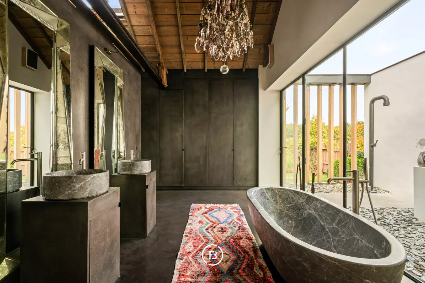 At the edge of the Hertsberge woods, hidden behind a stately driveway, lies this exceptional property on a stunning 7,031 m² plot. Here, you can enjoy complete peace, privacy, and breathtaking views over the surrounding nature. The fully rebuilt and energy-efficient farmhouse combines loft-style architecture, luxurious finishes, and tasteful décor with a warm and inviting atmosphere.