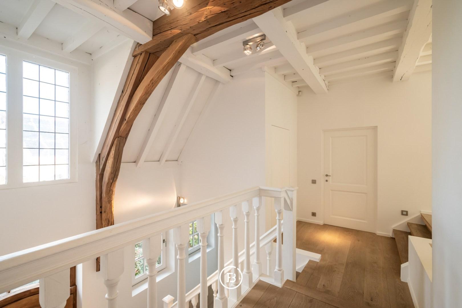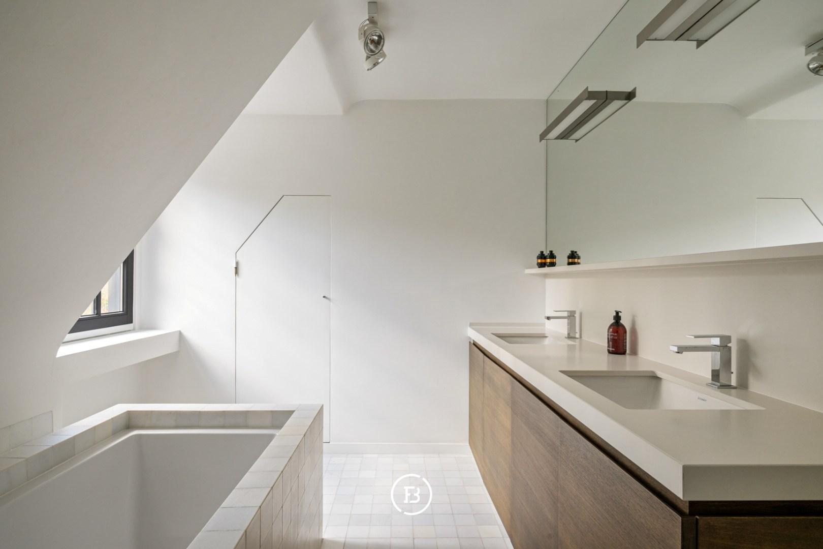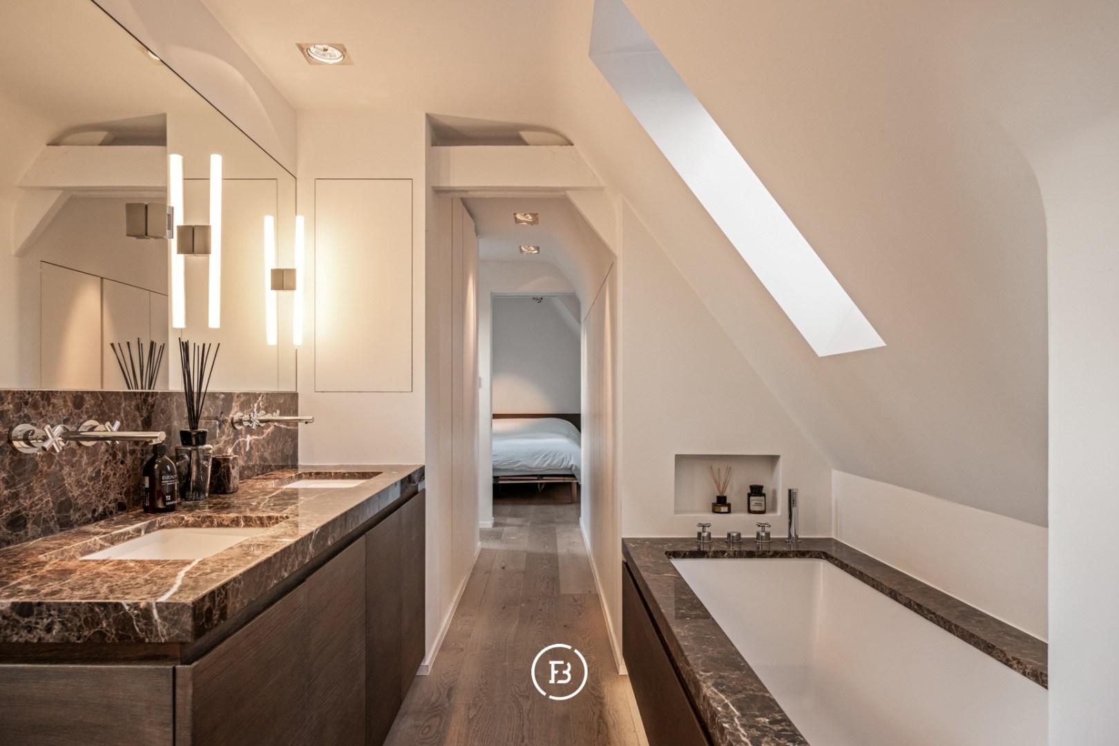 The entire top floor is designed as a luxurious master suite with a spacious dressing room and a high-quality bathroom with a bath, double sink, toilet, and a shower/hammam. An oasis of peace and comfort, in line with the exclusive appearance of the property.