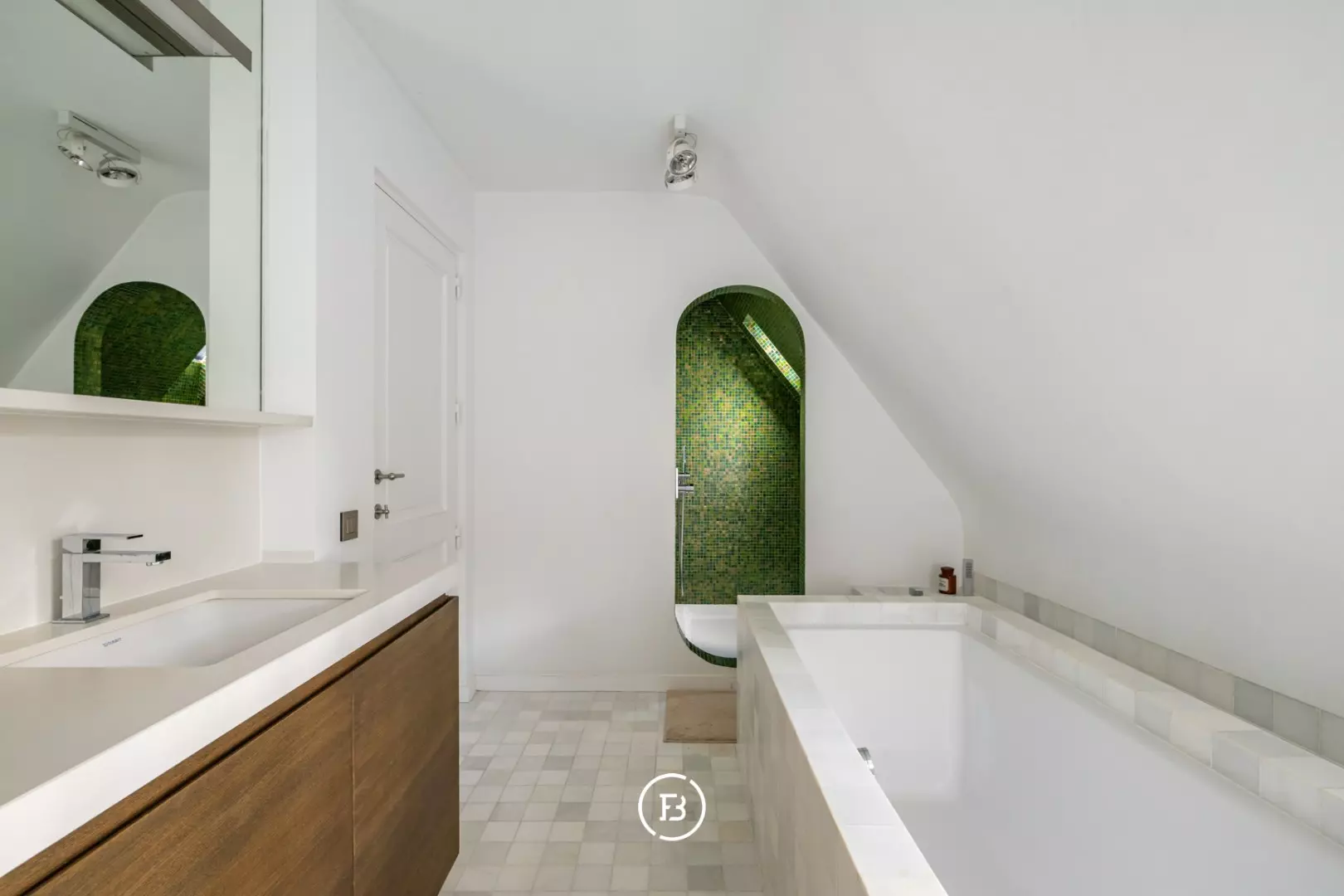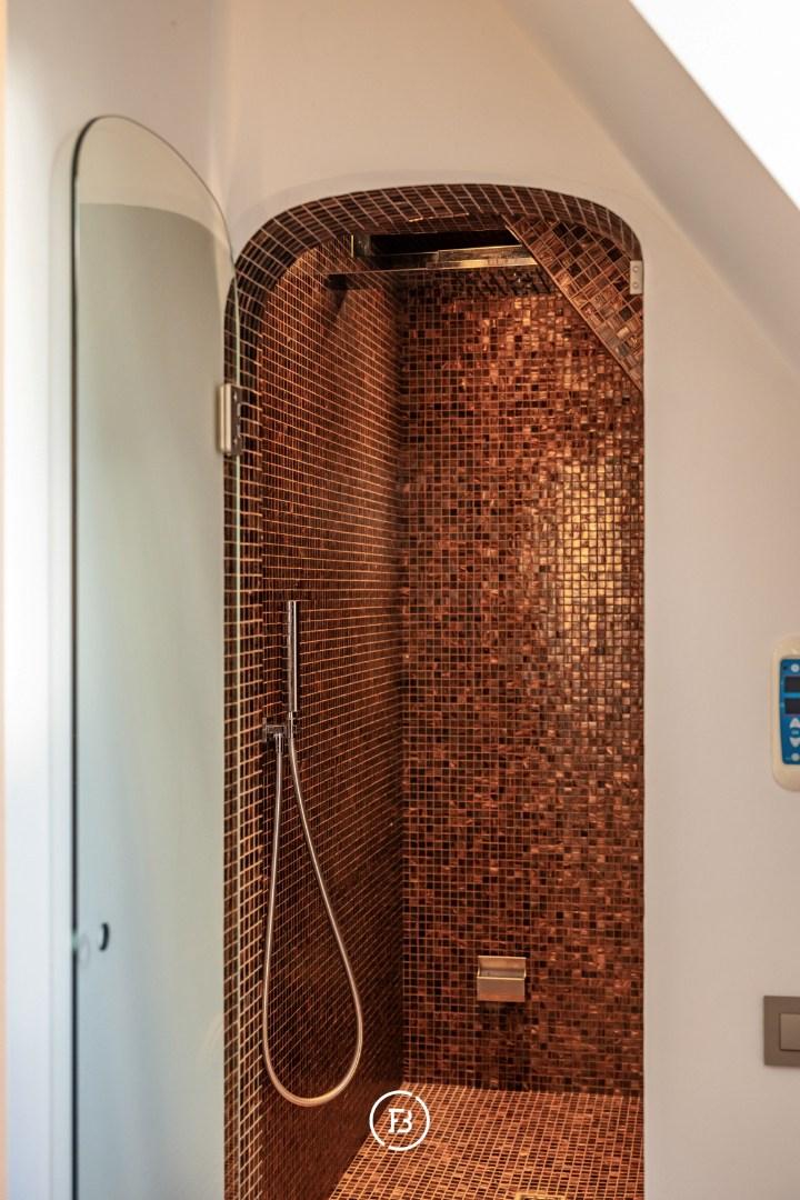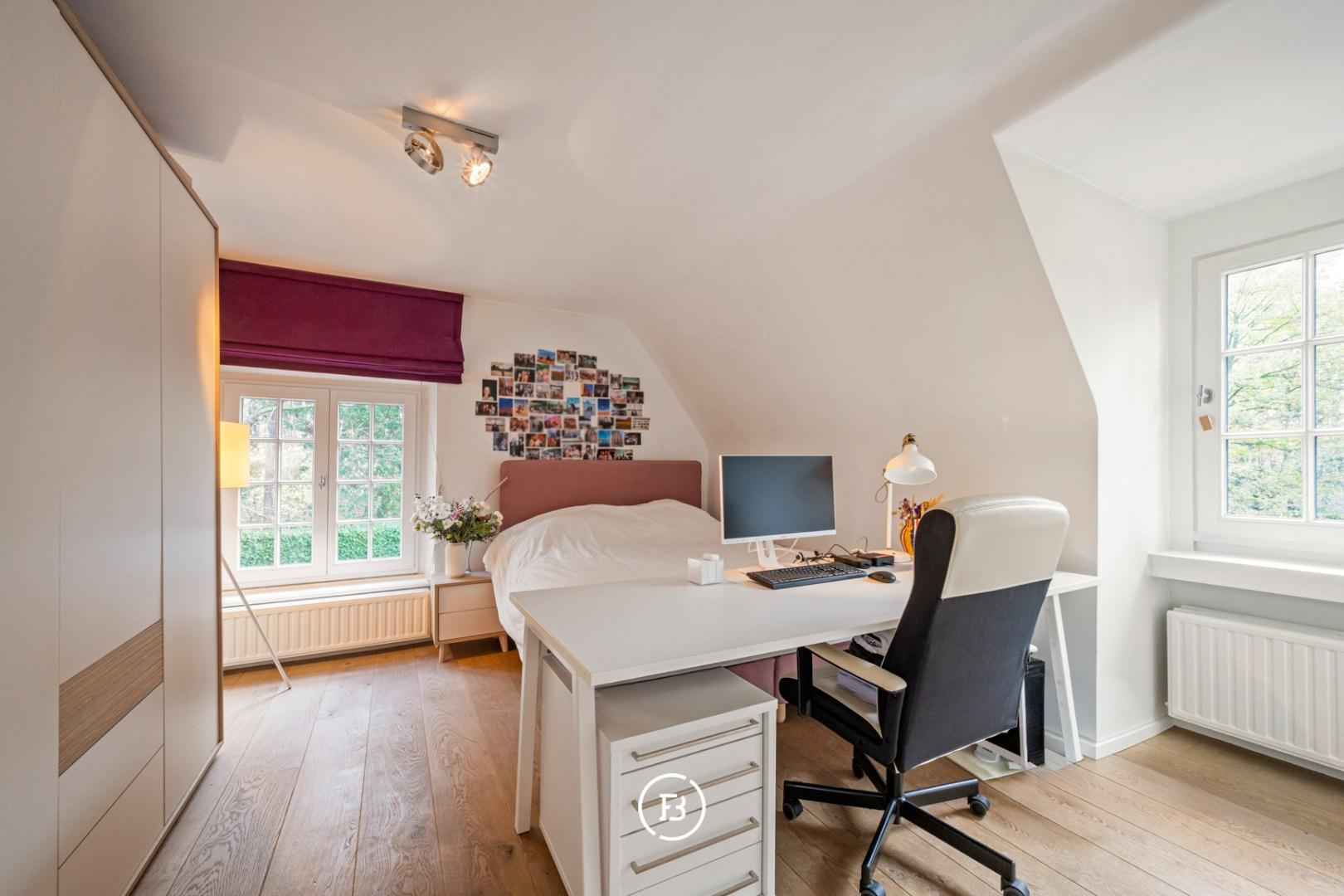 The entire top floor is designed as a luxurious master suite with a spacious dressing room and a high-quality bathroom with a bath, double sink, toilet, and a shower/hammam. An oasis of peace and comfort, in line with the exclusive appearance of the property.