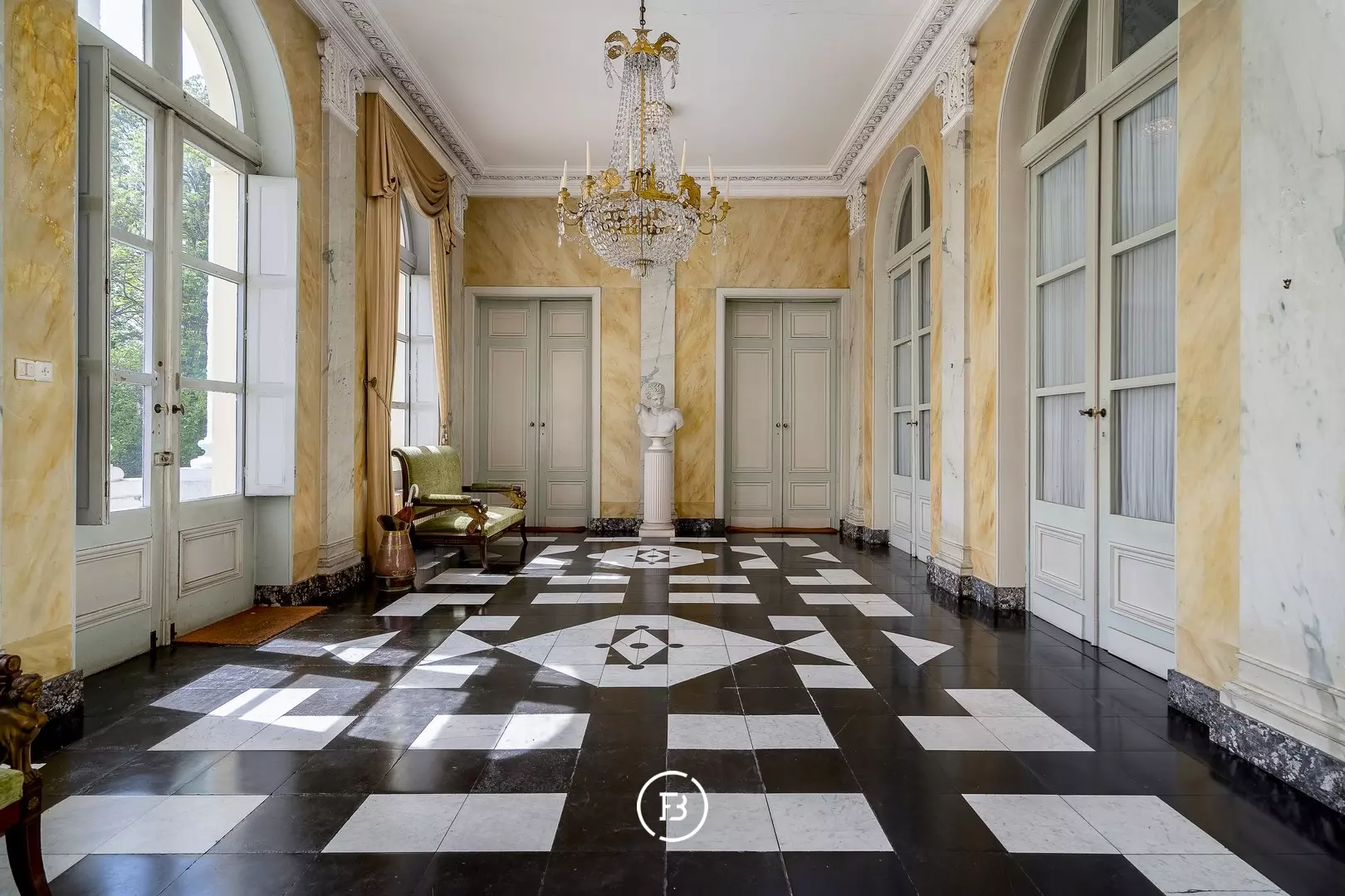 The rotunda with dome is just one of the many different authentic elements that give the castle its nostalgic charm. Original elements such as the marble fireplaces, characteristic parquet floors and wooden doors catapult you back in time two centuries. Besides the entrance and rotunda, the ground floor also includes the office, lounge, dining room and kitchen.