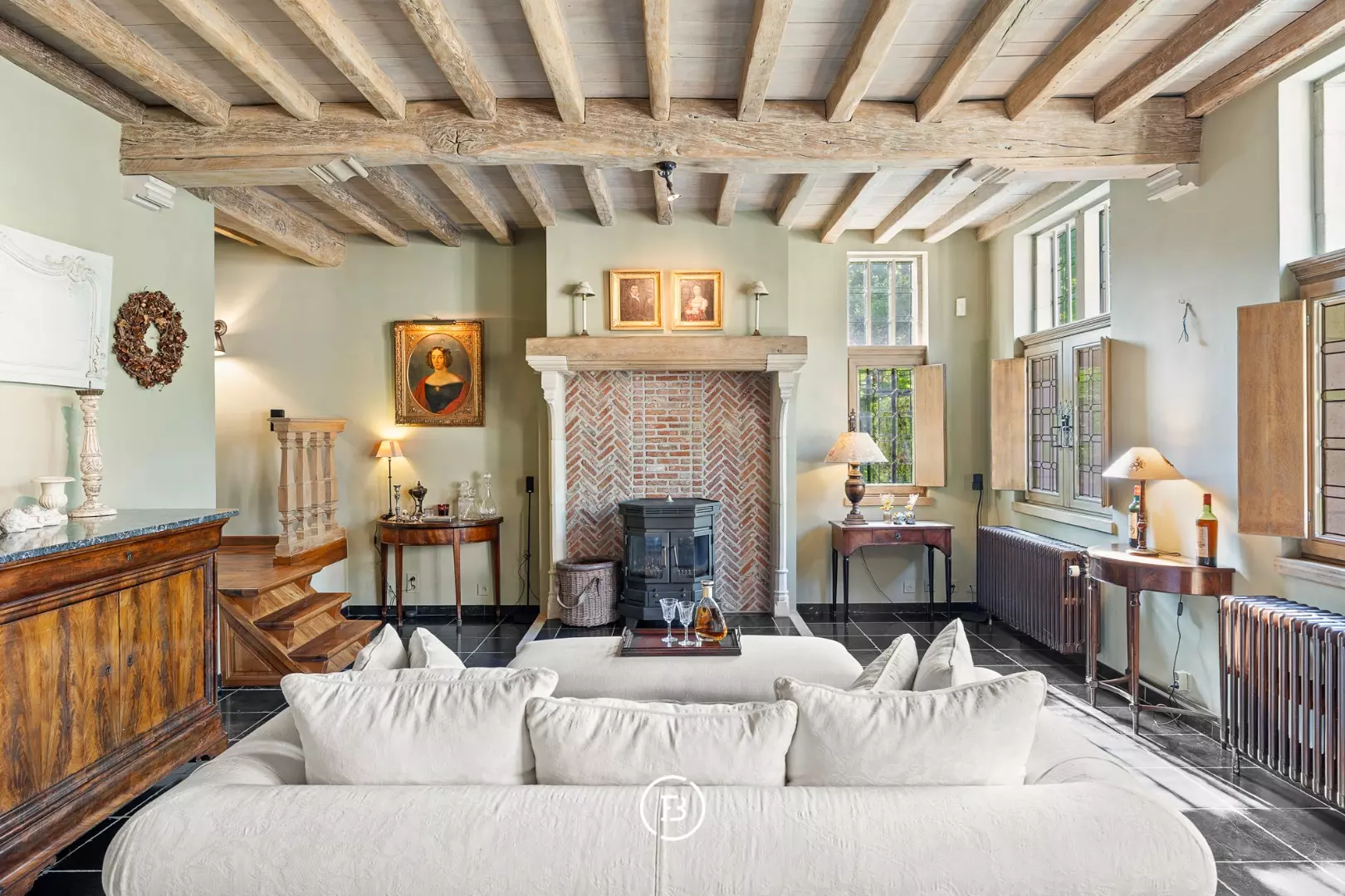 Inside, you are immersed in unparalleled charm. The high-quality reclaimed materials from historic buildings create a unique and warm atmosphere in the spacious living spaces.