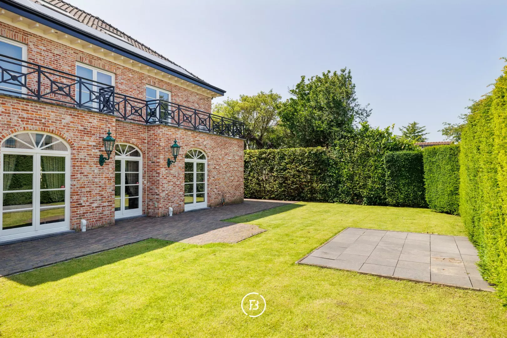 The first floor houses the master bedroom with its own fireplace and direct access to a spacious and sunny terrace overlooking the well-maintained garden. There is also a second bedroom, a spacious office, and a comfortable bathroom with both a bath and shower, as well as a toilet. The attic floor offers an extra guest room and a multifunctional space currently used as a second office but can also be converted into an additional bedroom or hobby room.