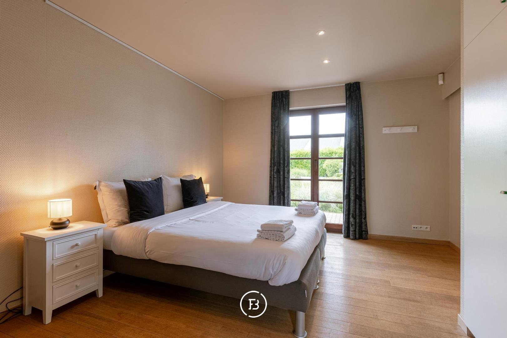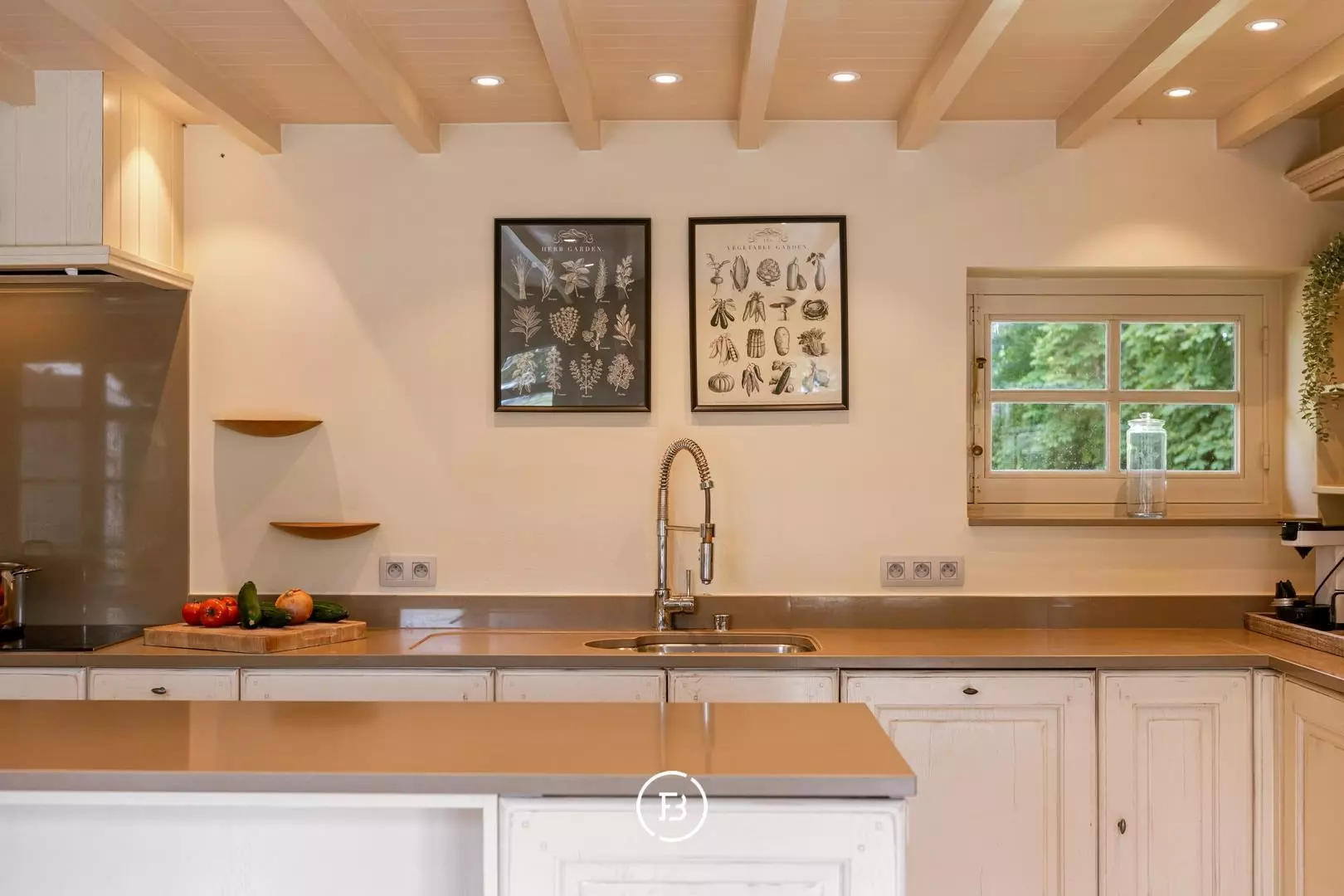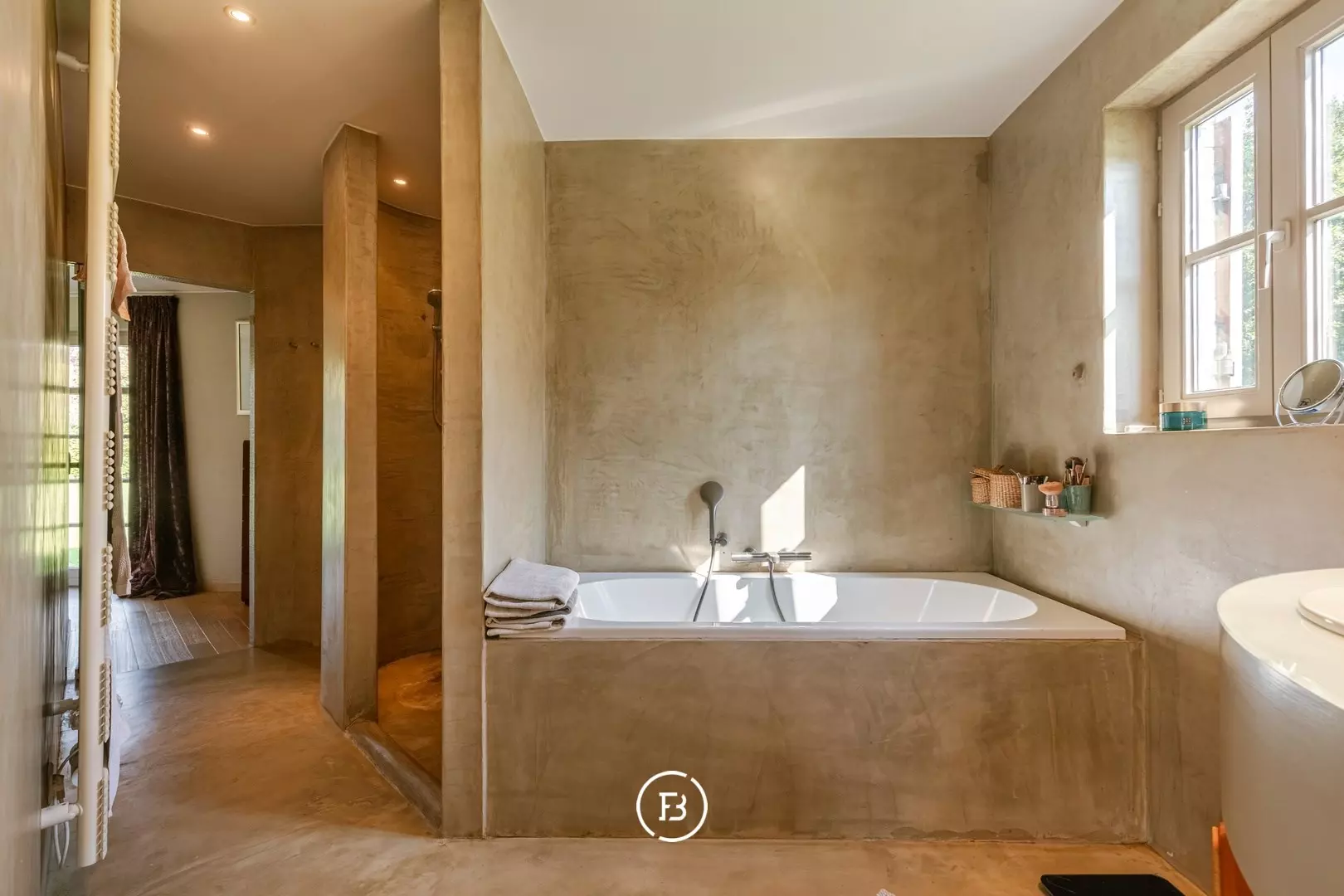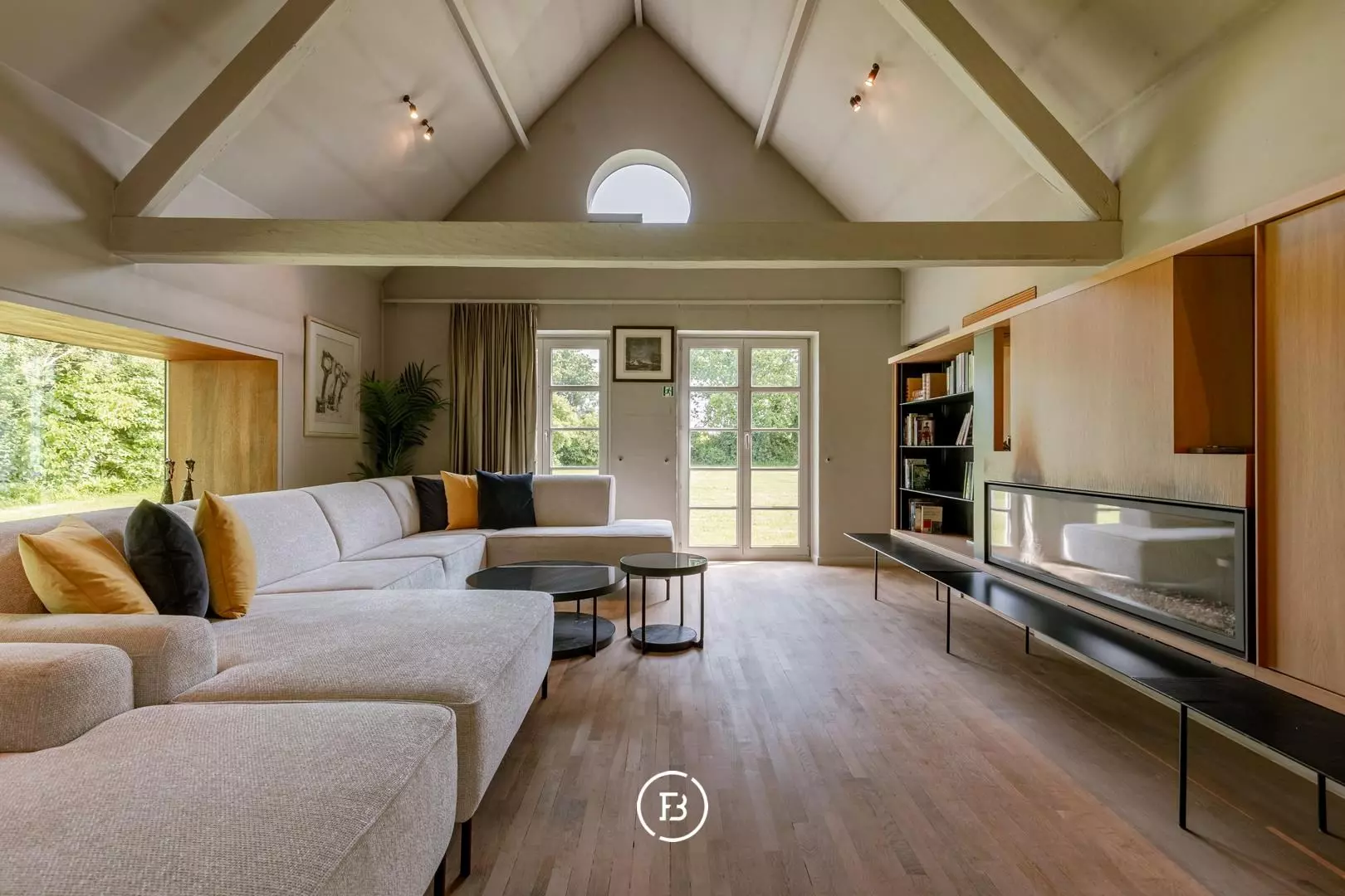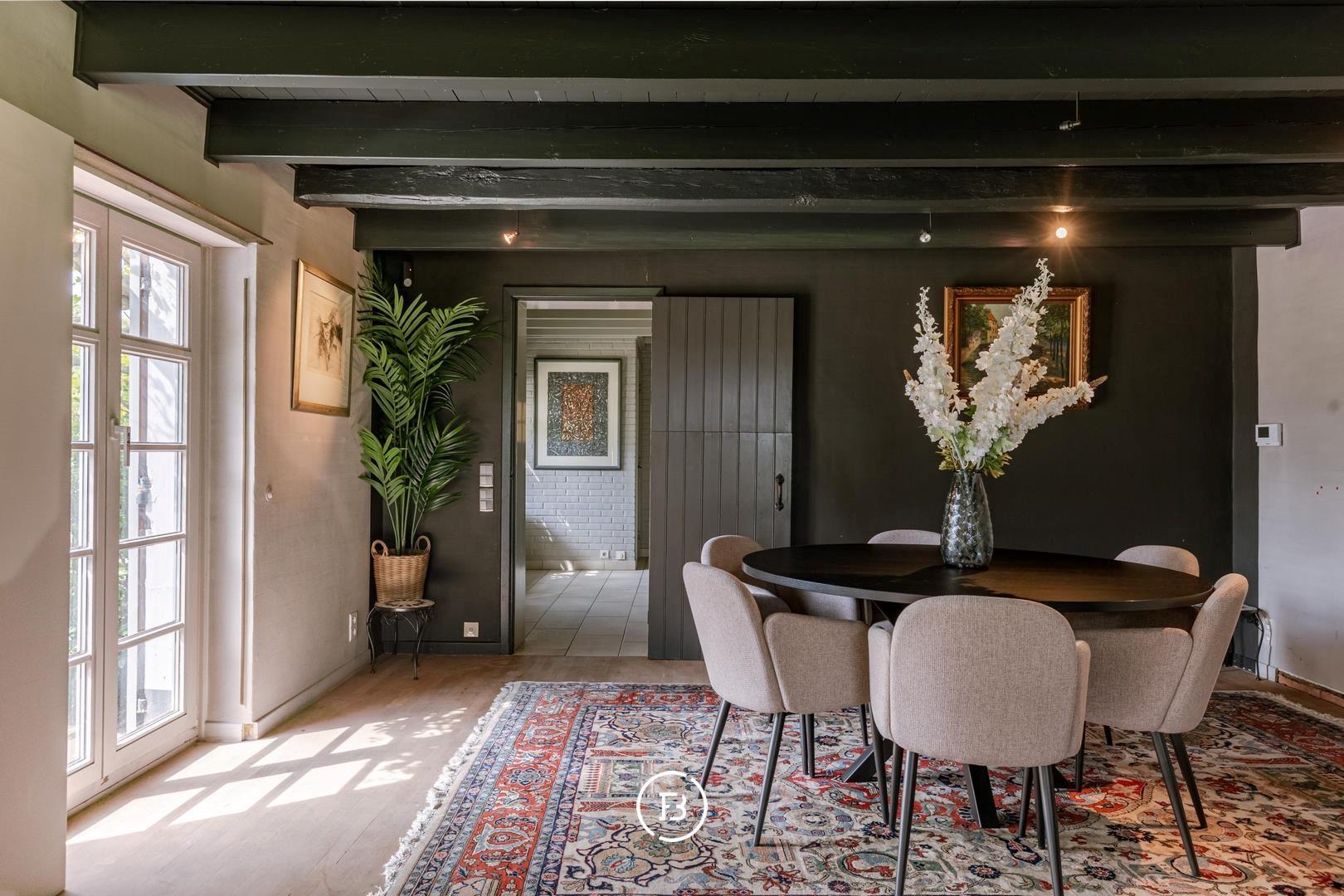 Inside, the house is designed to be both functional and practical. The entrance hall leads to a small basement, the kitchen, and the living room. The spacious, light-filled living room with its high ceiling creates an open and welcoming atmosphere. The fully equipped kitchen is perfect for cooking enthusiasts. The property also boasts six bedrooms and three bathrooms, all with views of the garden.