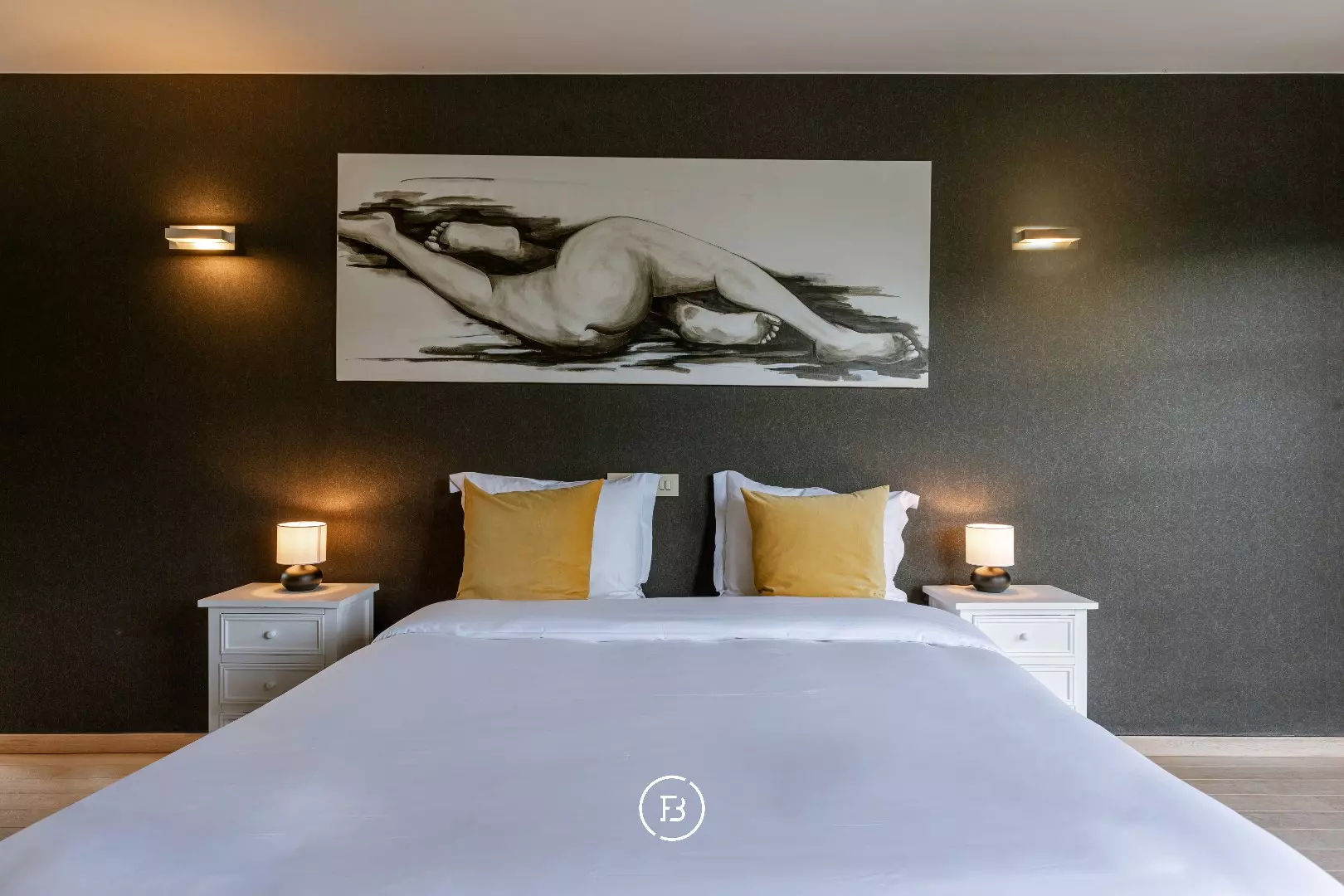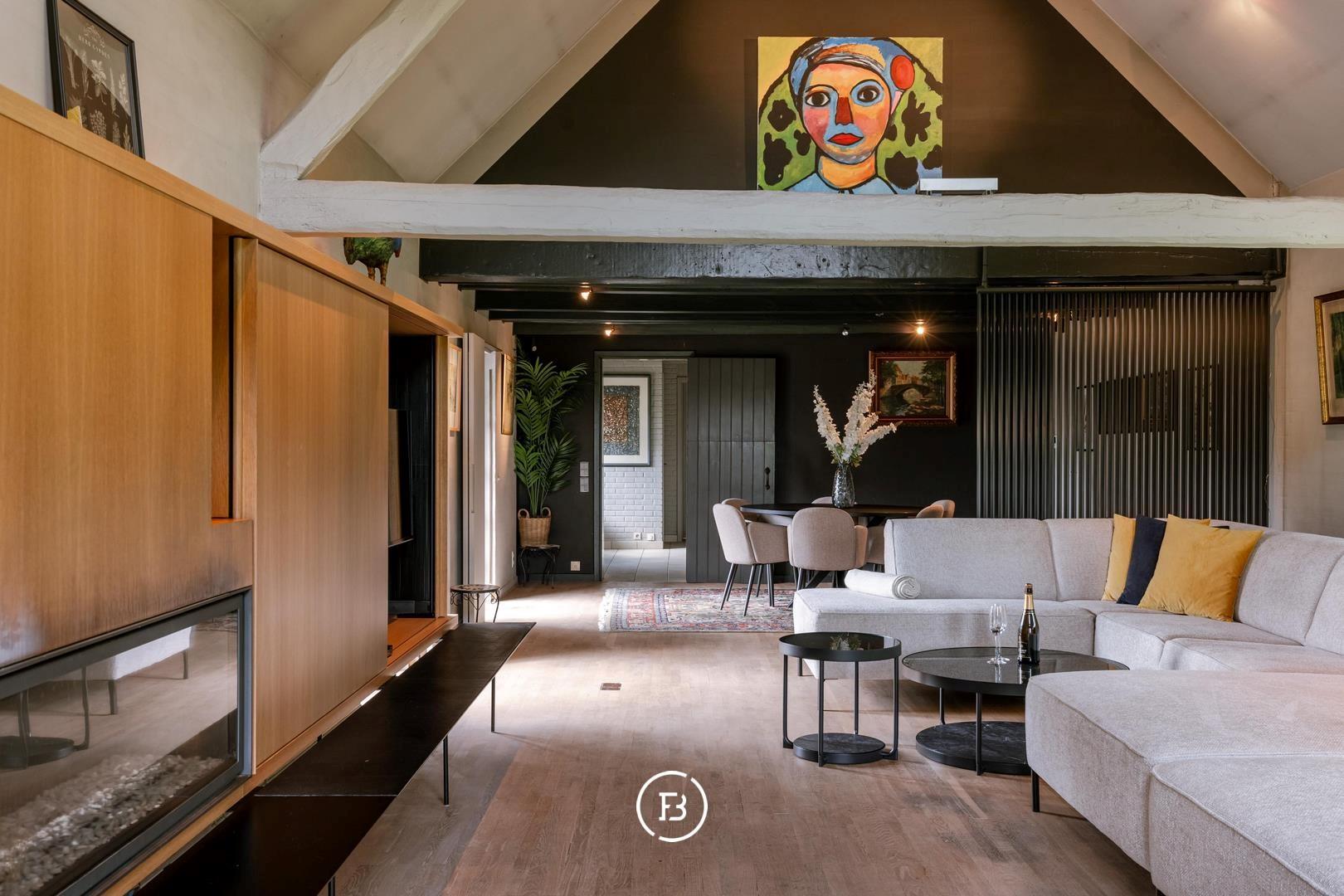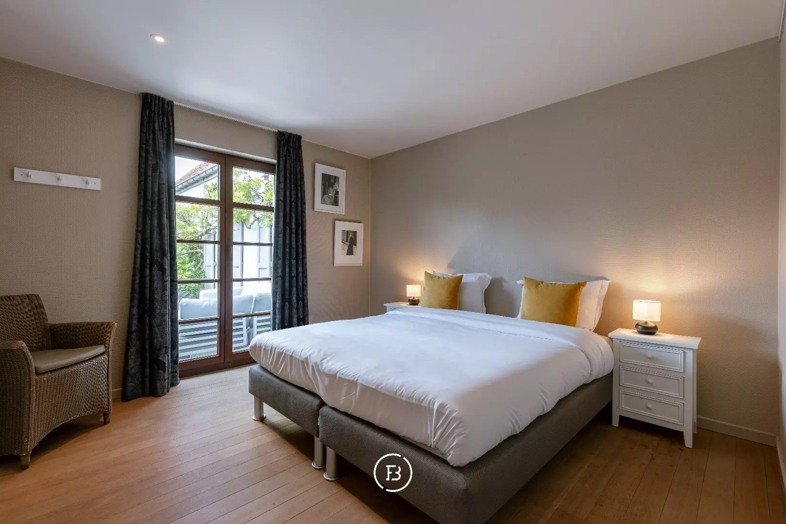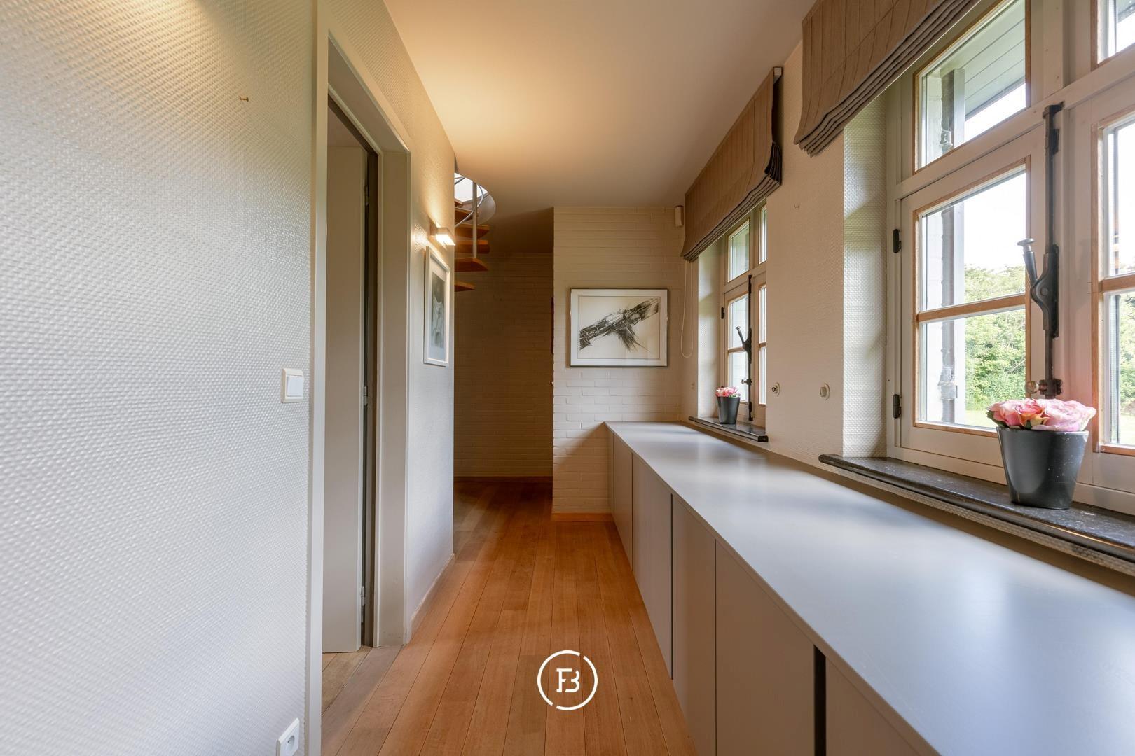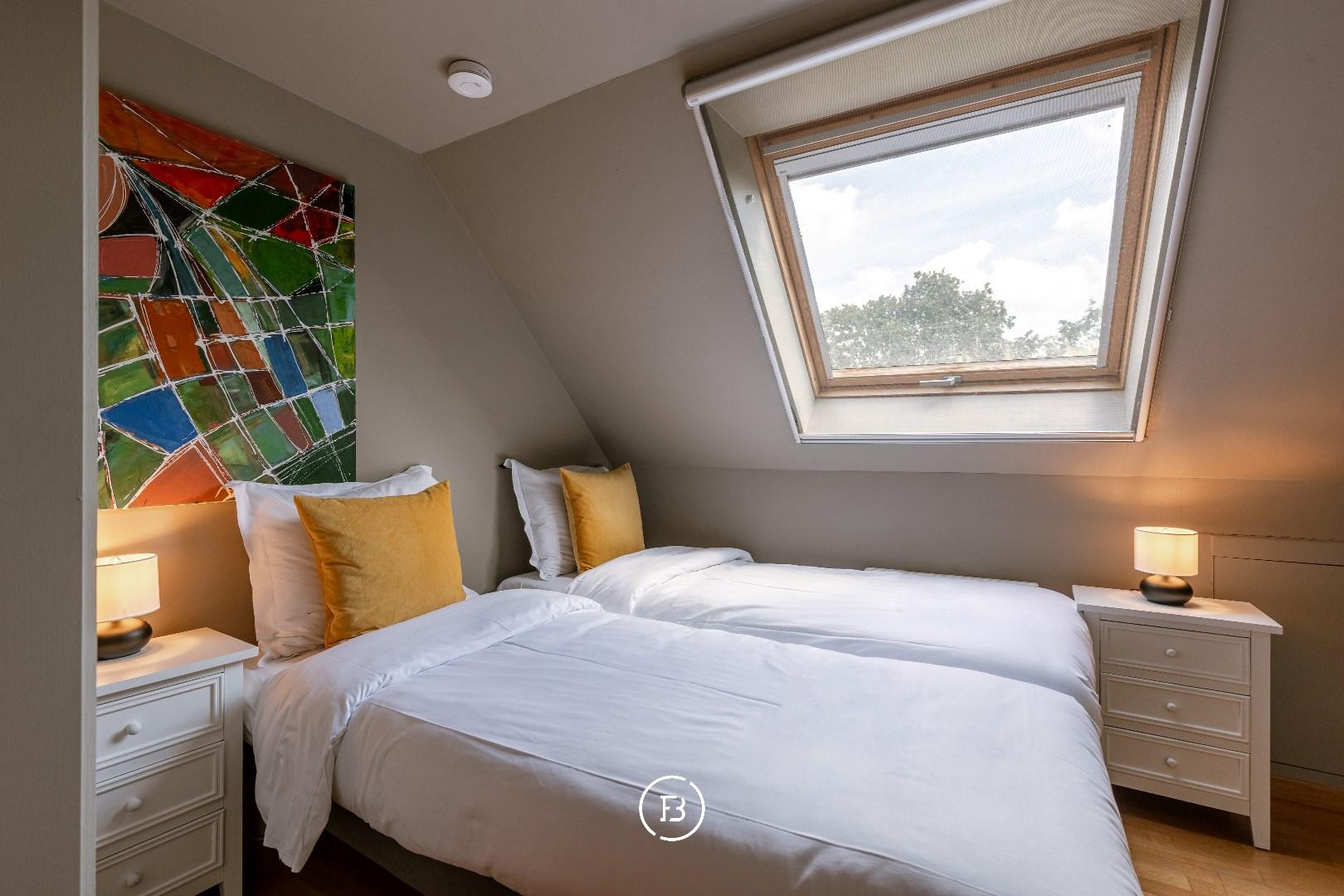 Inside, the house is designed to be both functional and practical. The entrance hall leads to a small basement, the kitchen, and the living room. The spacious, light-filled living room with its high ceiling creates an open and welcoming atmosphere. The fully equipped kitchen is perfect for cooking enthusiasts. The property also boasts six bedrooms and three bathrooms, all with views of the garden.