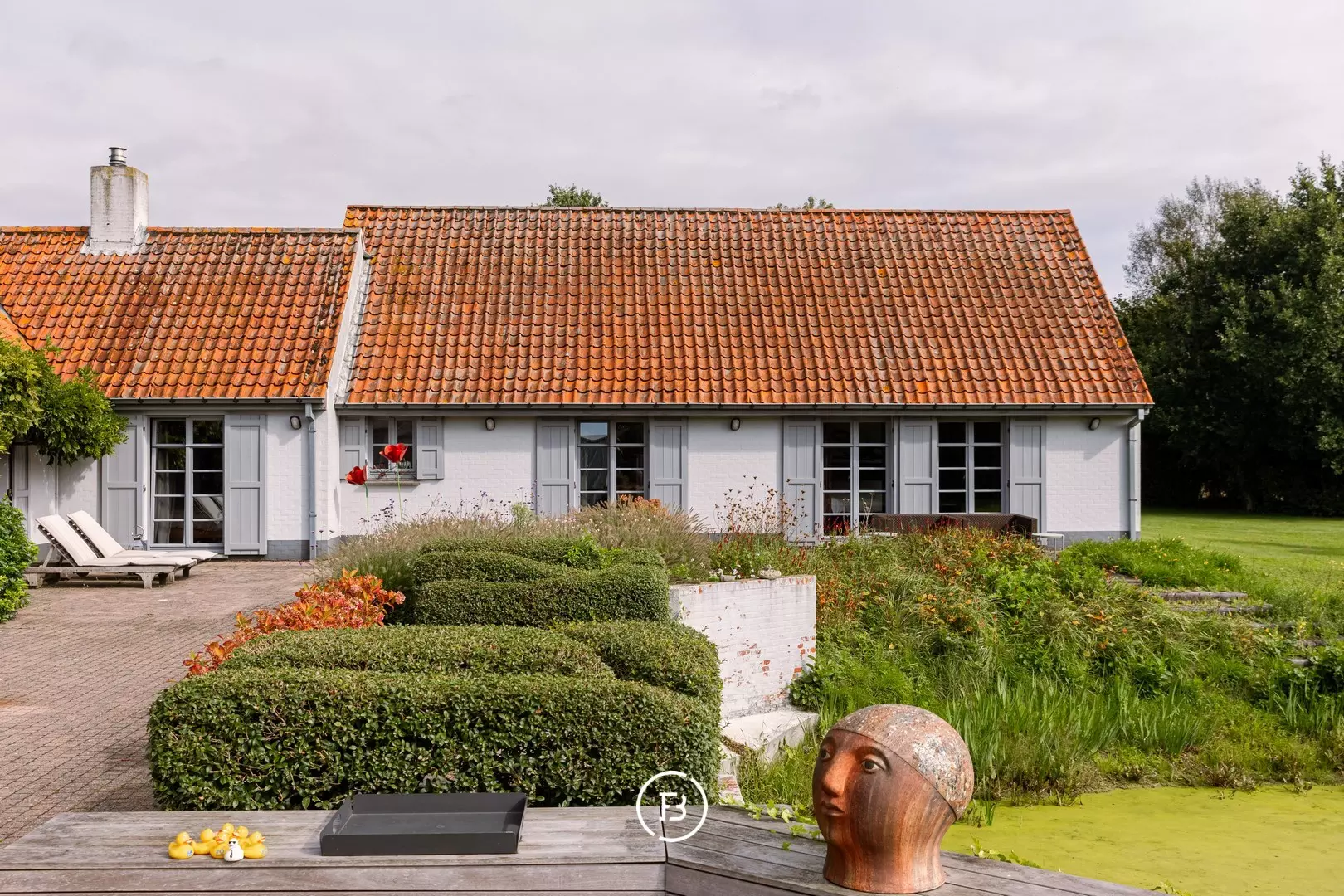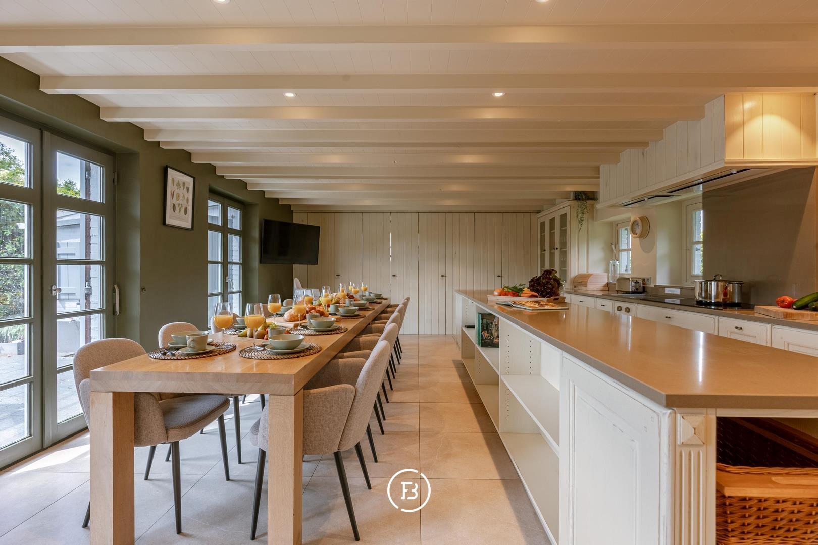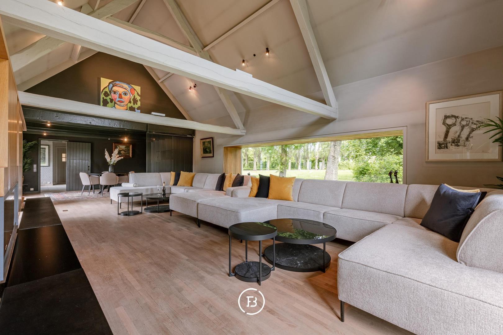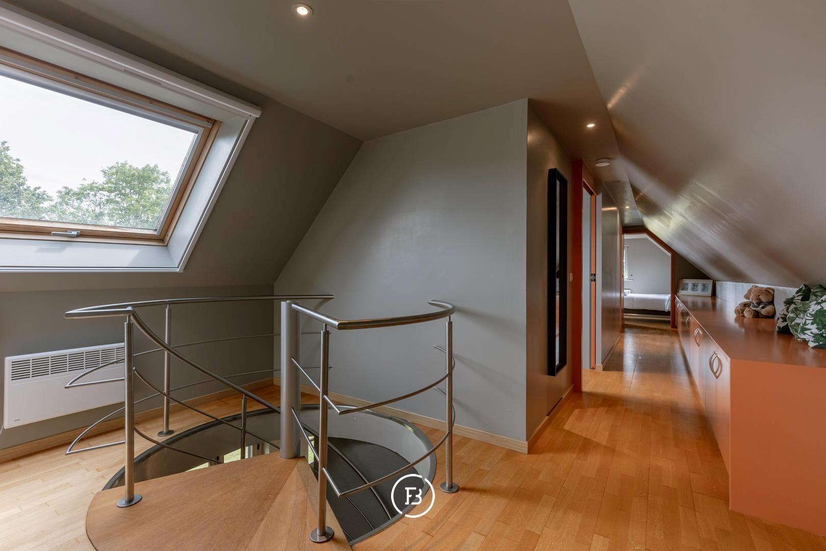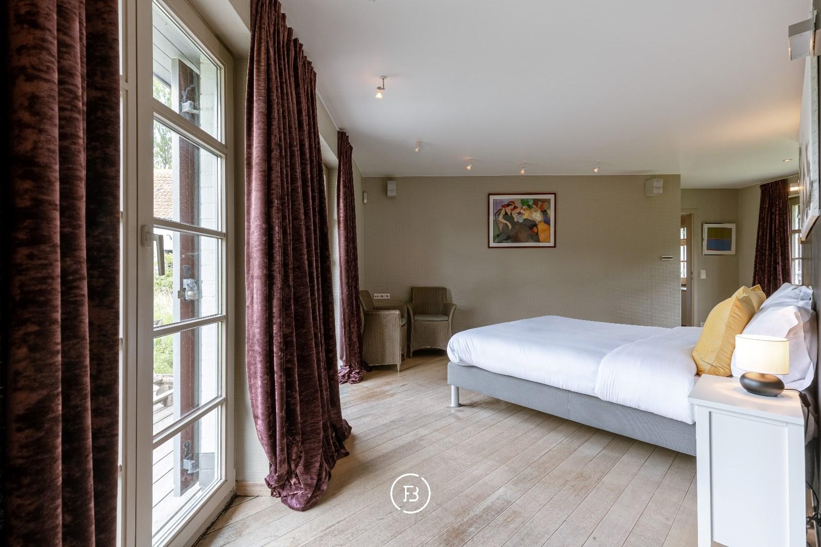 Inside, the house is designed to be both functional and practical. The entrance hall leads to a small basement, the kitchen, and the living room. The spacious, light-filled living room with its high ceiling creates an open and welcoming atmosphere. The fully equipped kitchen is perfect for cooking enthusiasts. The property also boasts six bedrooms and three bathrooms, all with views of the garden.