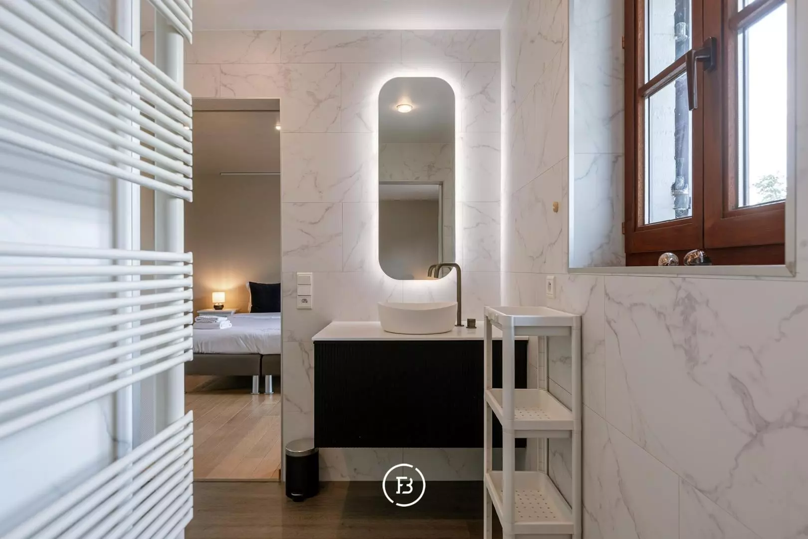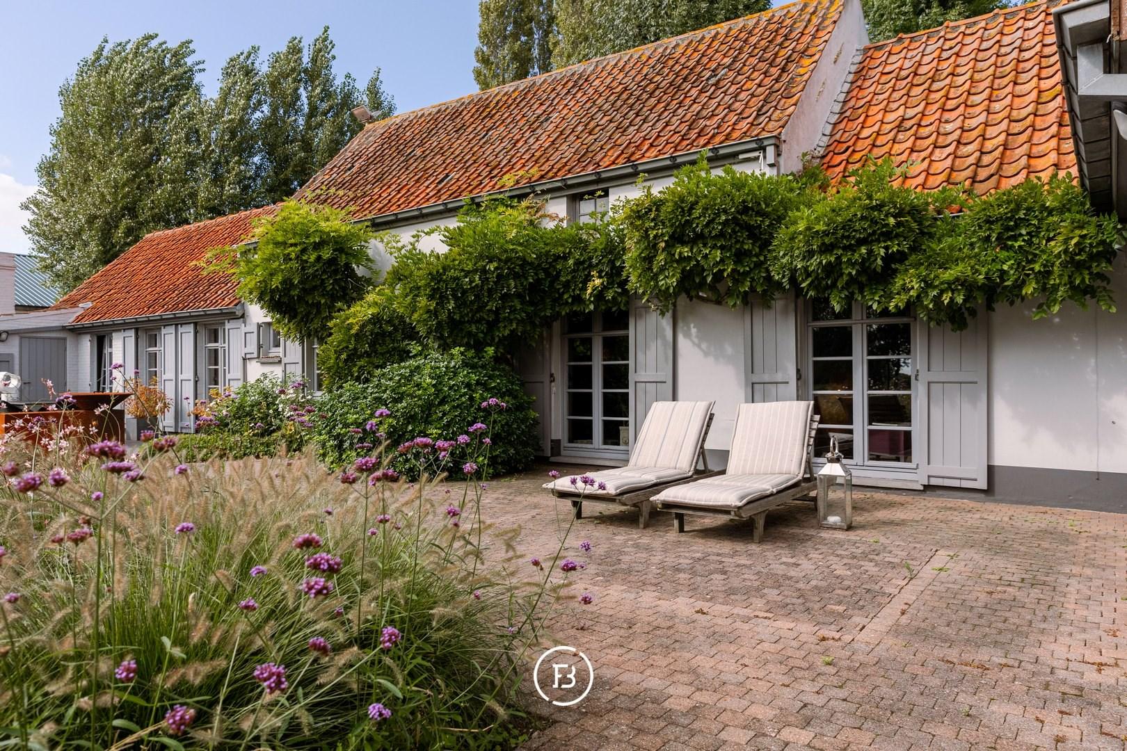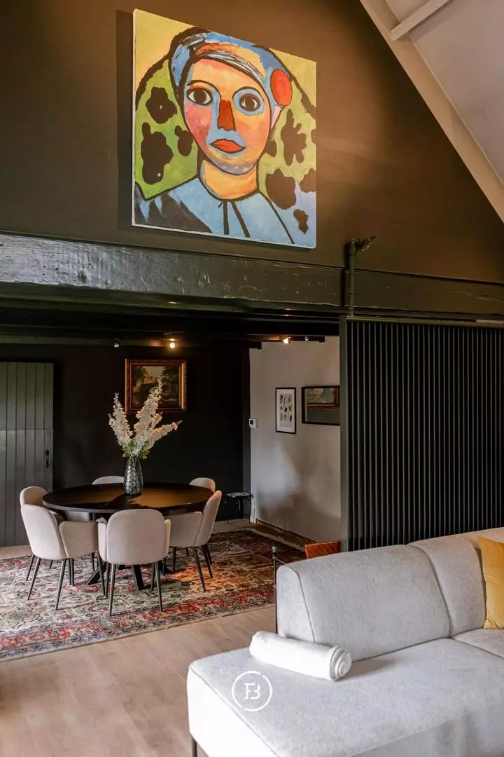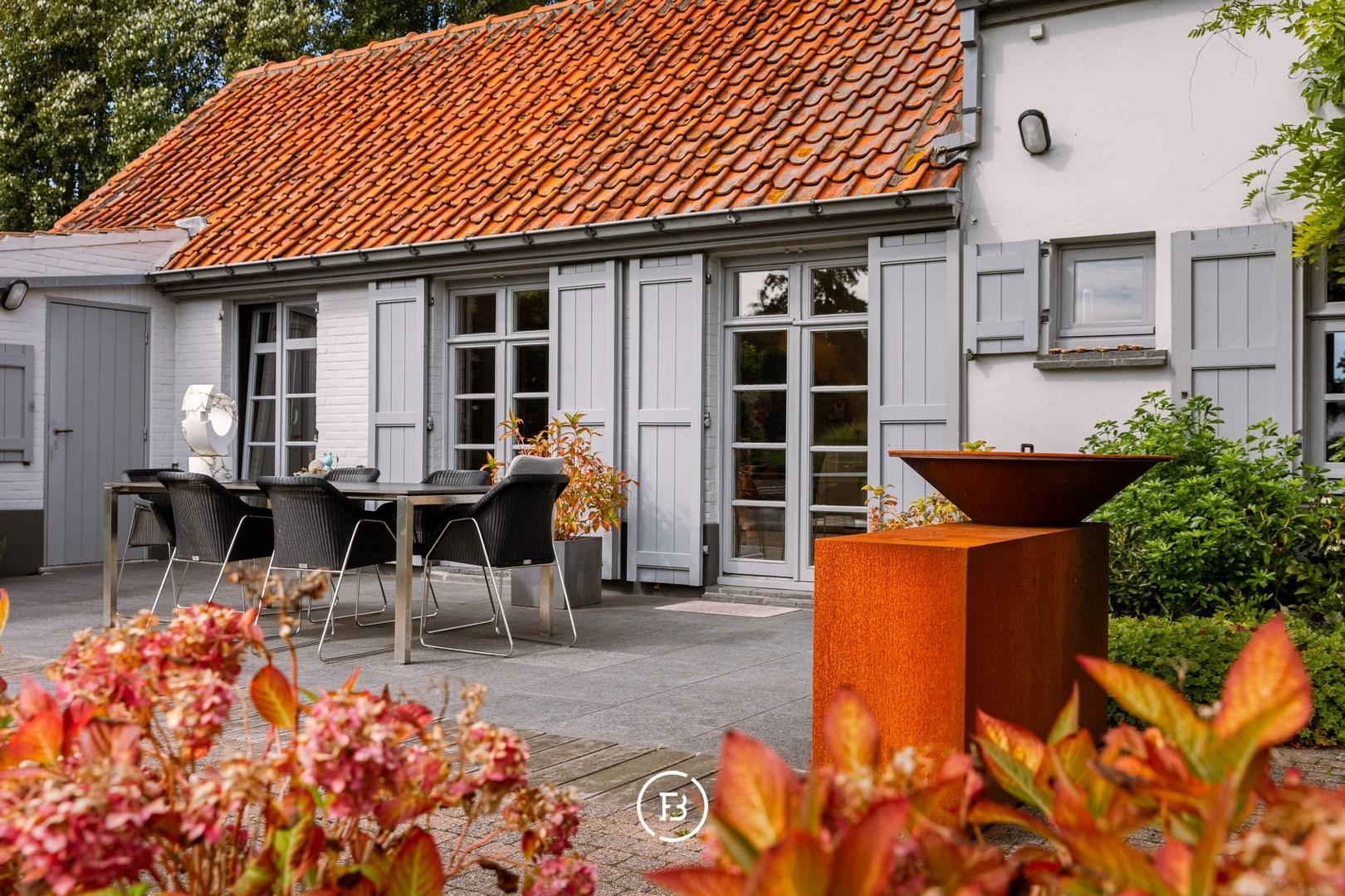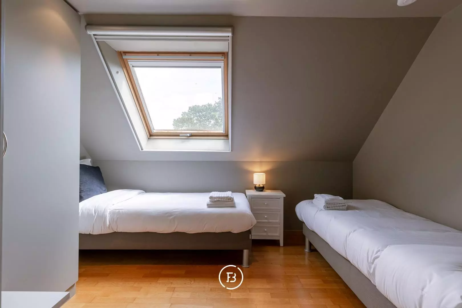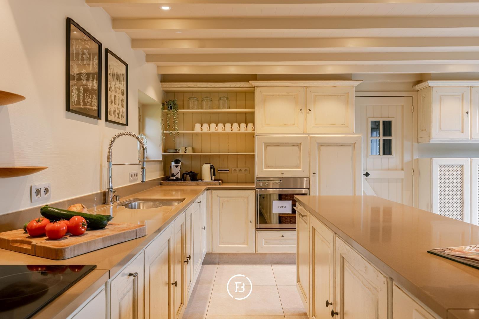 Inside, the house is designed to be both functional and practical. The entrance hall leads to a small basement, the kitchen, and the living room. The spacious, light-filled living room with its high ceiling creates an open and welcoming atmosphere. The fully equipped kitchen is perfect for cooking enthusiasts. The property also boasts six bedrooms and three bathrooms, all with views of the garden.