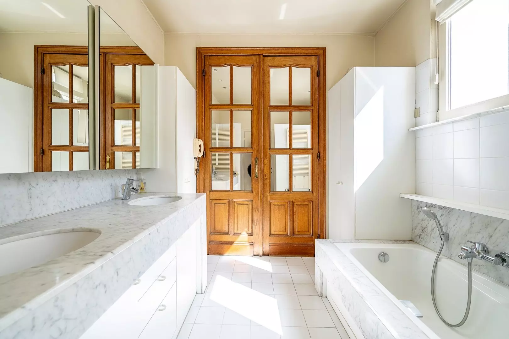 - Residential floors: The entrance hall provides access to a cozy living room with a fireplace, a dining area, and a fully equipped kitchen. On the mezzanine floor, there is a practical laundry room and the first bathroom.