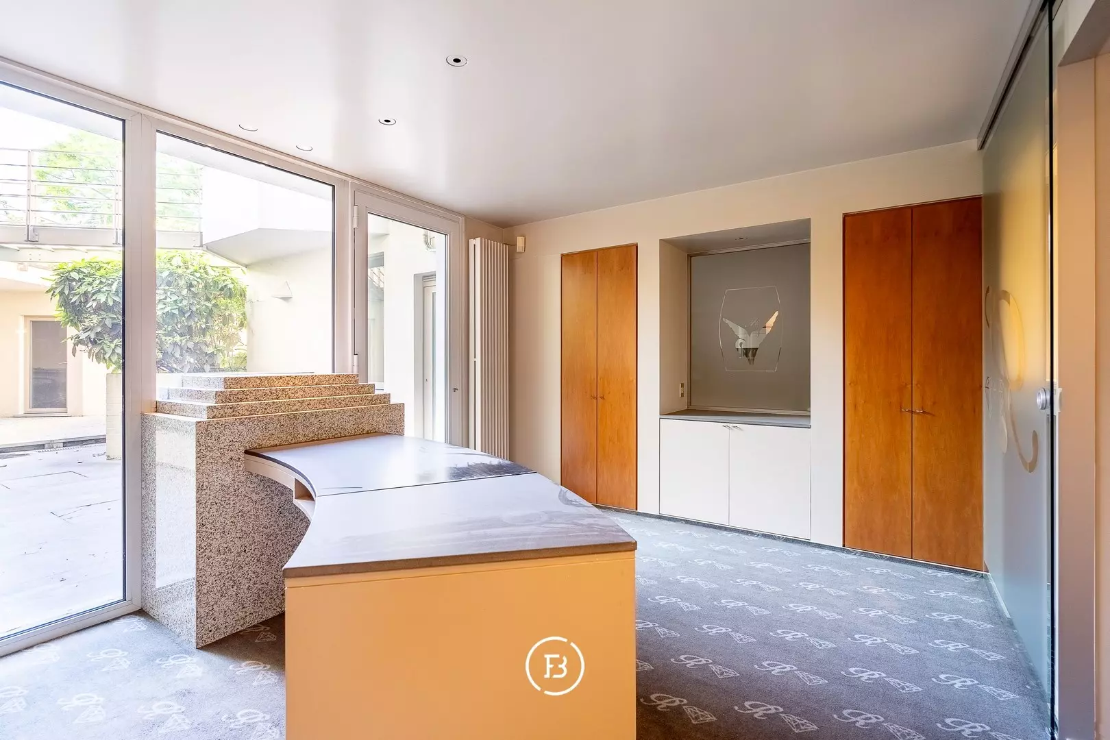 - Ground floor: The spacious entrance hall with marble flooring leads to a commercial space, equipped with a workshop, sales area, toilet, utility room, and technical room. A sunny garden, courtyard, rooftop terrace, spacious garage, and carport enhance the functionality of this townhouse.