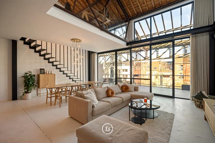 With its 320 m² of usable floor space, this apartment offers a living experience that is virtually impossible to find in the centre of Antwerp. The enormous living space is bathed in natural light and features high ceilings, authentic elements and a layout that perfectly combines grandeur and comfort.