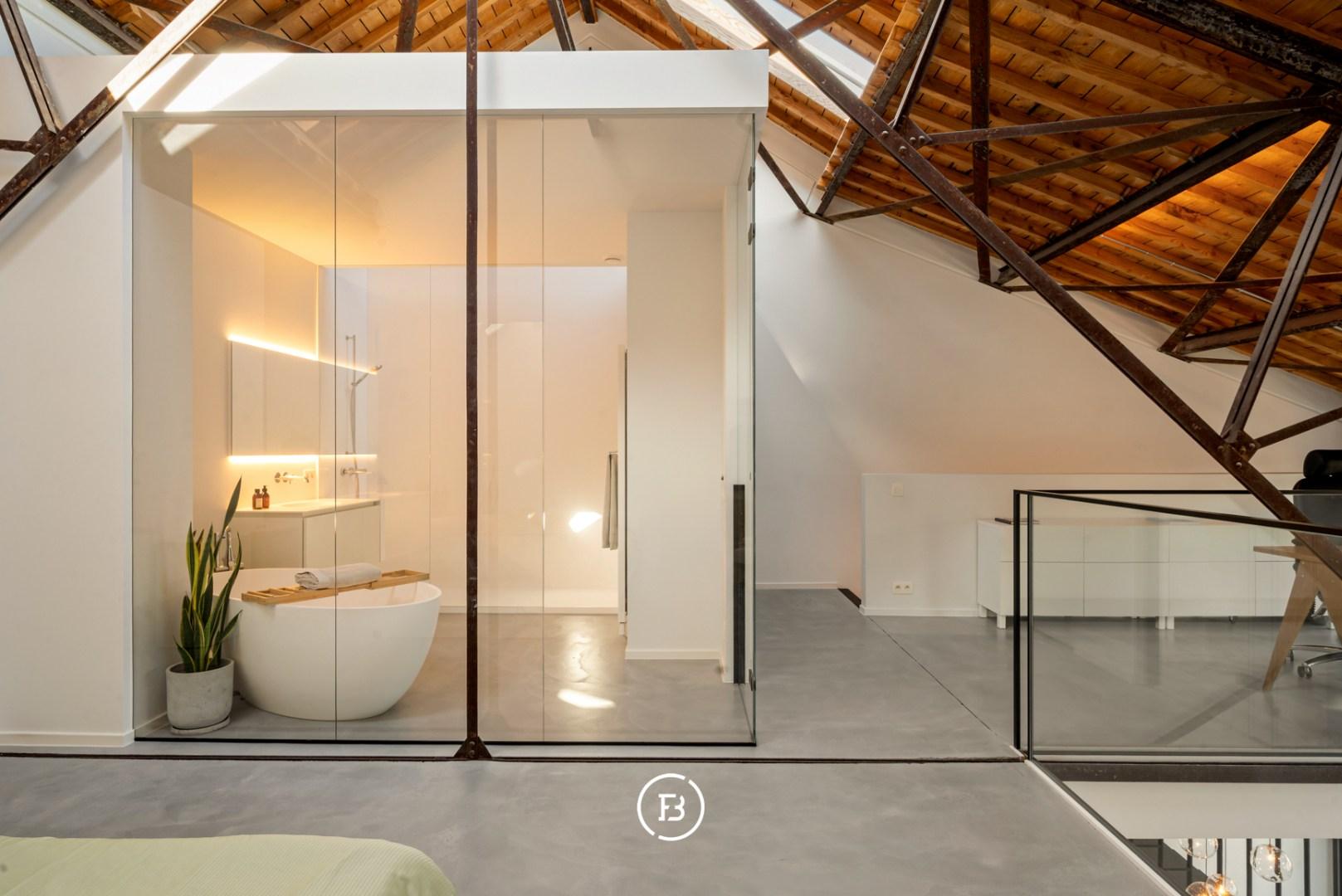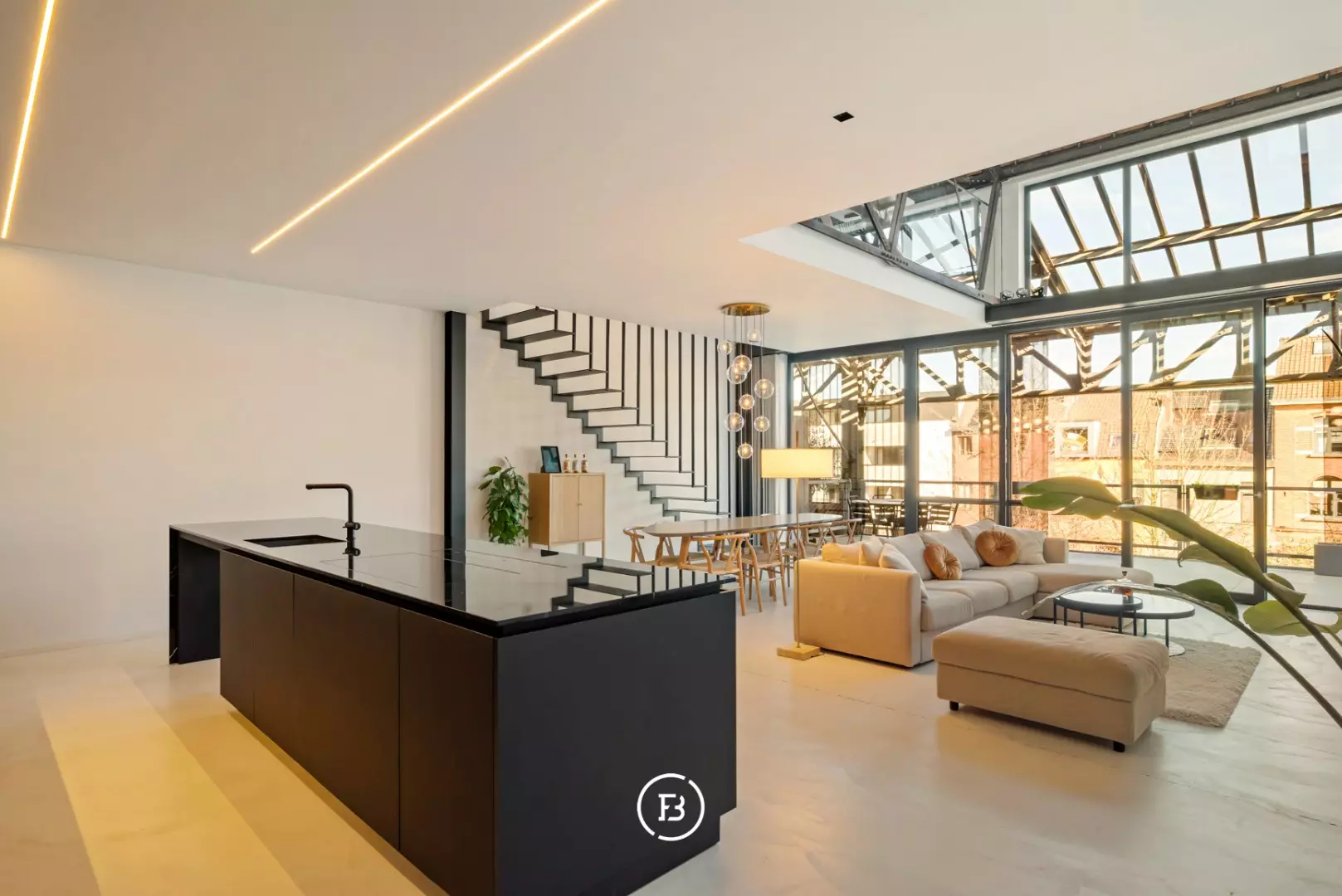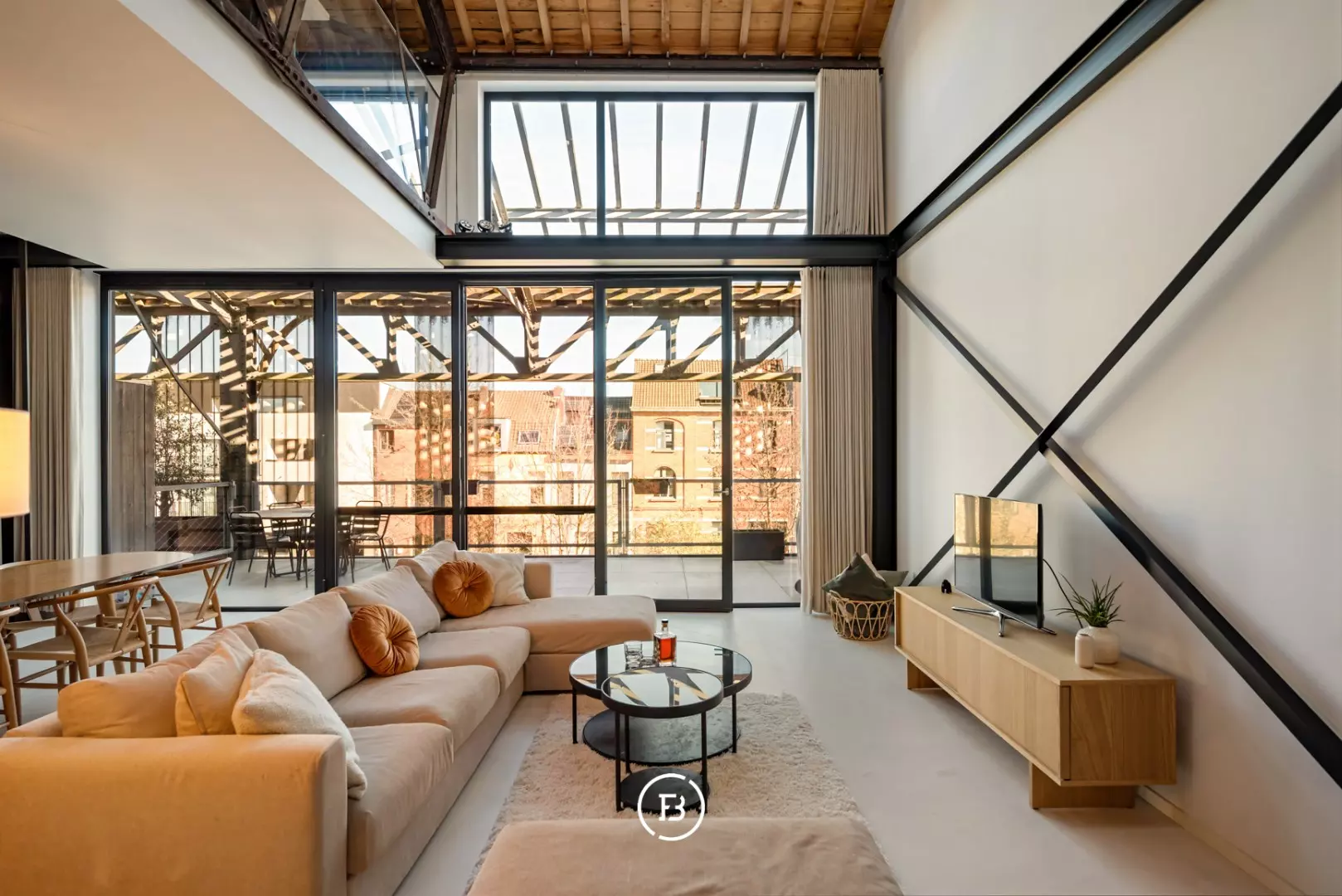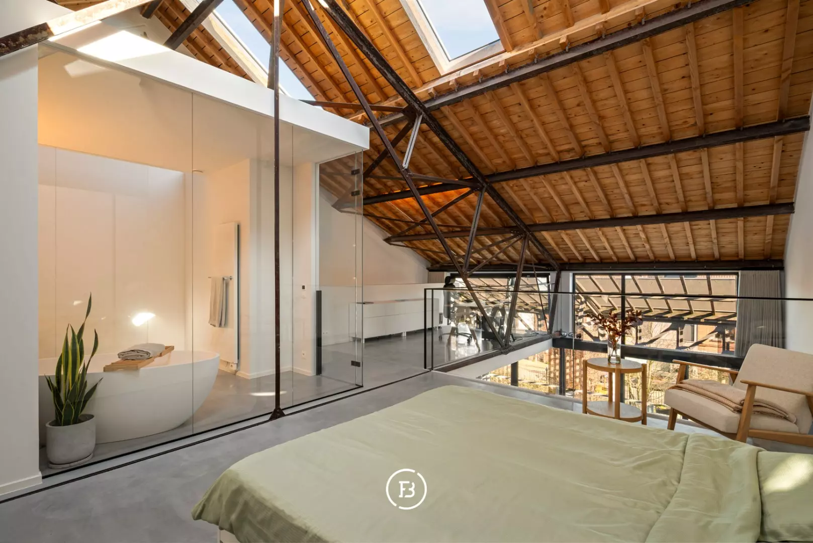 The loft is finished with high-quality and durable materials and is equipped with modern techniques including solar panels, air conditioning, mechanical ventilation, etc. The large windows enhance the open loft character and create a contemporary, stylish look.