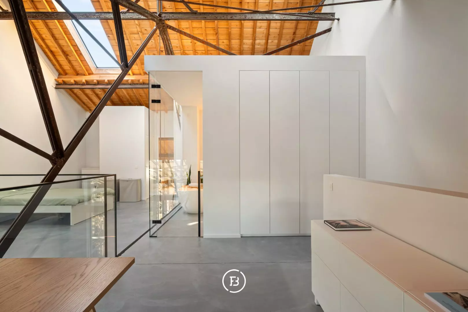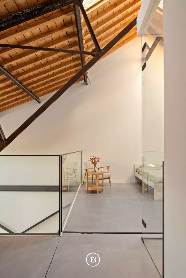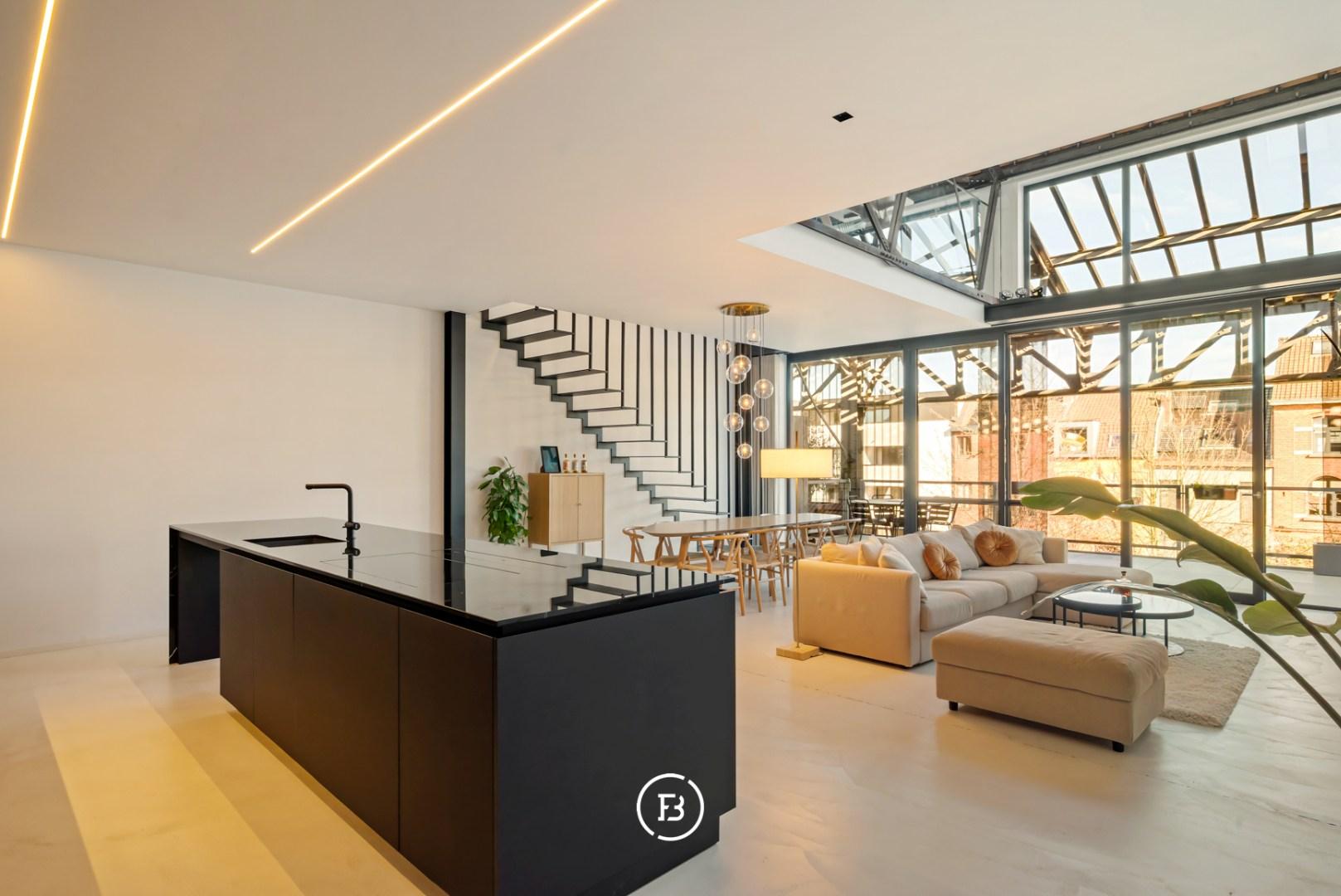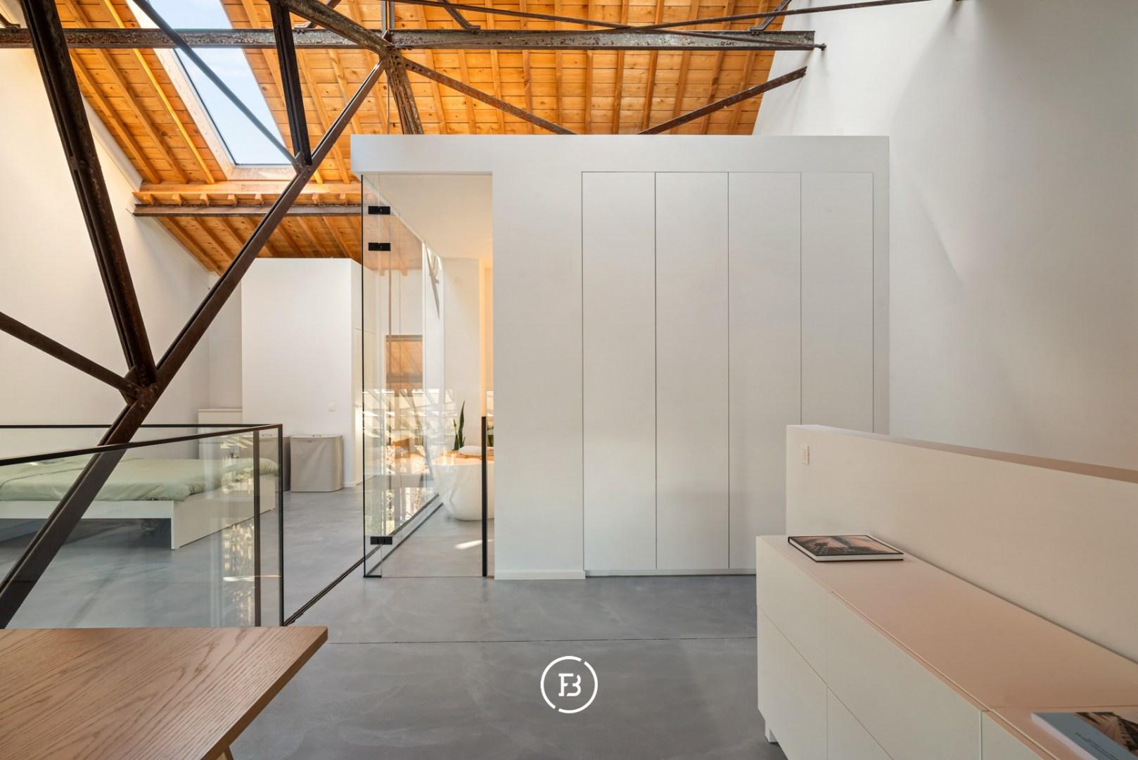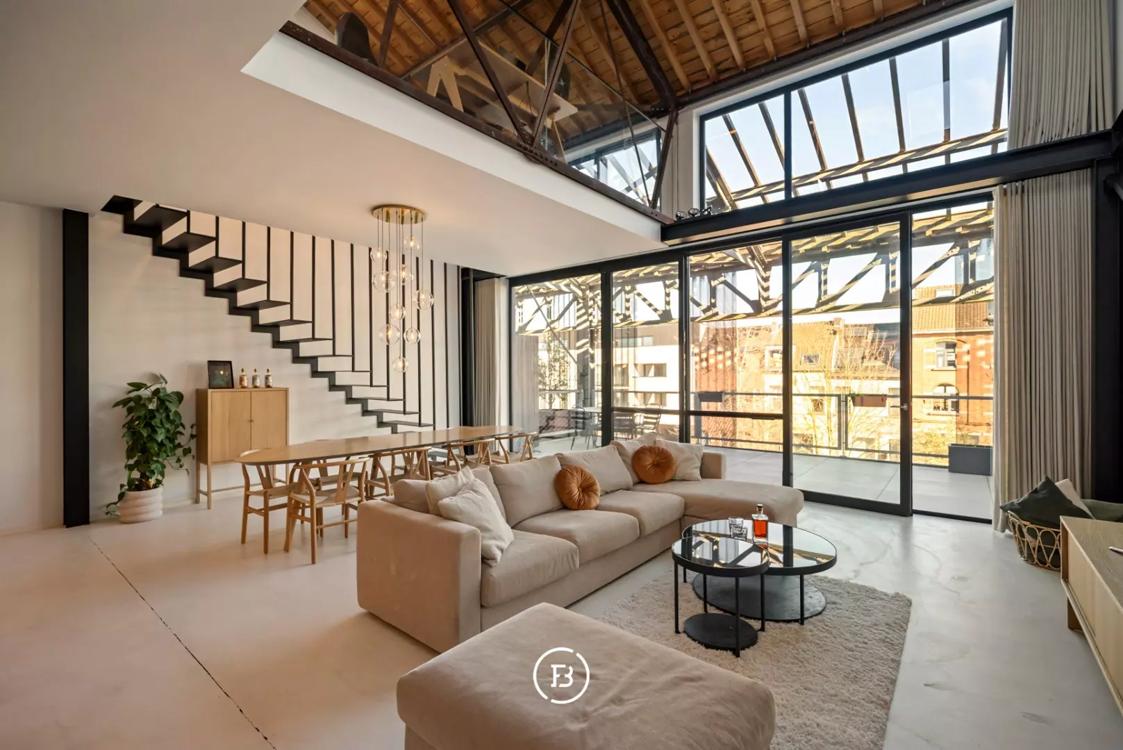 The loft is finished with high-quality and durable materials and is equipped with modern techniques including solar panels, air conditioning, mechanical ventilation, etc. The large windows enhance the open loft character and create a contemporary, stylish look.