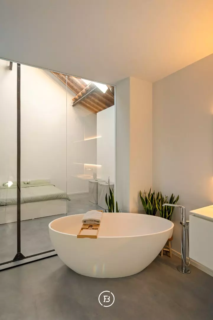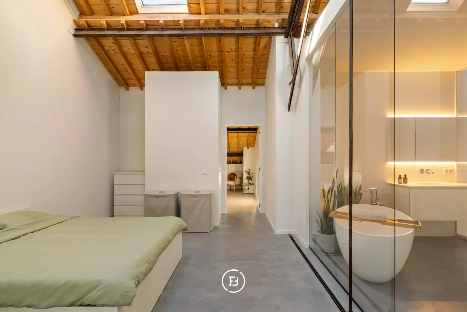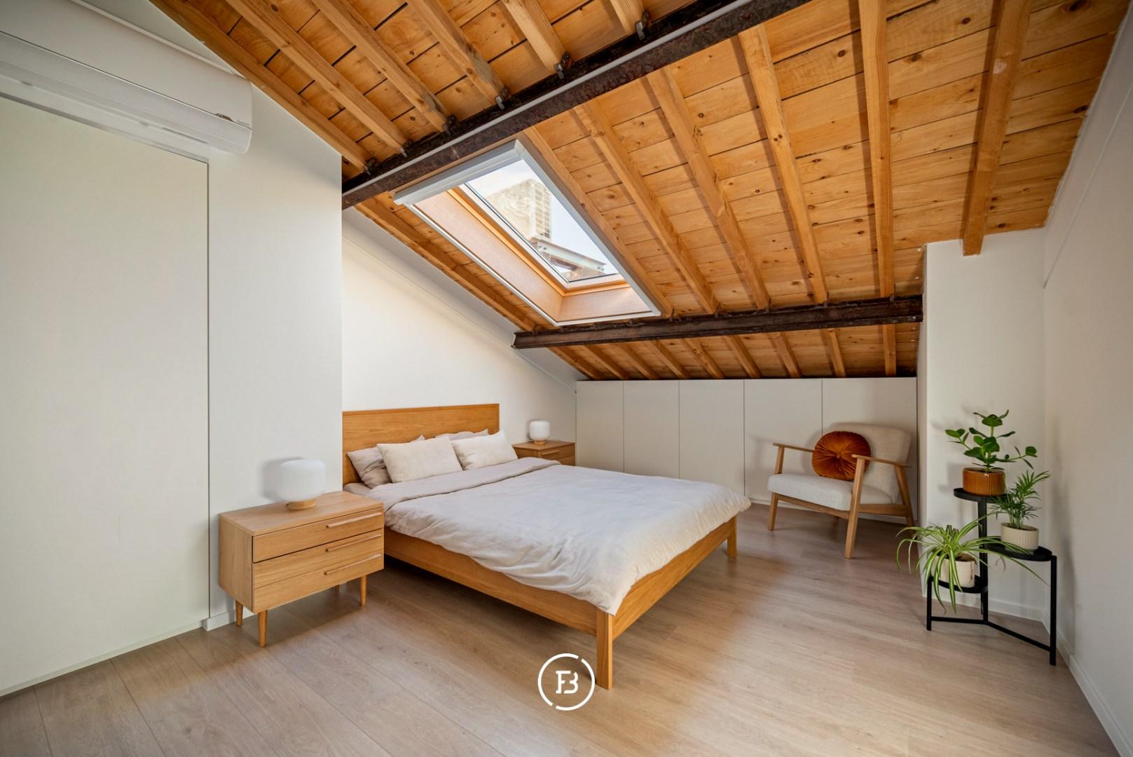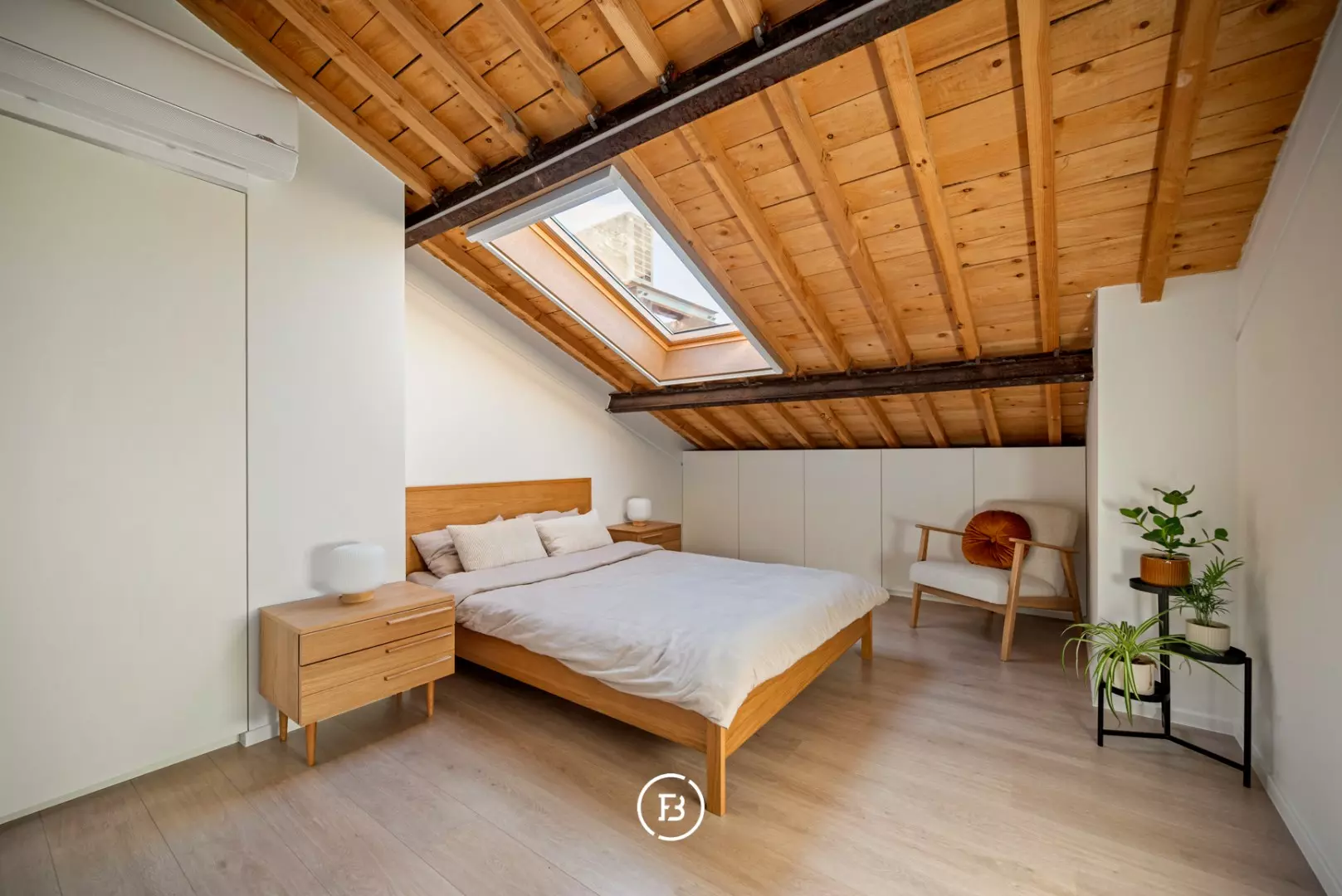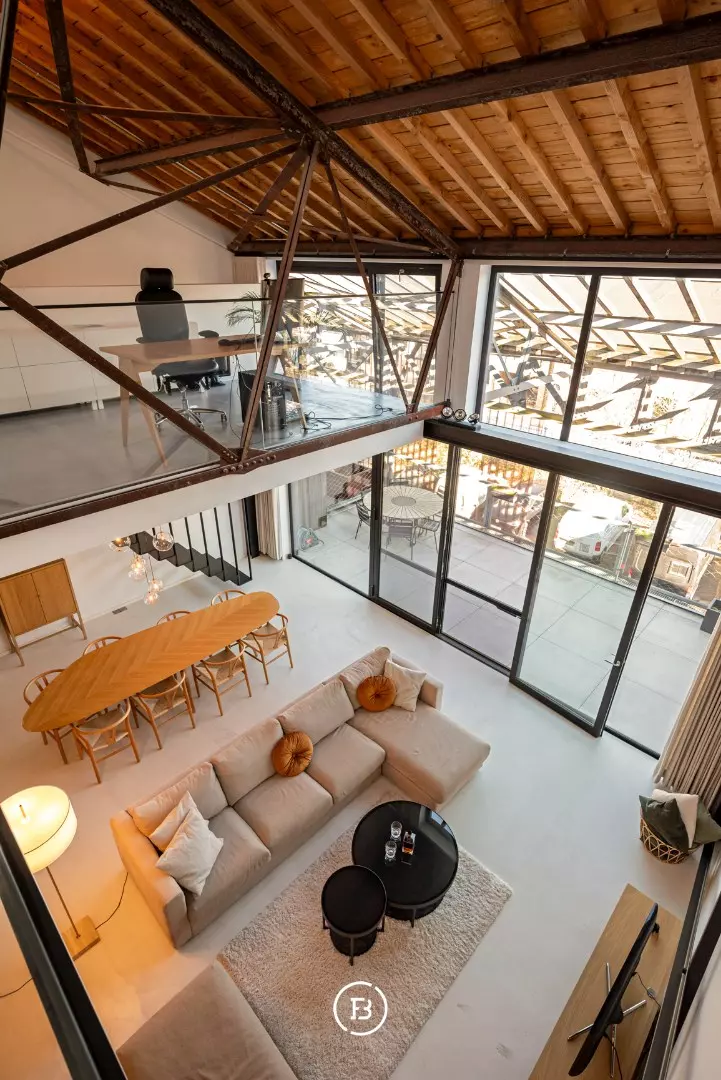 The loft is finished with high-quality and durable materials and is equipped with modern techniques including solar panels, air conditioning, mechanical ventilation, etc. The large windows enhance the open loft character and create a contemporary, stylish look.