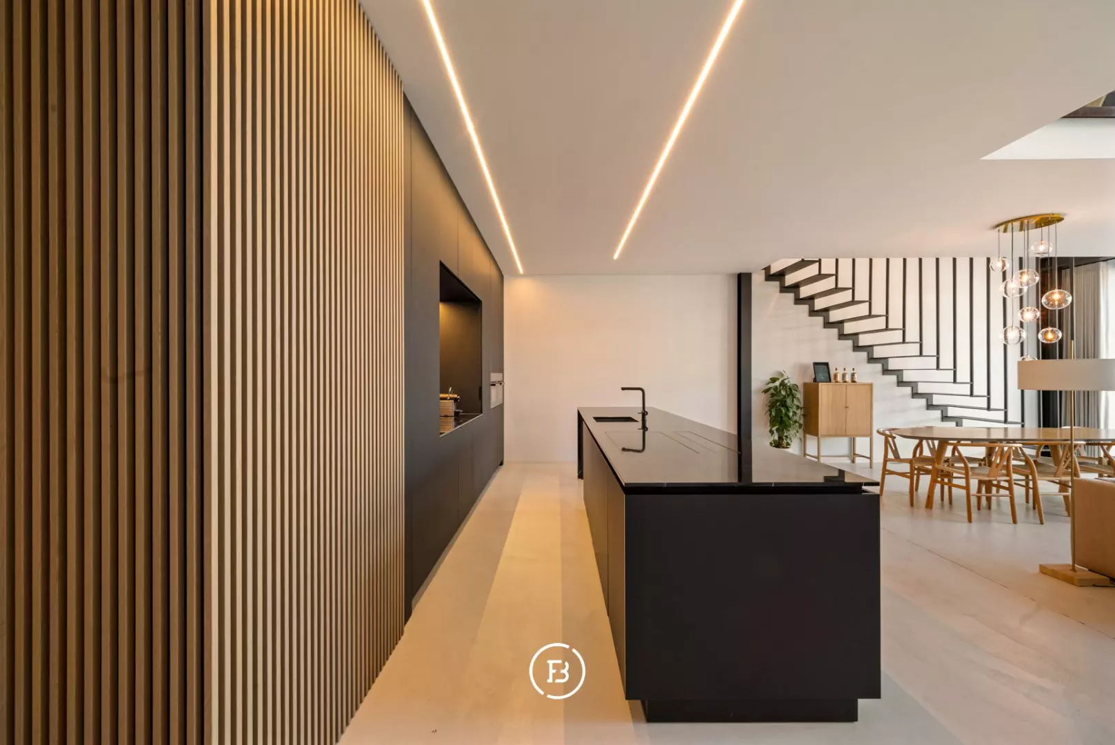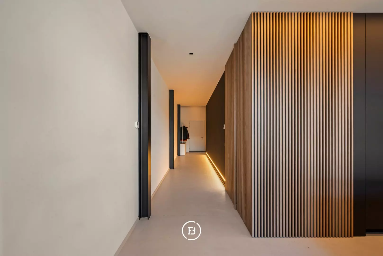 Through the entrance hall with cloakroom and guest toilet, you enter a home that immediately impresses with its pronounced sense of light, space, and openness.