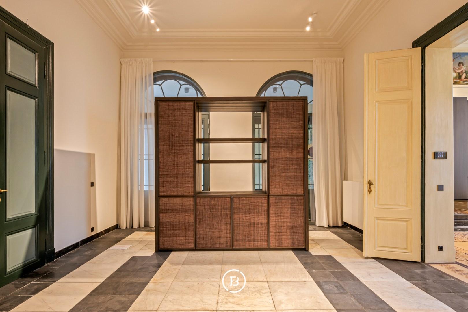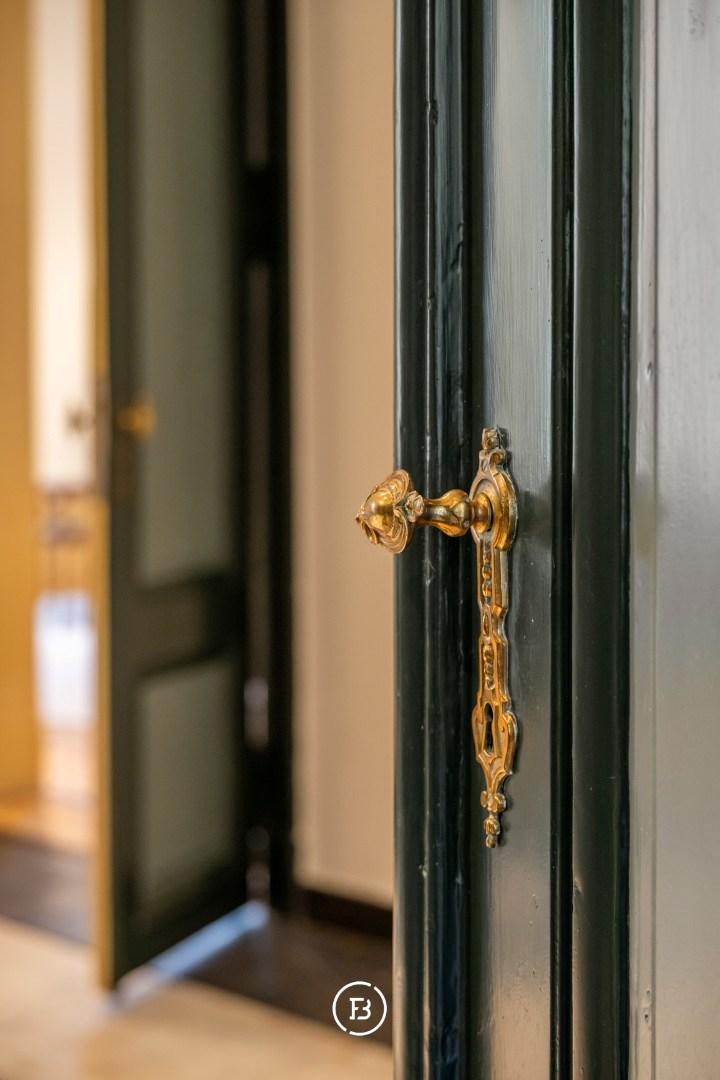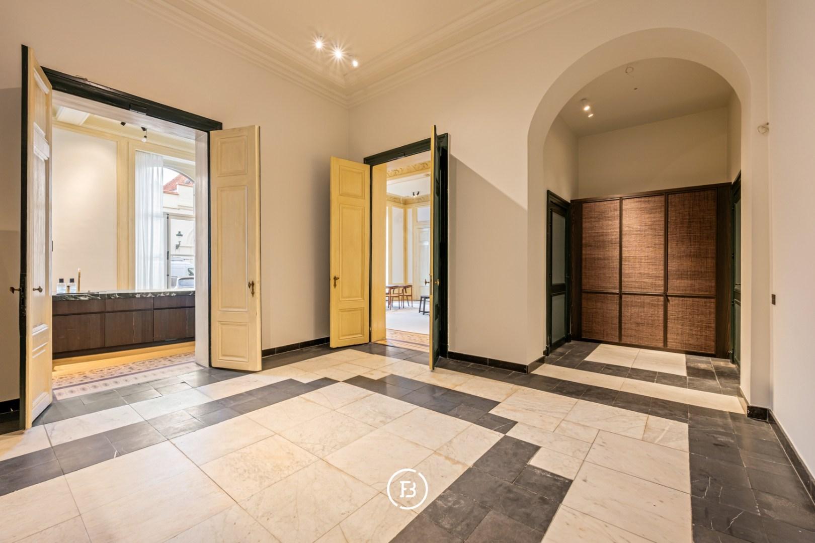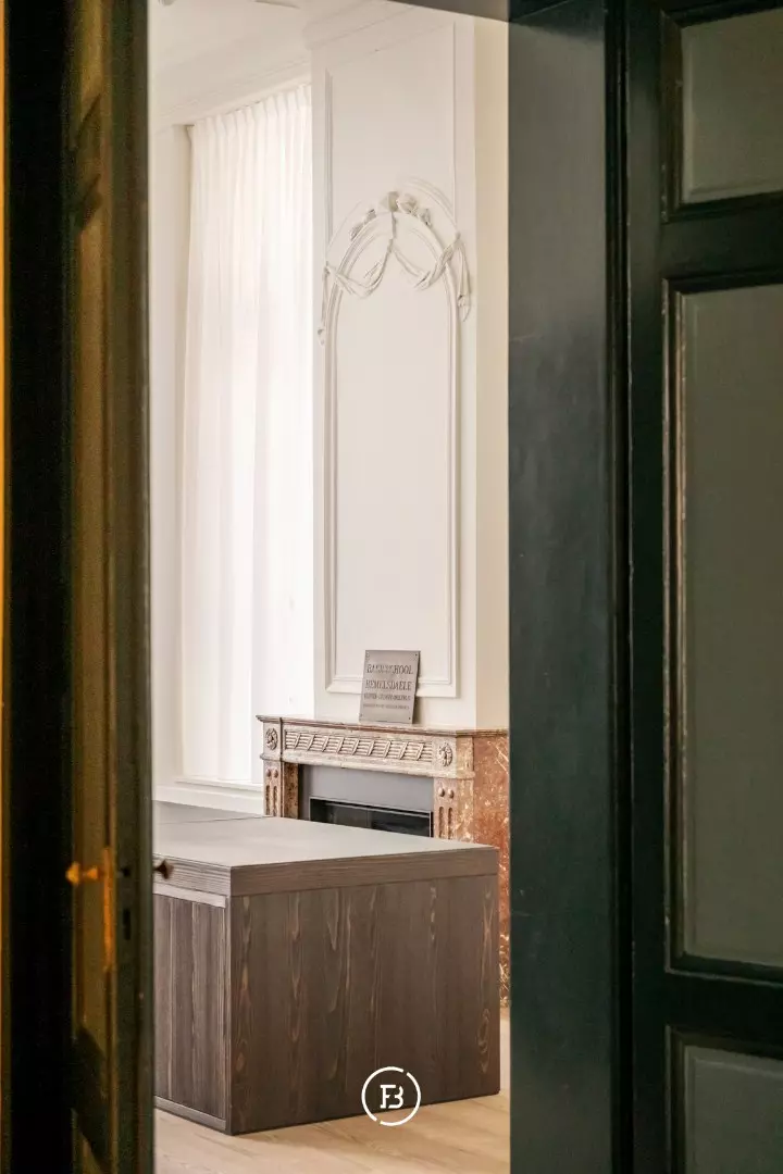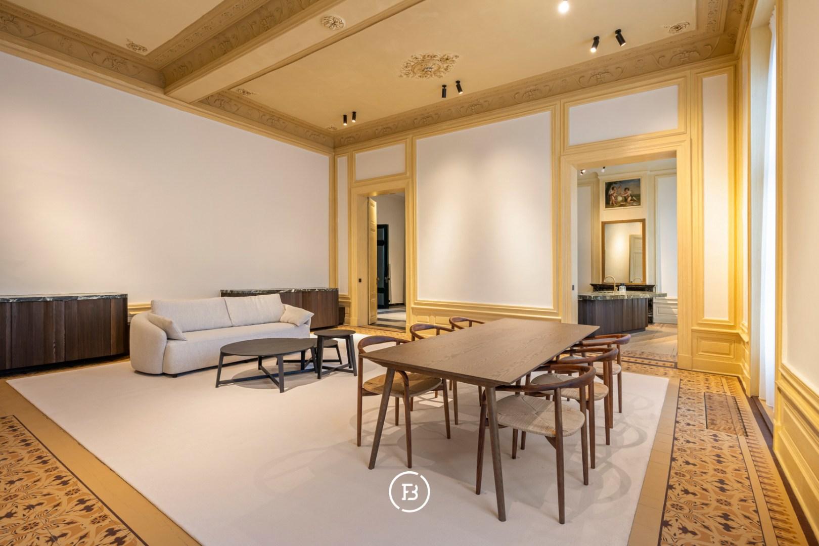 Between the most beautiful church in Bruges, the Walburga Church, and the College of Europe, you will find this exclusive residential apartment. It offers spacious living areas, high ceilings, and historical elements such as majestic moldings and leather wall coverings. It is hard not to be lyrical about the assets of this monumental property.