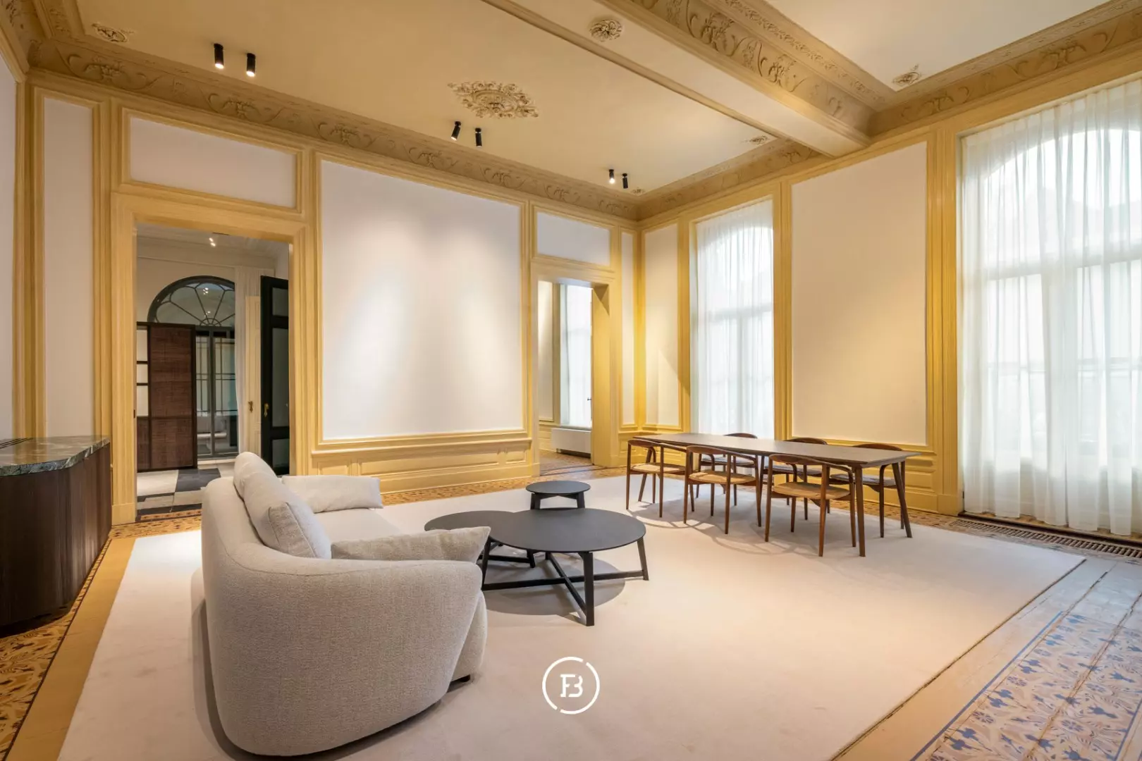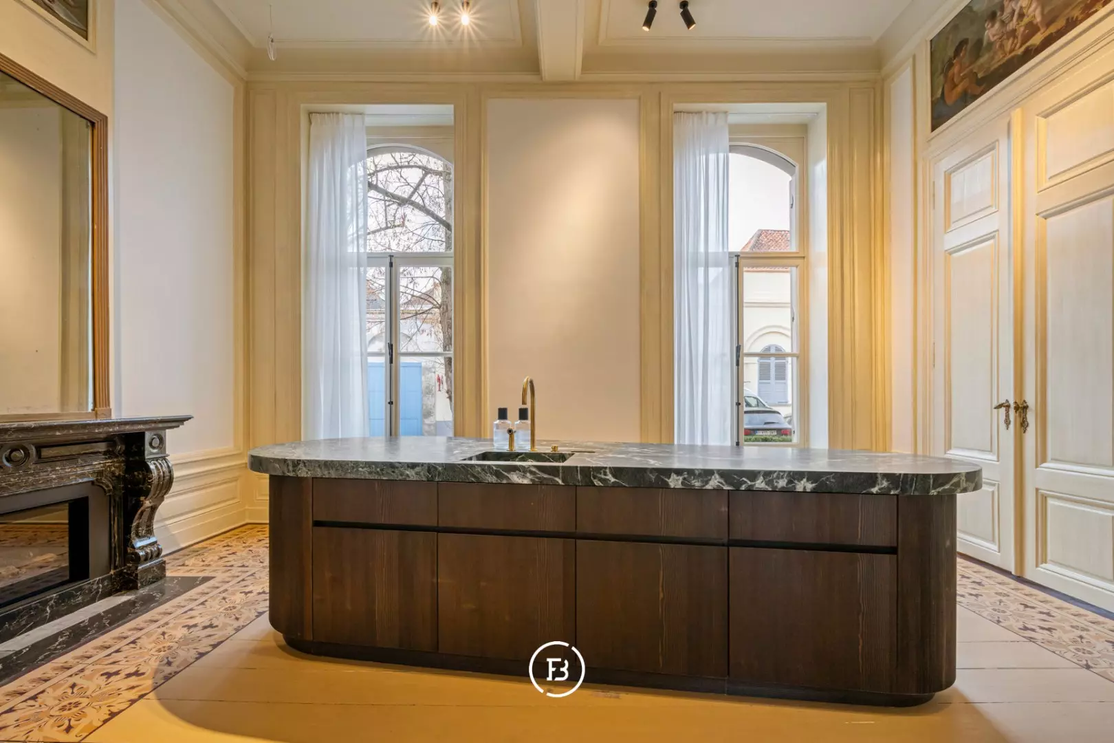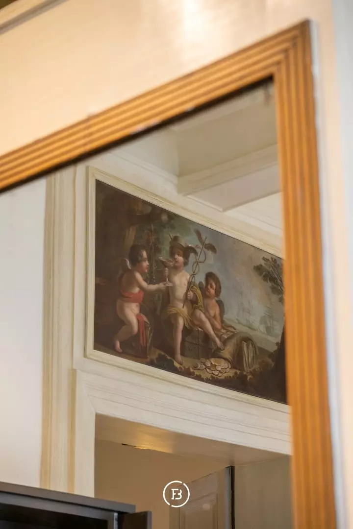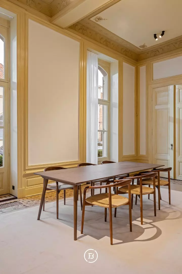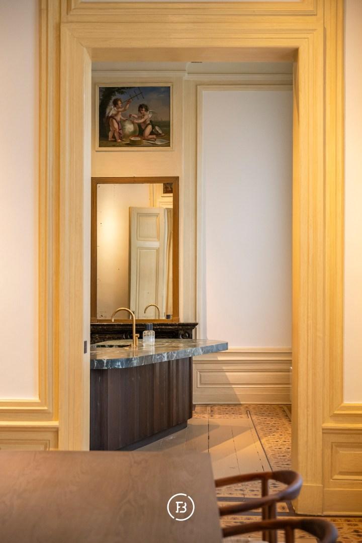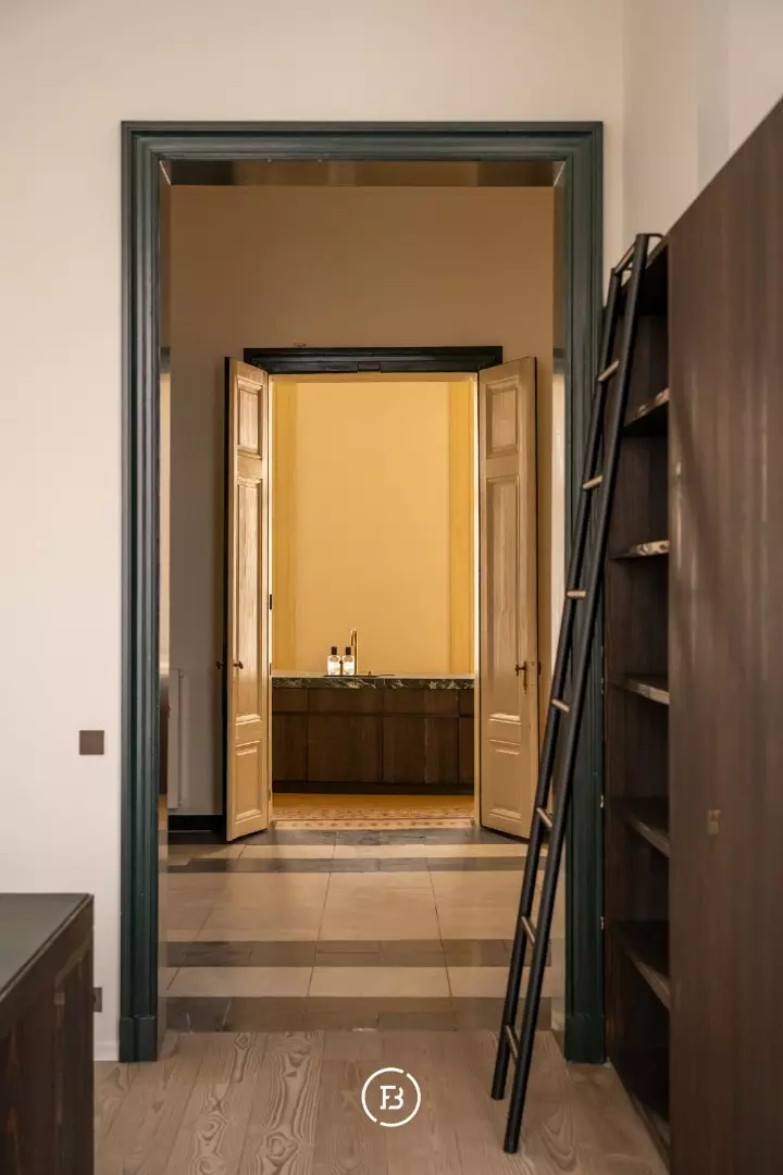 Between the most beautiful church in Bruges, the Walburga Church, and the College of Europe, you will find this exclusive residential apartment. It offers spacious living areas, high ceilings, and historical elements such as majestic moldings and leather wall coverings. It is hard not to be lyrical about the assets of this monumental property.