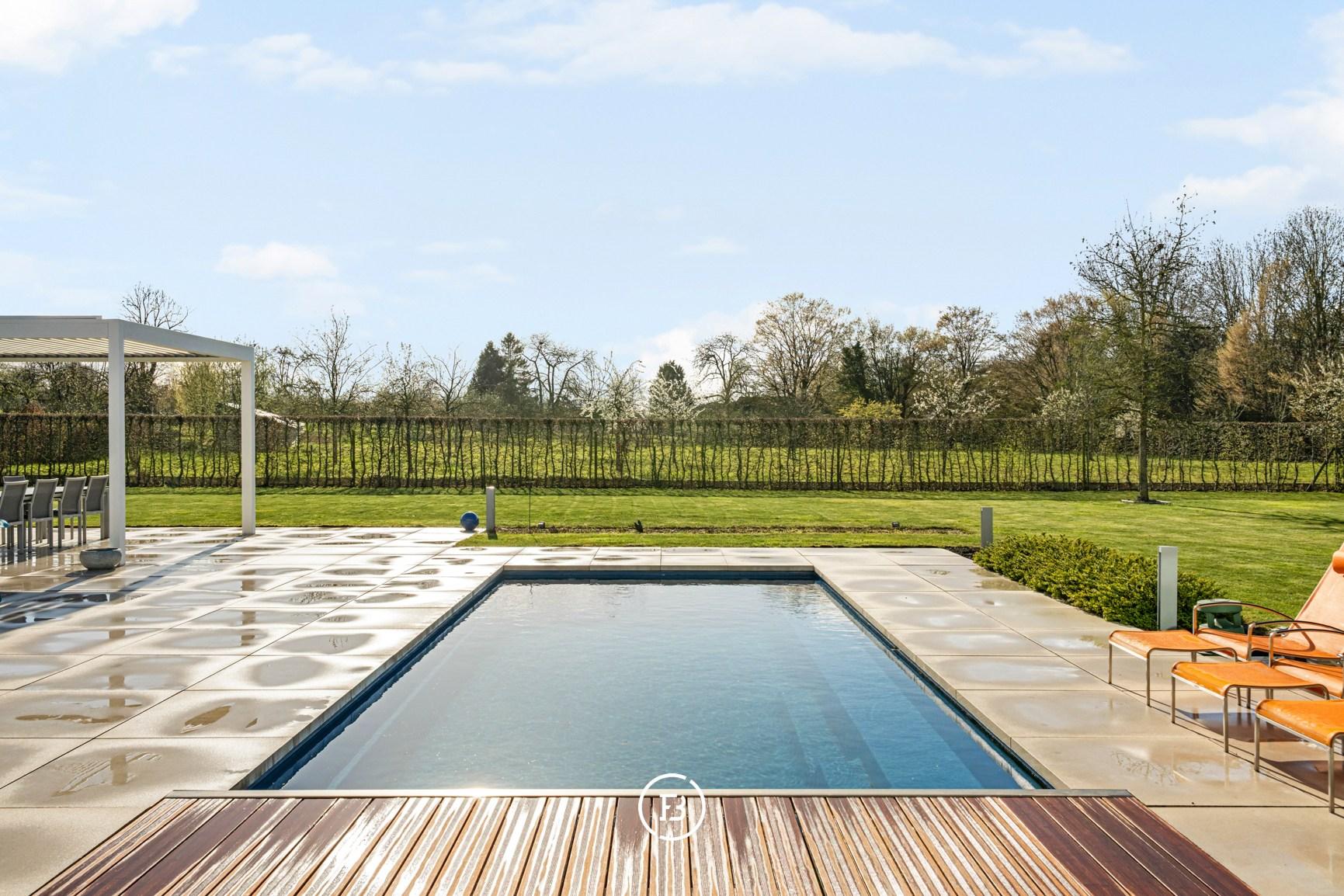 The outdoor environment is an essential part of this property. The landscaped garden features a built-in 9 x 4 meter pool, a stylish pool house, and multiple terraces where you can enjoy sun and privacy at any time of the day.