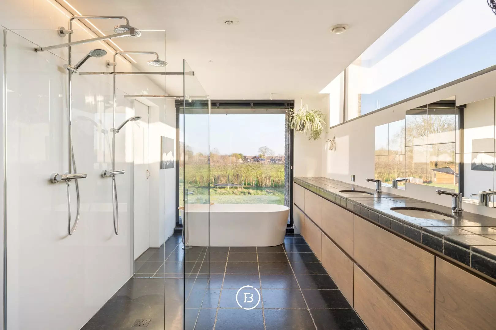 With an energy label A and compliant electricity, sustainability and technical quality are also taken into account, making the whole property future-proof. This light-filled villa thus strikes a perfect balance between modern architecture, comfort, and a unique location in the greenery.