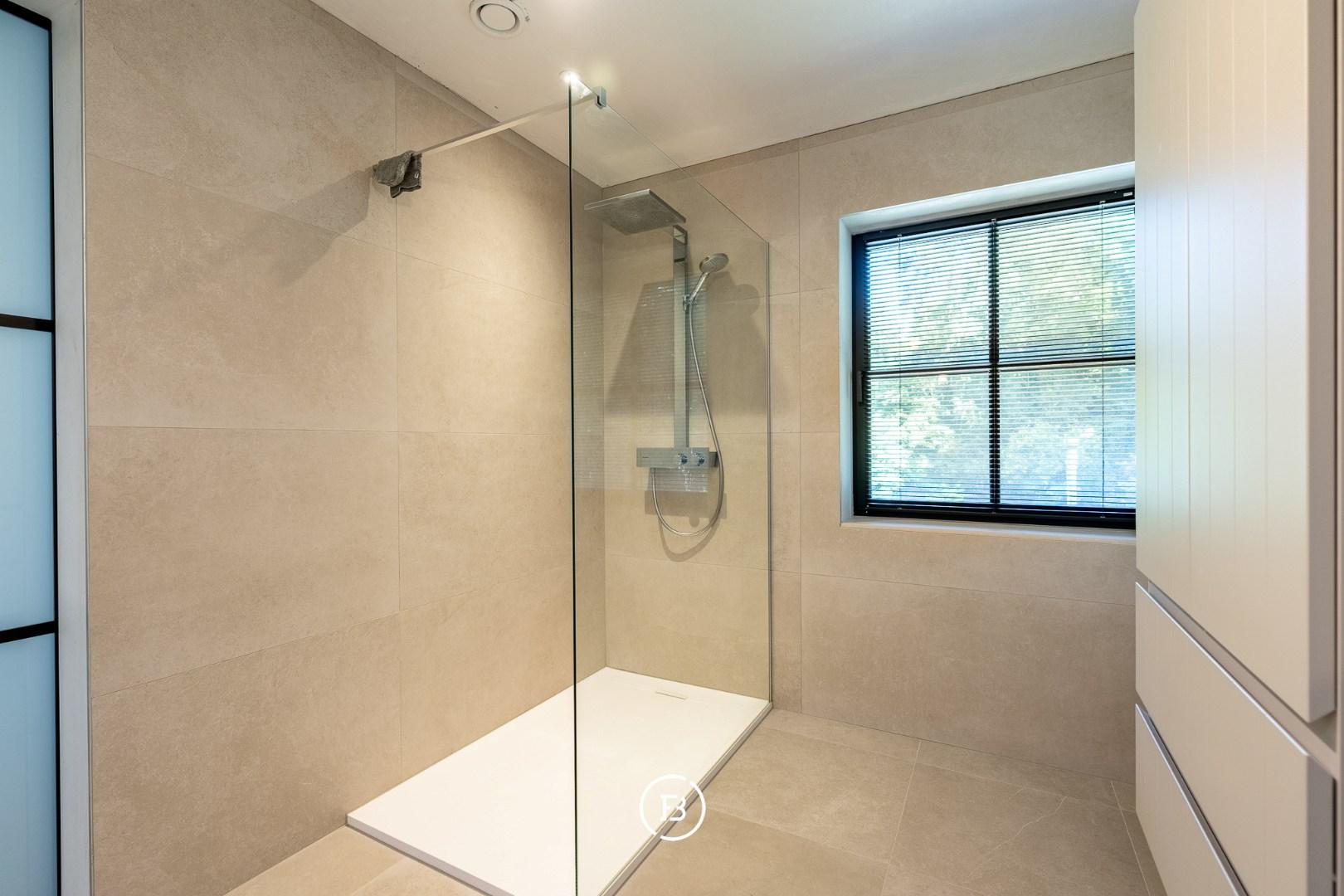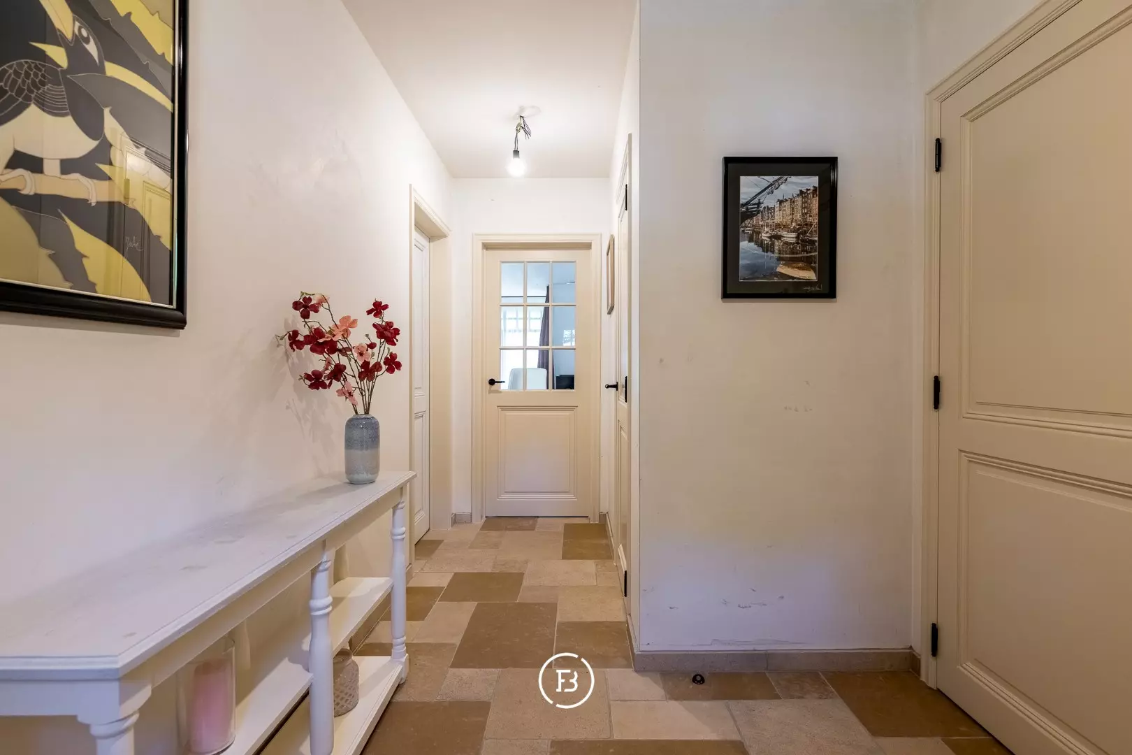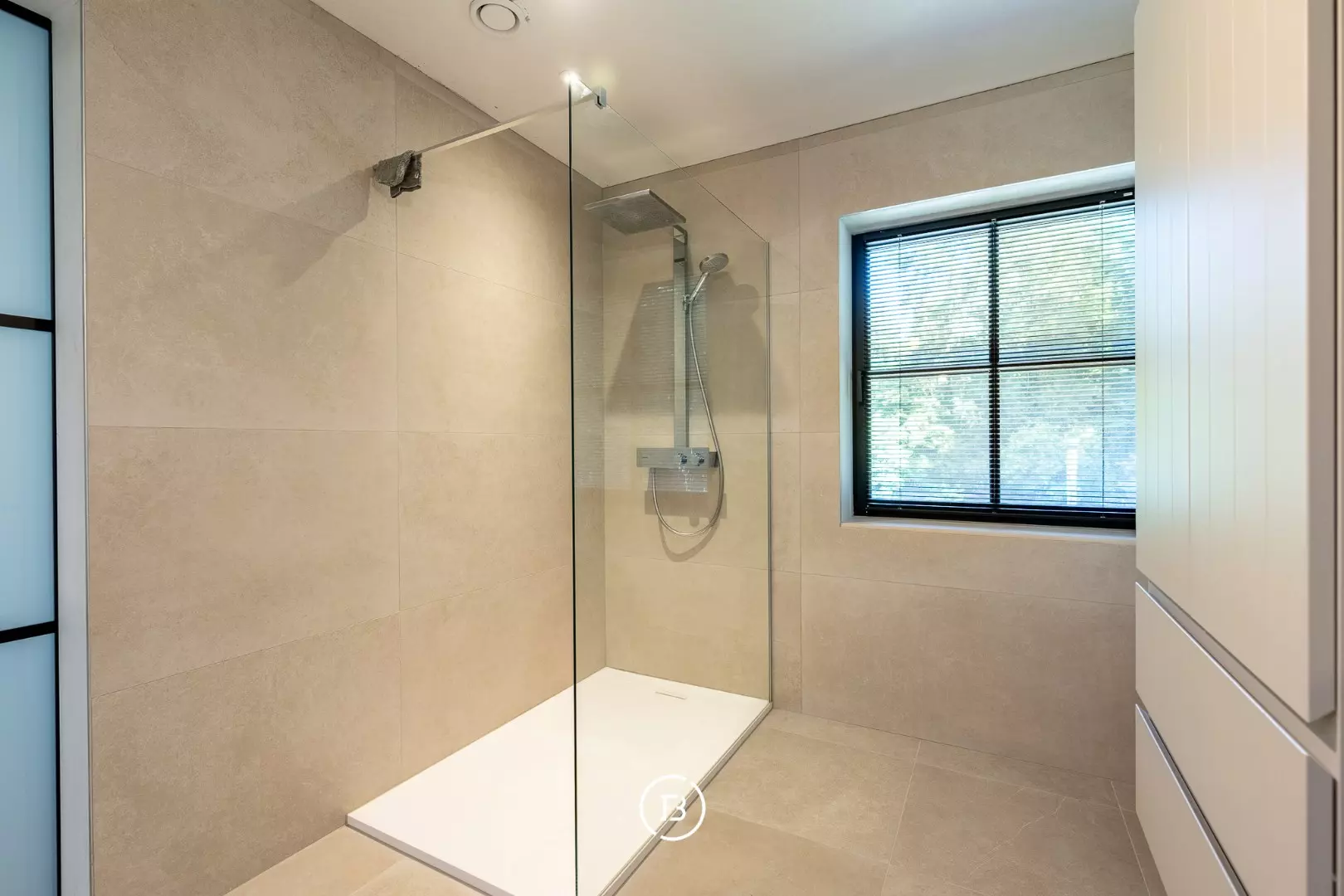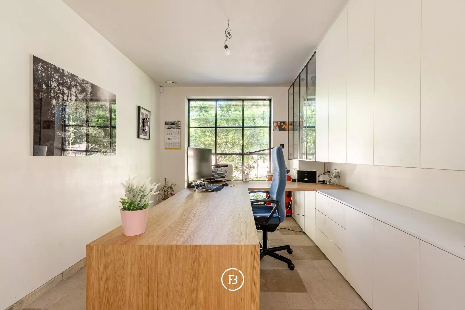 The ground floor features a spacious entrance hall with guest toilet, a bright living room with corner gas fireplace and adjoining office, a dining area, and a fully equipped kitchen with breakfast corner. A practical laundry/utility room with all technical installations and direct garden access completes this level. From the entrance hall, you also reach the spacious garage for one car, with an electric charging station located on the outside.
