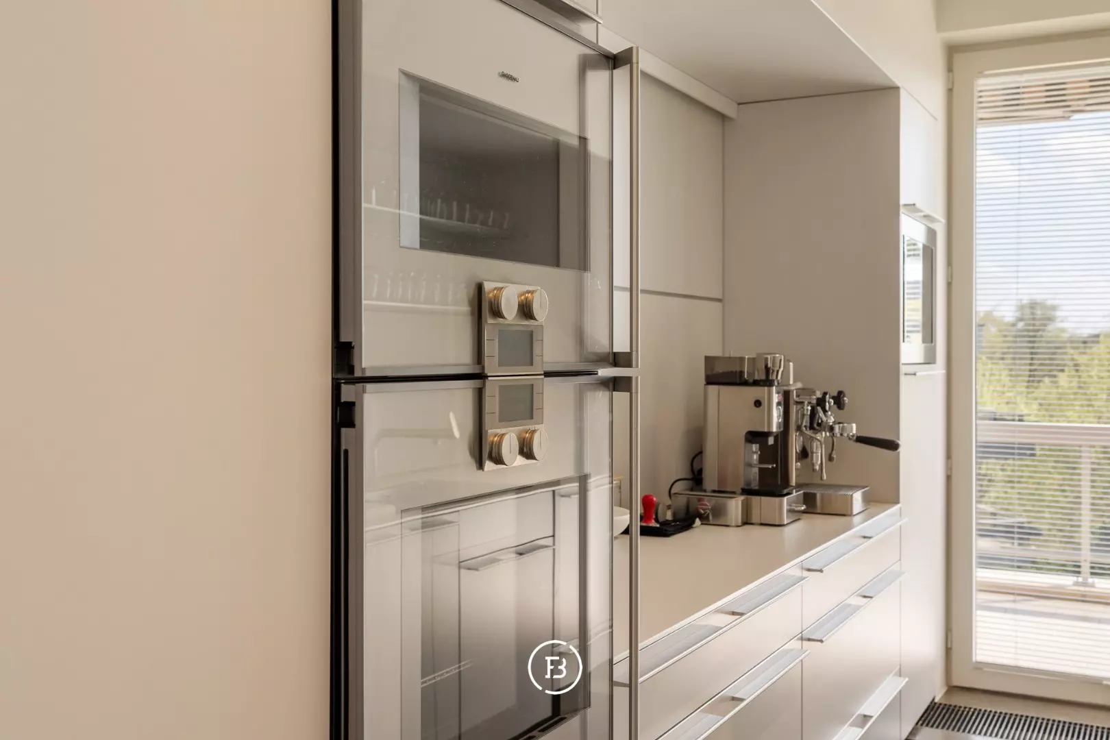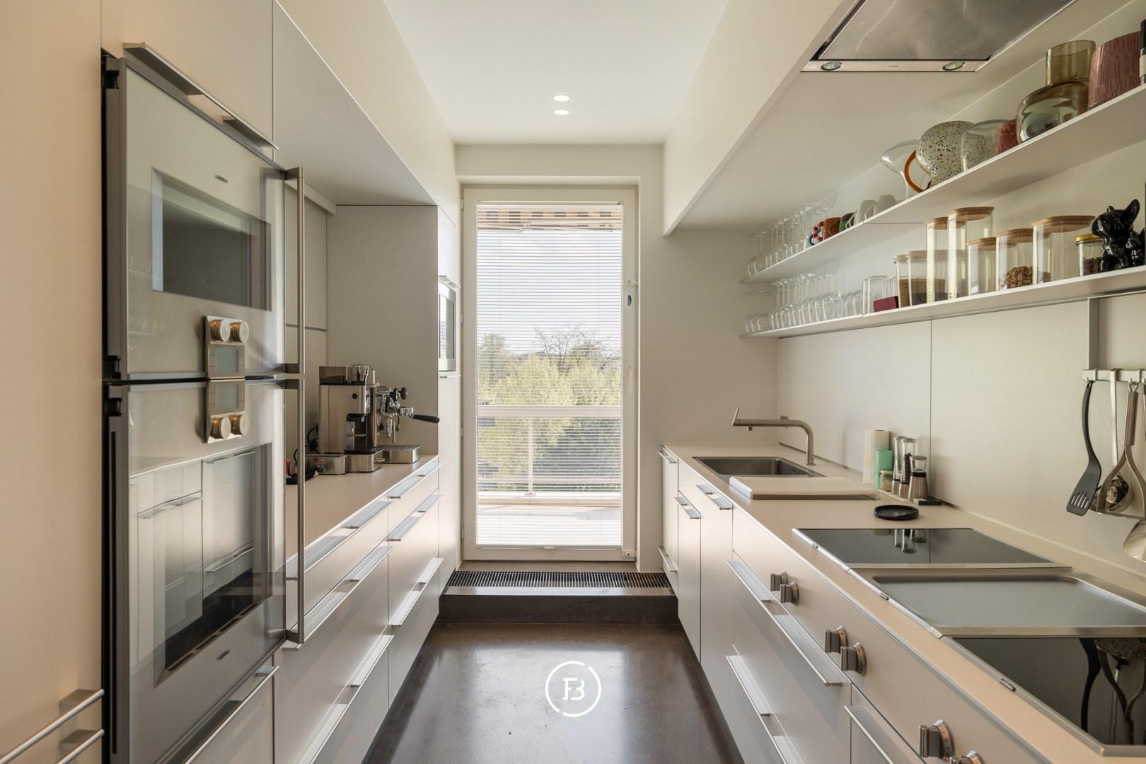 The Bulthaup kitchen is fully equipped and highly functional, including all necessary appliances.