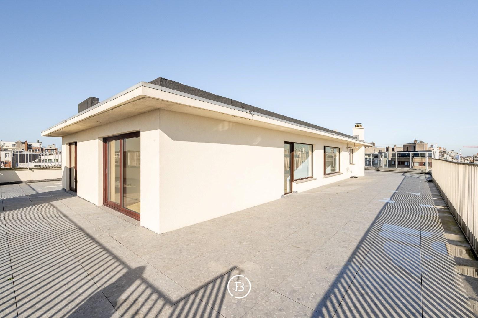 This exceptional penthouse is located on Warschaustraat and has a total surface area of no less than 500 m², including an impressive sun terrace of 272,61 m². A rare combination of spacious interior and a unique outdoor experience, right in the heart of Ostend.