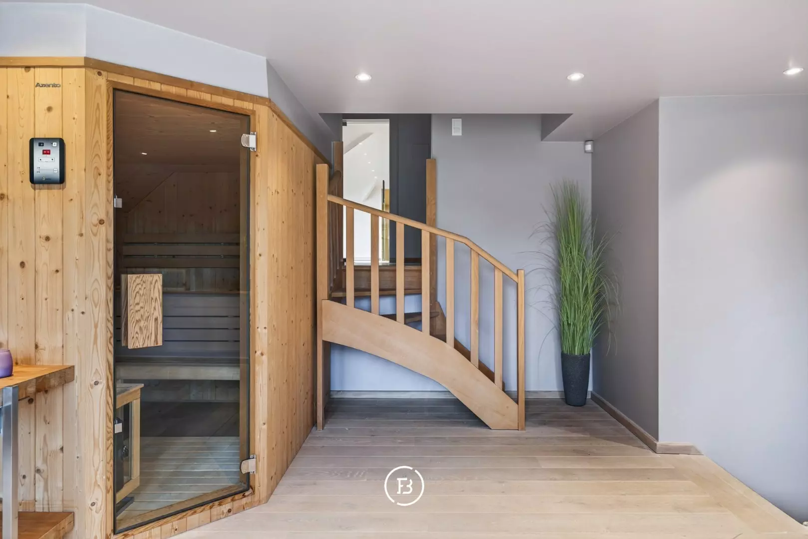 The master suite features a spacious bedroom, dressing room and ensuite bathroom. In addition, there are four generous children’s bedrooms with built-in wardrobes (expandable to six rooms), a sauna and two full bathrooms.