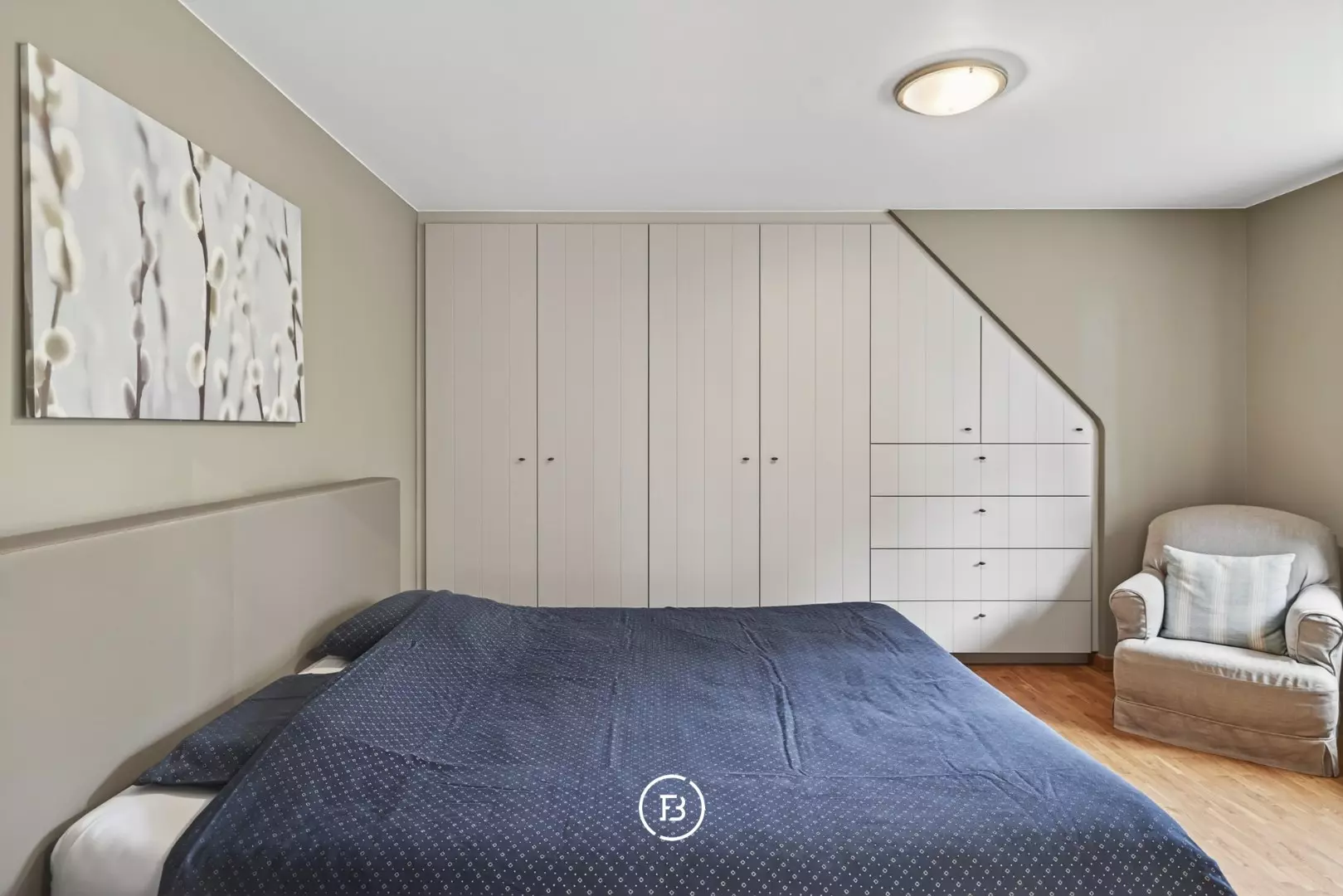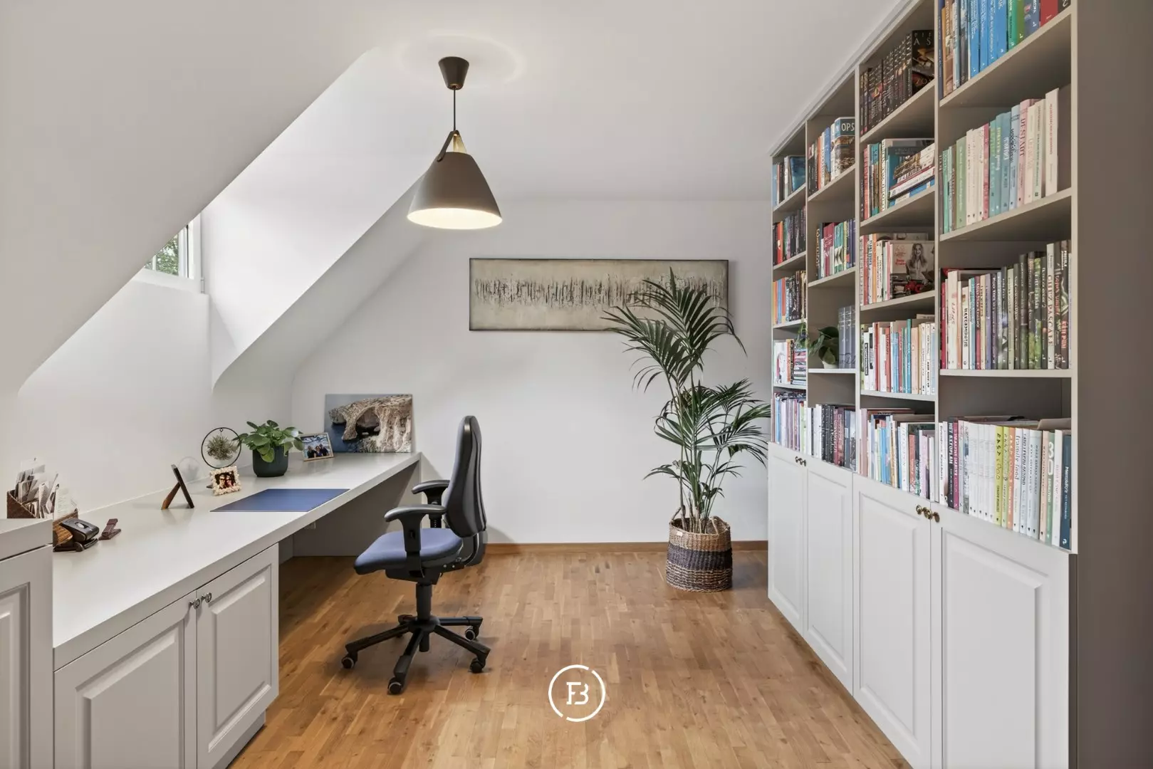 On the first floor, there are three bedrooms and a spacious office. One of the bedrooms offers the possibility to create an extra room. In addition, there are two bathrooms and one of the bedrooms is equipped with air conditioning.