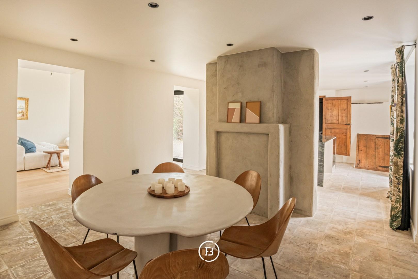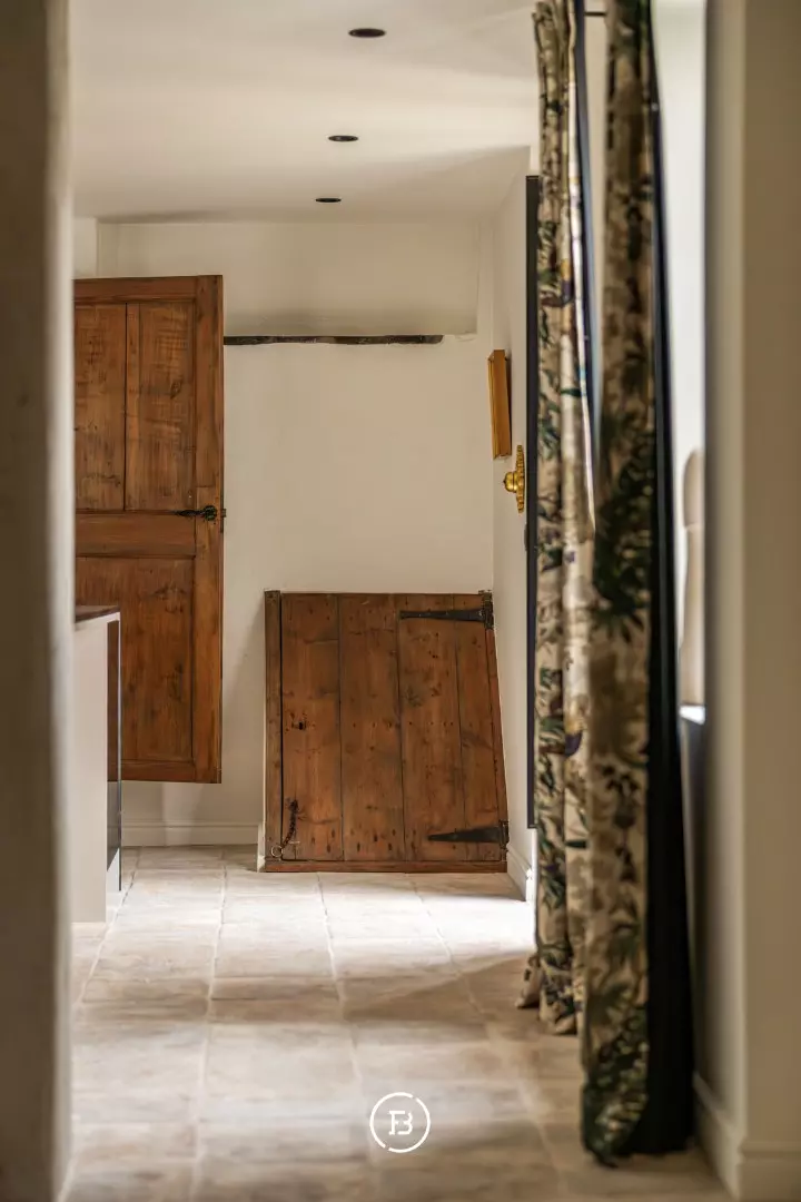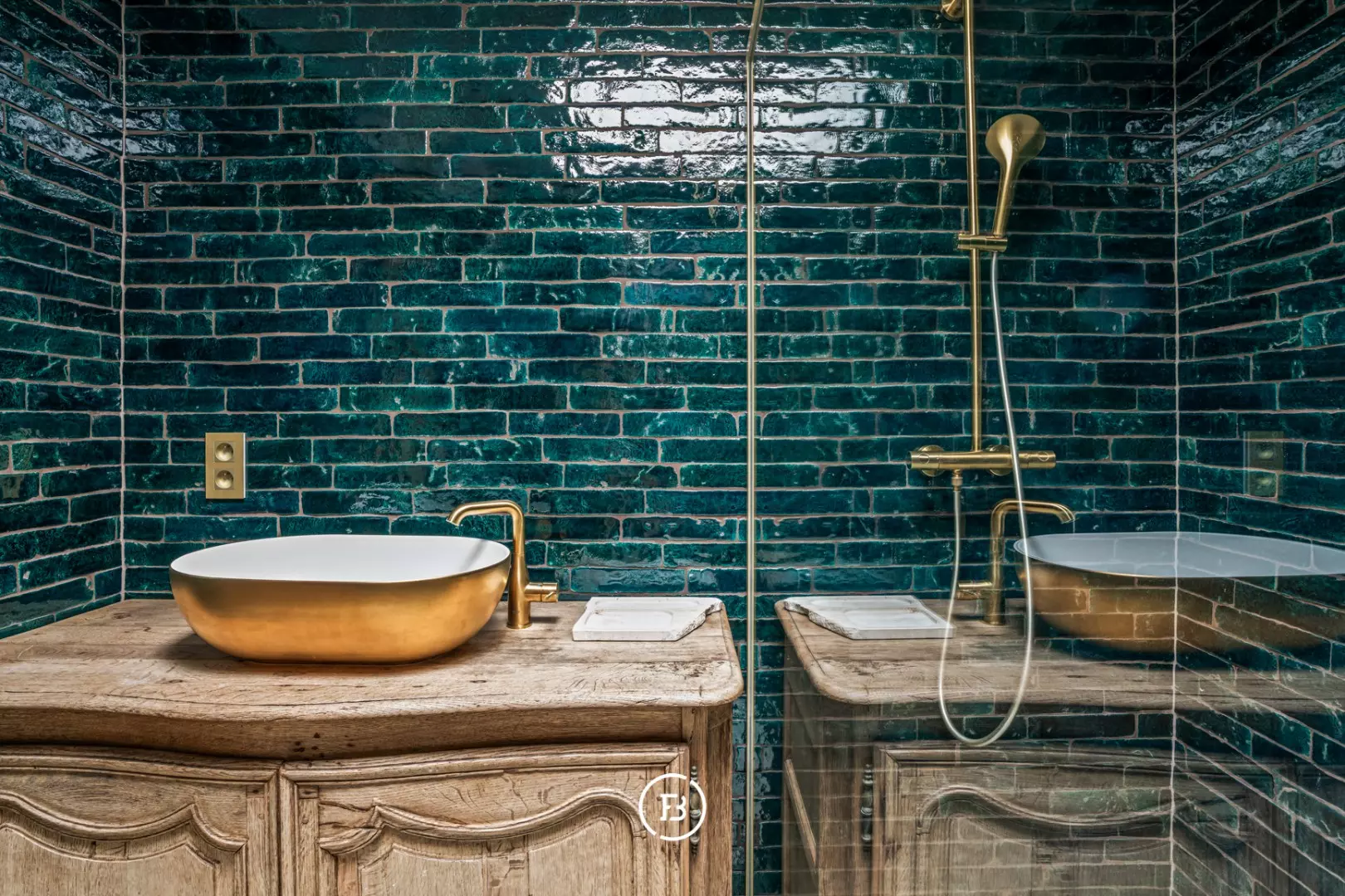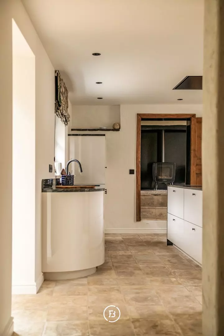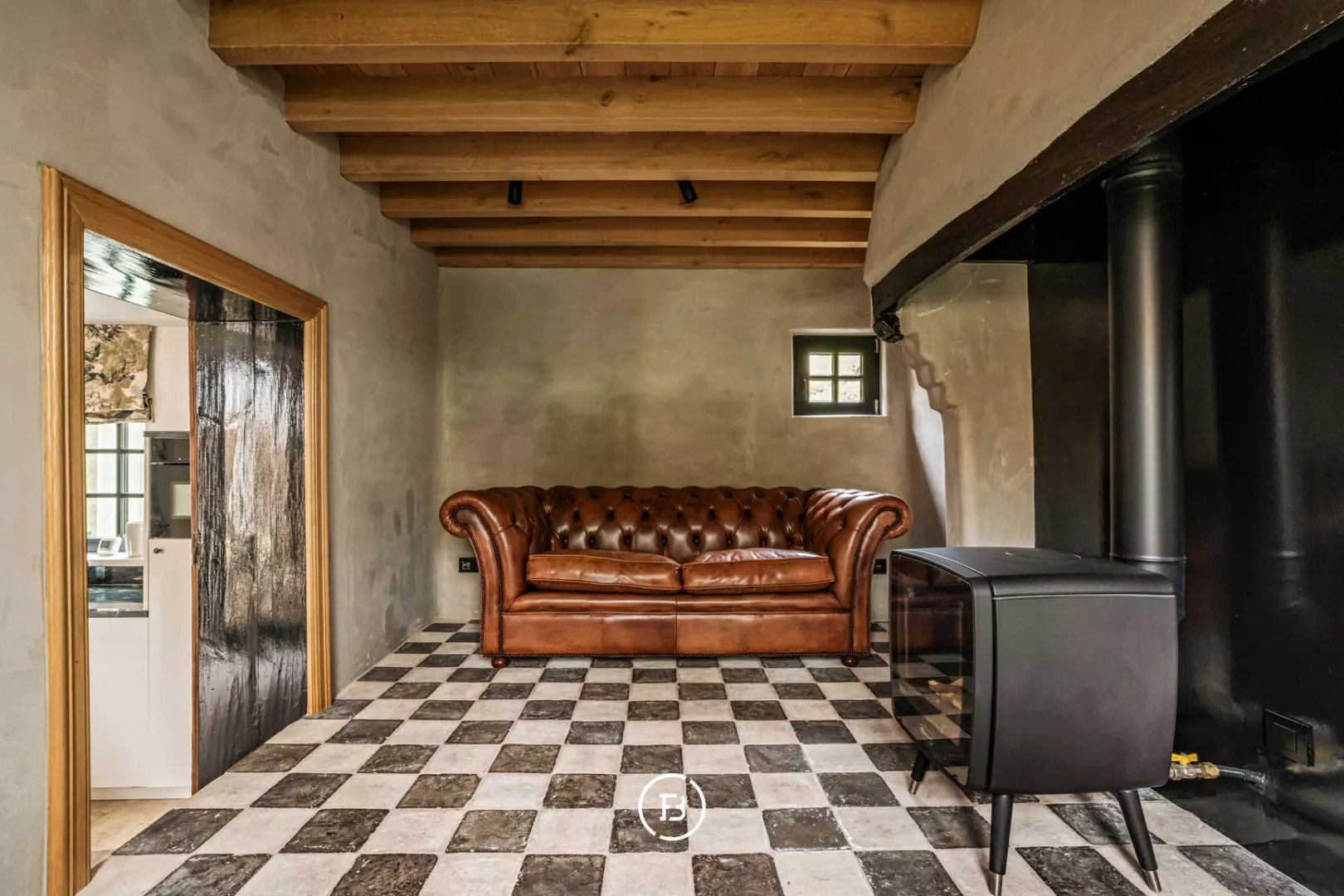 On the ground floor, the authentic “voute” room with wood-burning stove provides an atmospheric extra space, perfect as an office, hobby room or inviting reading corner. The bathroom is modern and fitted with a walk-in shower and washbasin.