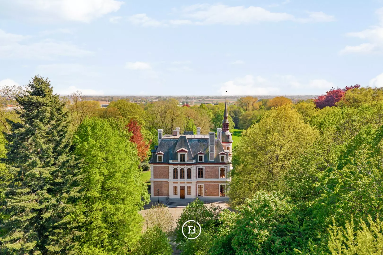 Nestled in an exceptionally green and serene setting, on the border of Tielt and Pittem, lies this prestigious castle estate of approximately 19.4 hectares, where discretion, grandeur and nature come together in perfect harmony. The natural surroundings of the estate are particularly valuable, forming a unique combination of woodlands, meadows and water features.