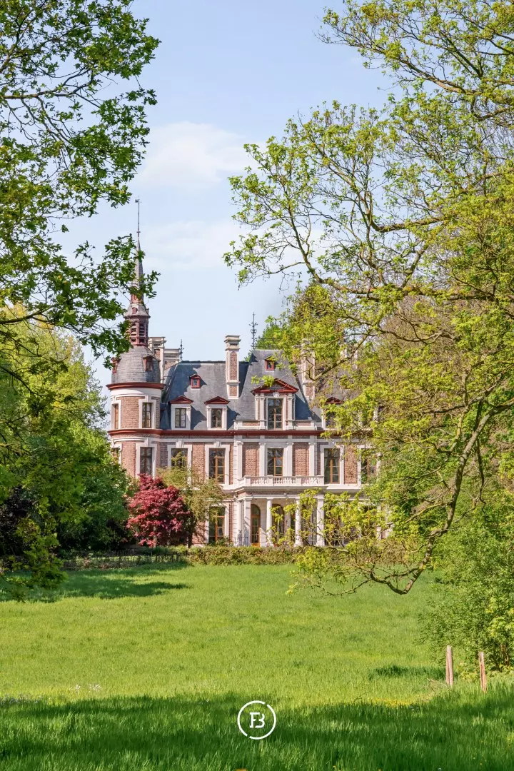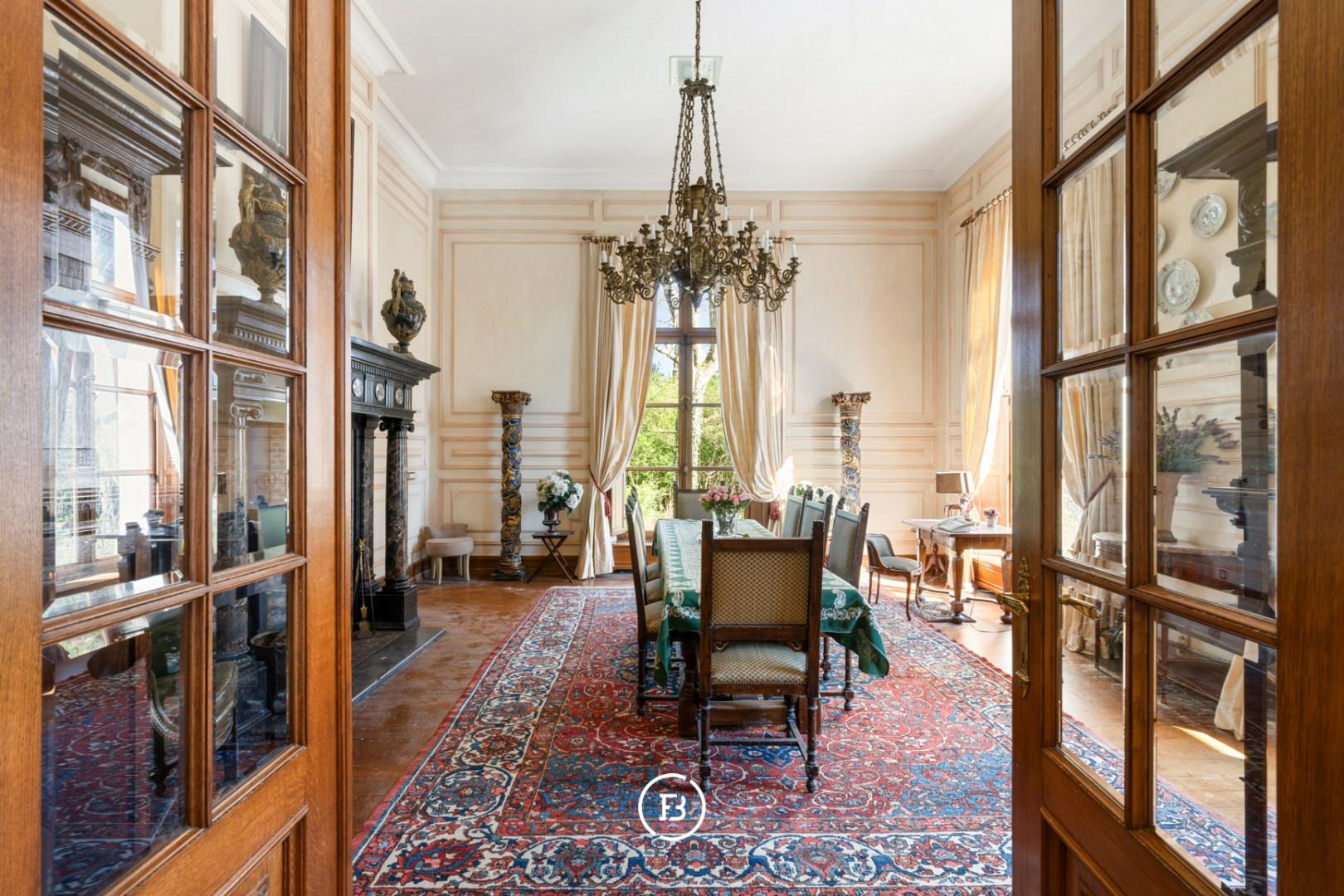 In addition to the castle, the estate includes a charming coach house, currently arranged as a caretaker’s residence, as well as a spacious outbuilding ideal for housing several vehicles. Built in 1885 in an eclectic style with neo-Renaissance influences and thoroughly renovated in 1985, the castle offers approximately 1,164 m² of living space, combining authenticity, generous volumes and modern comfort.