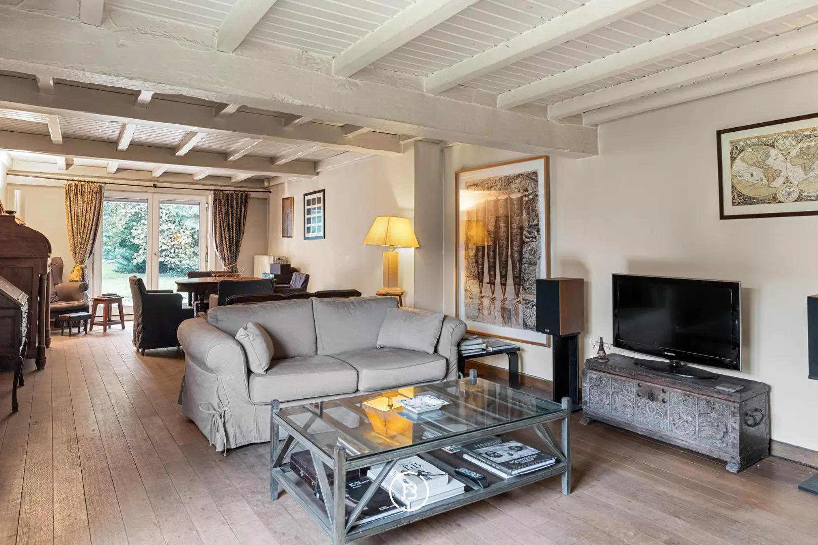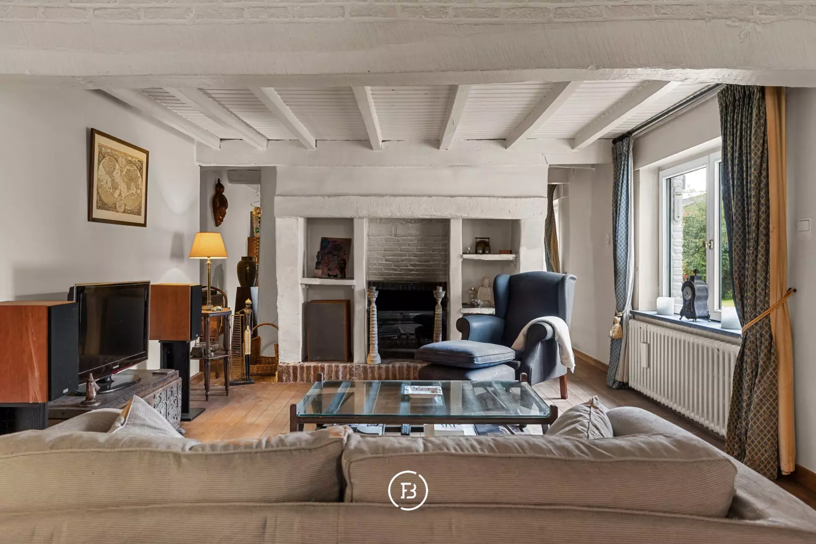Come and discover this characterful villa/farmhouse, dating from the period 1875-1899, where authenticity and charm are central. Think original wooden beams, blue shutters, and a cozy wood fireplace. This unique property is located in a green, peaceful area, yet still enjoys excellent accessibility. An additional asset is undoubtedly the beautiful view!