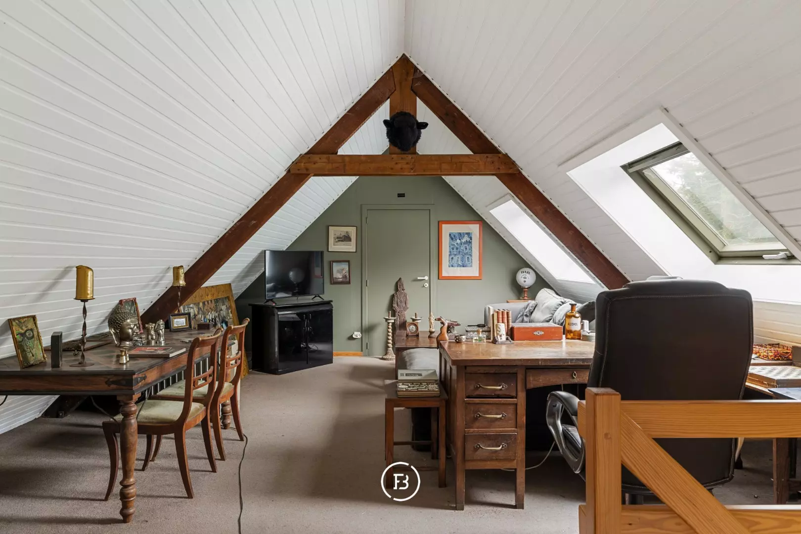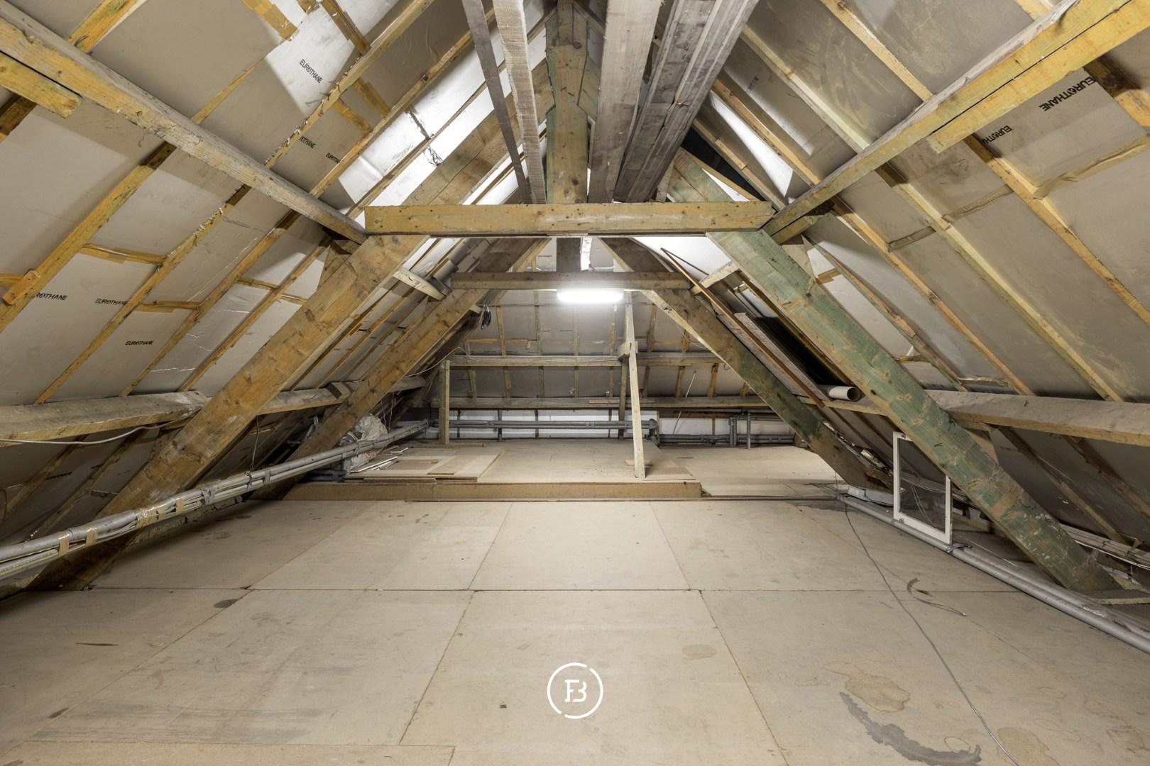 On the first floor, there are two additional bedrooms, each accessible via a separate staircase, providing extra privacy. One of the bedrooms also has its own bathroom. The remaining attic space is generous and can be arranged in various ways.