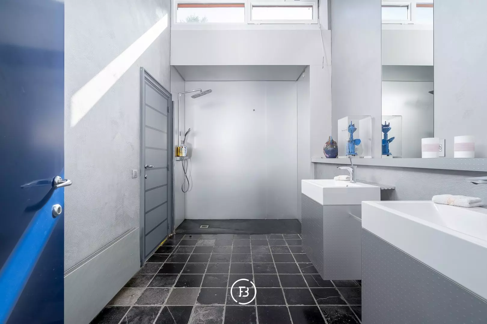 Upon entering the villa, we enter a large entrance hall with guest toilet and cloakroom.