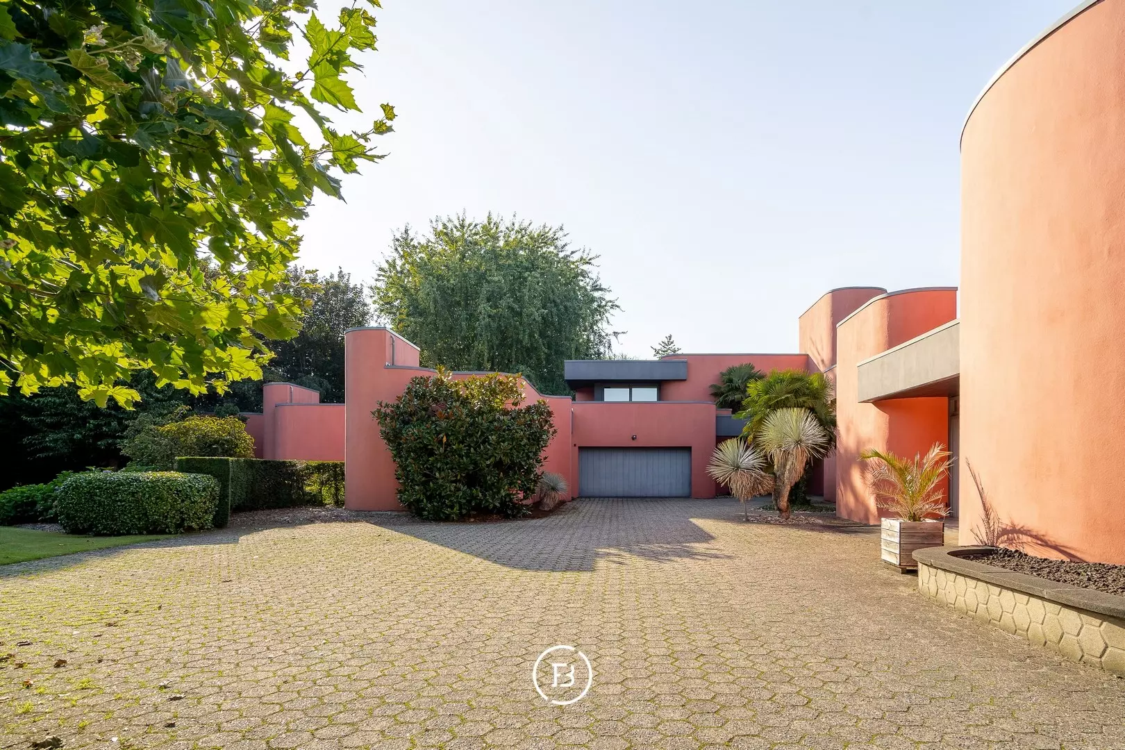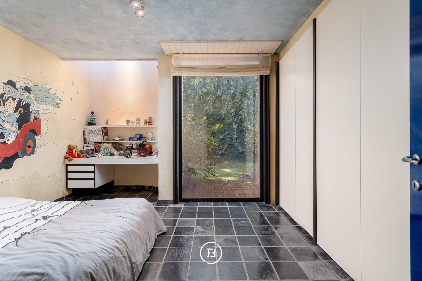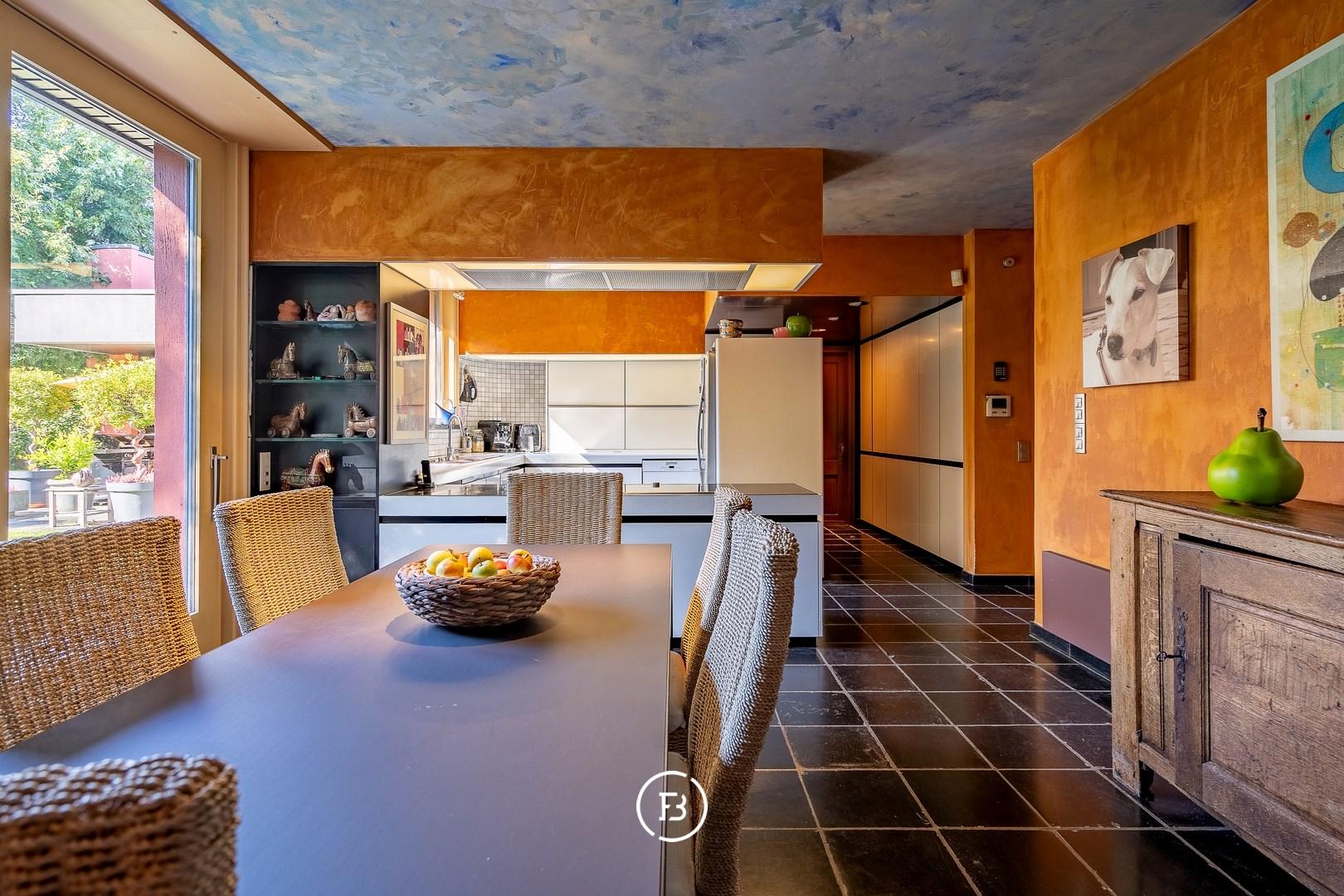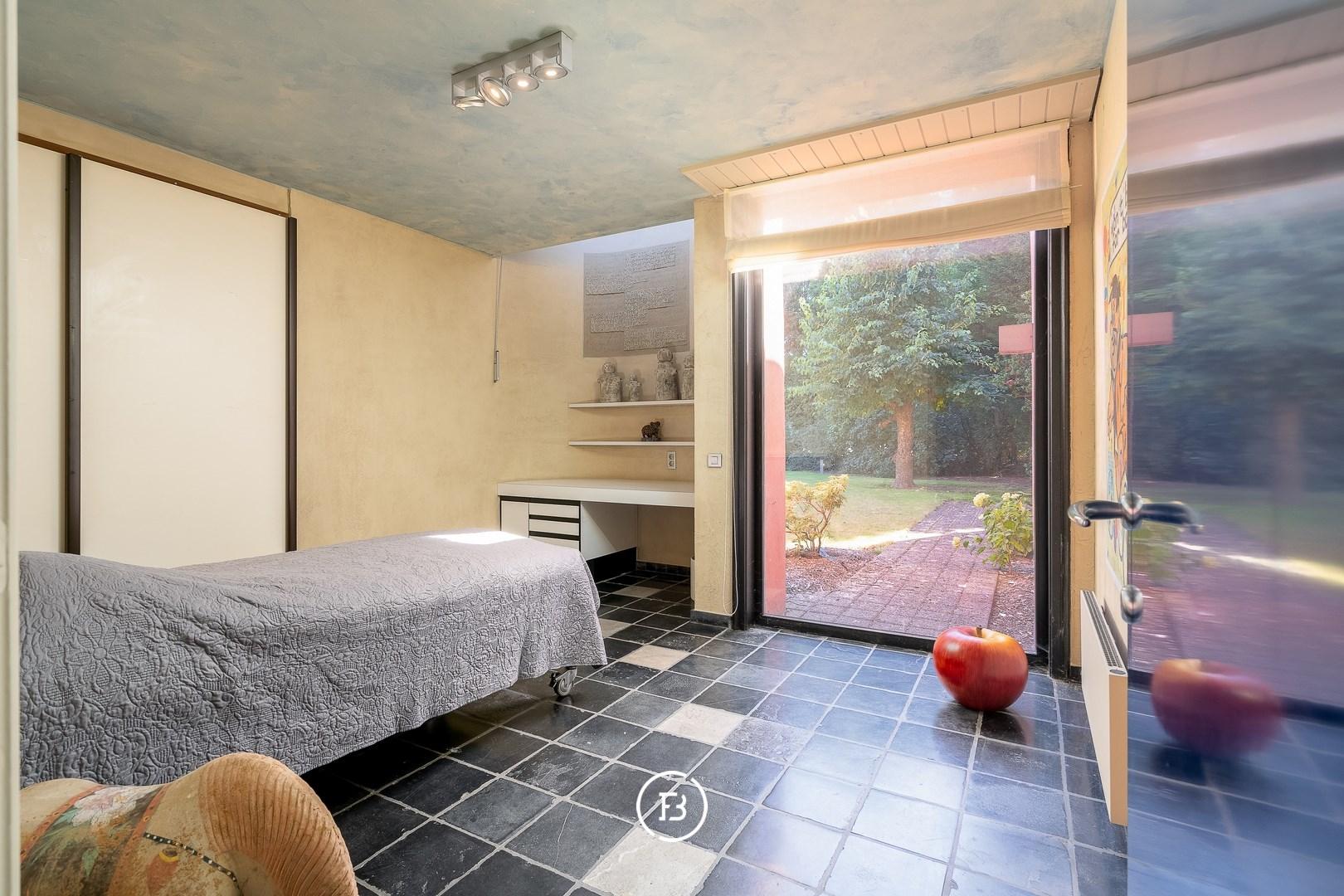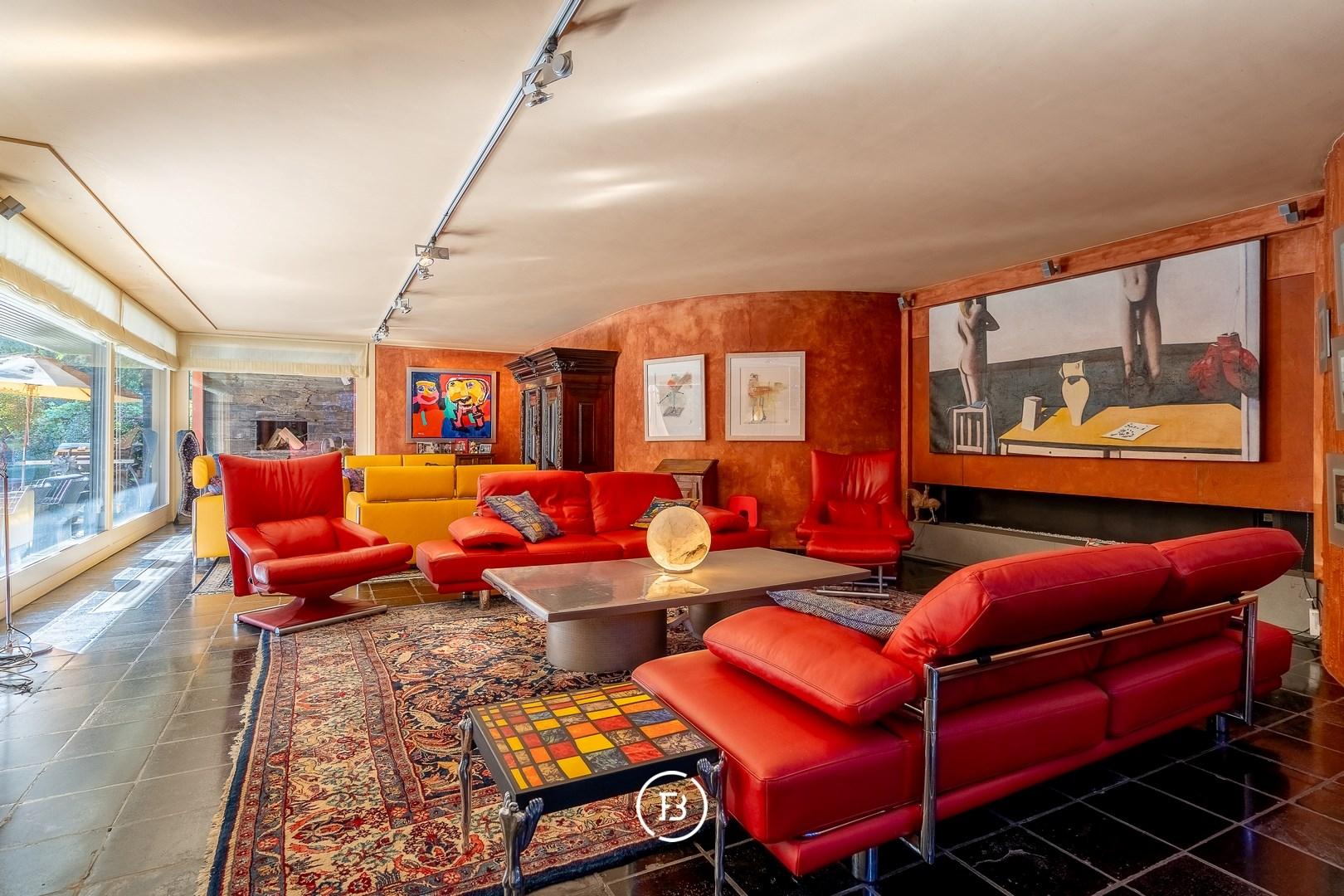 This unique architect's villa was built in 1976 and designed by architect Jan Vangheluwe. The total area of the plot is about 6000 m² with a living area of no less than 1057 m². The villa is characterised by rounded volumes and a beautiful green garden.
