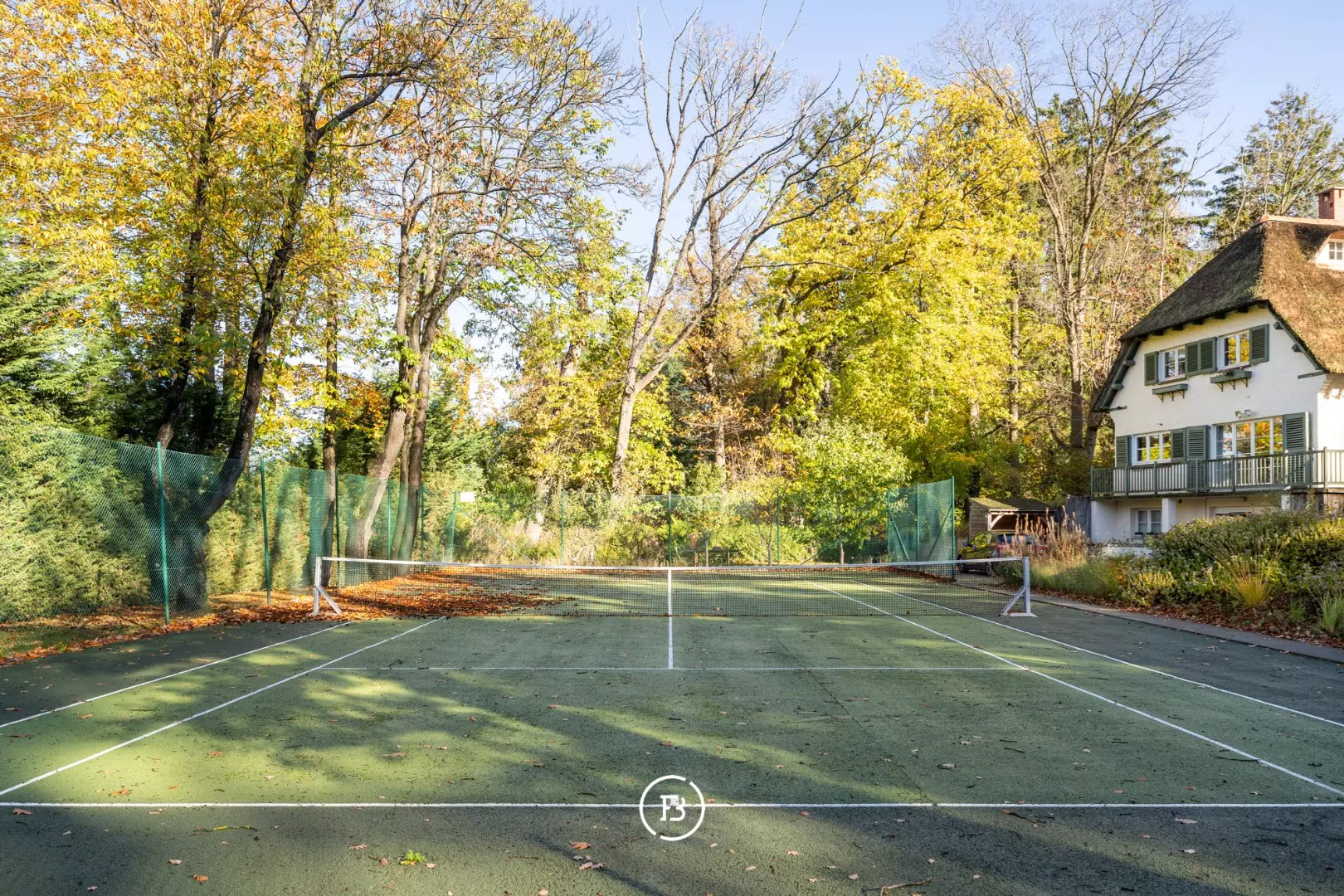 In 2015, the property underwent a complete renovation, including the addition of a three-car carport that blends seamlessly with the architectural style of the main buildings. The estate also includes a tennis court and a mature, beautifully landscaped garden offering peace and discretion.