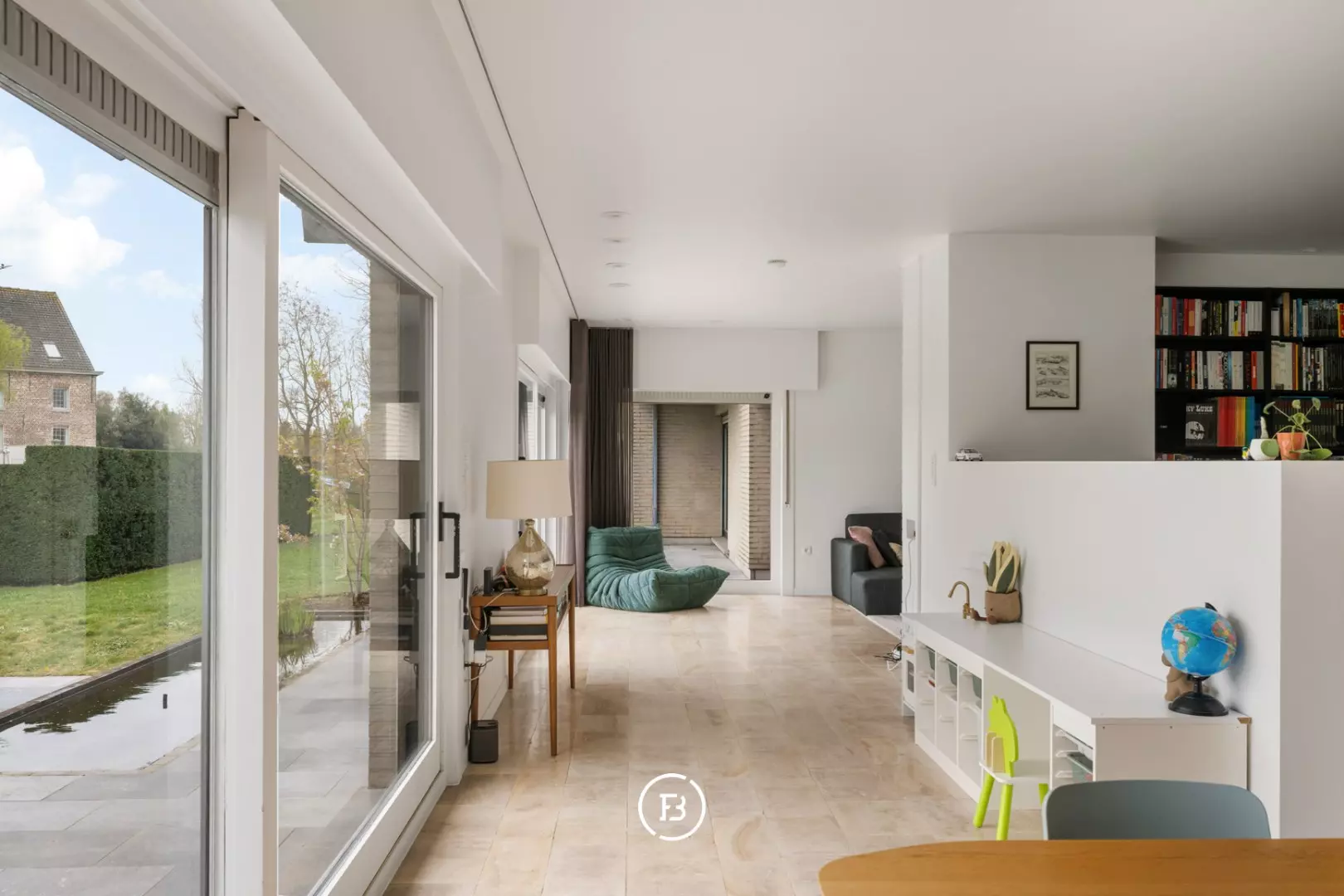 Technically, the house is equipped with underfloor heating on a heat pump (with cooling function), solar panels with green energy certificates until 2030, double glazing, and an EPC label B, resulting in an energy-efficient and comfortable living climate.