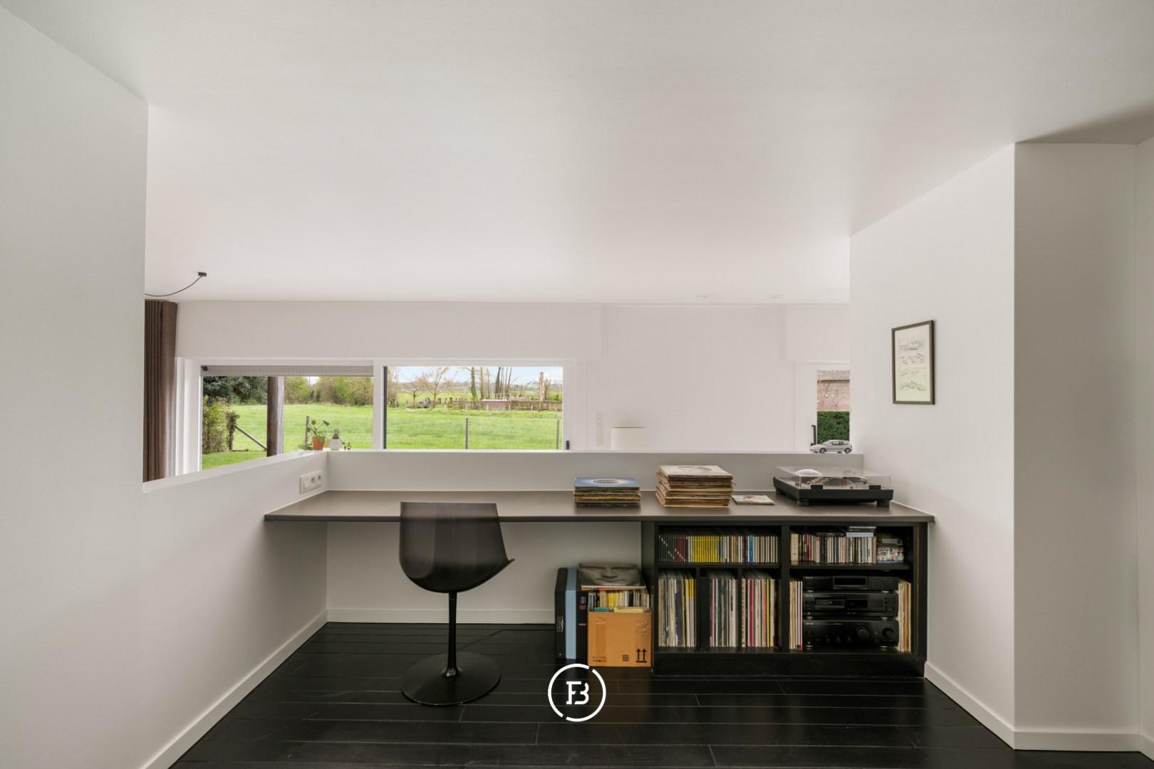 The outdoor environment has been landscaped with attention to low maintenance and enjoys a south-facing orientation with an open view of the surrounding fields of the Zwalm region. Multiple terraces create different places to enjoy the landscape and tranquility. The plot also has a practical driveway and a garden shed.