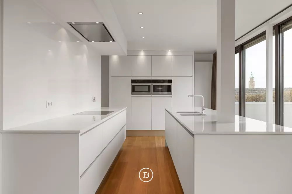 L'espace de vie est généreux et lumineux, avec suffisamment de place pour différentes zones de vie sans sacrifier l'intimité. La cuisine ouverte s'intègre parfaitement dans l'ensemble et est finie dans un design épuré et intemporel avec des appareils encastrés de qualité. Il y a deux rangements pratiques disponibles.