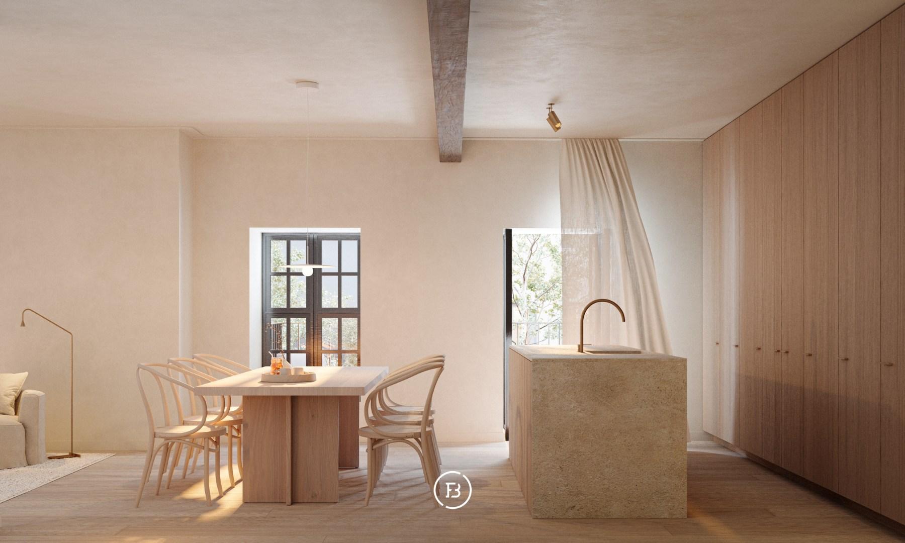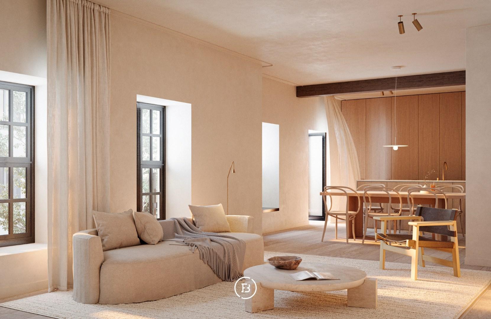 Même à l'intérieur des appartements, l'atmosphère caractéristique du monastère sera maintenue autant que possible sur la base de l'aménagement intérieur individuel réalisé pour chaque unité résidentielle. La palette de couleurs, les matériaux de finition et les éléments historiques qui ont été conservés à différents endroits créent un bel équilibre entre le présent et le passé, ce qui rend bien sûr ces appartements uniques dans la ville.