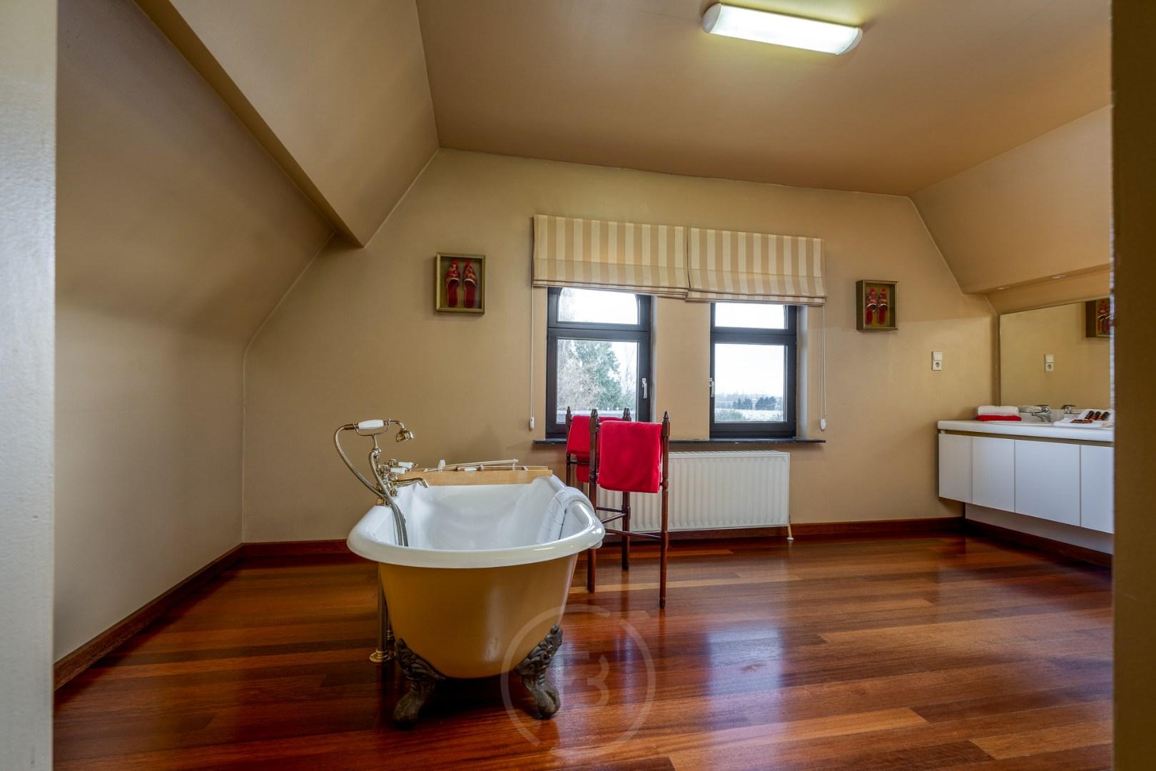 Un atout supplémentaire se situe en façade : un terrain à bâtir d’environ 3.000 m². Celui-ci offre de belles perspectives de développement, avec la possibilité de construire jusqu’à trois niveaux et d’assurer une continuité cohérente avec l’existant.