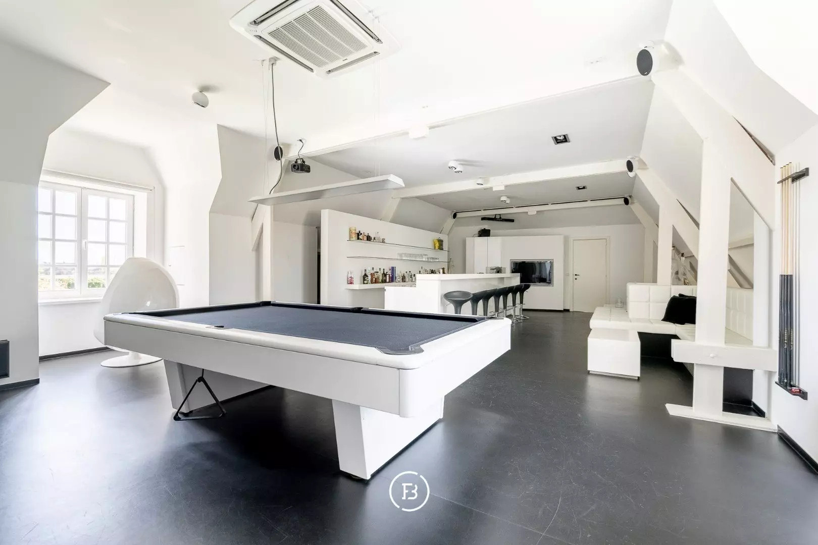 À l’étage, vous trouverez quatre chambres supplémentaires, deux salles de bains et un espace détente polyvalent avec bar, billard et sanitaires séparés. Deux grands bureaux offrent des espaces parfaits pour le télétravail ou l’exercice d’une profession libérale.