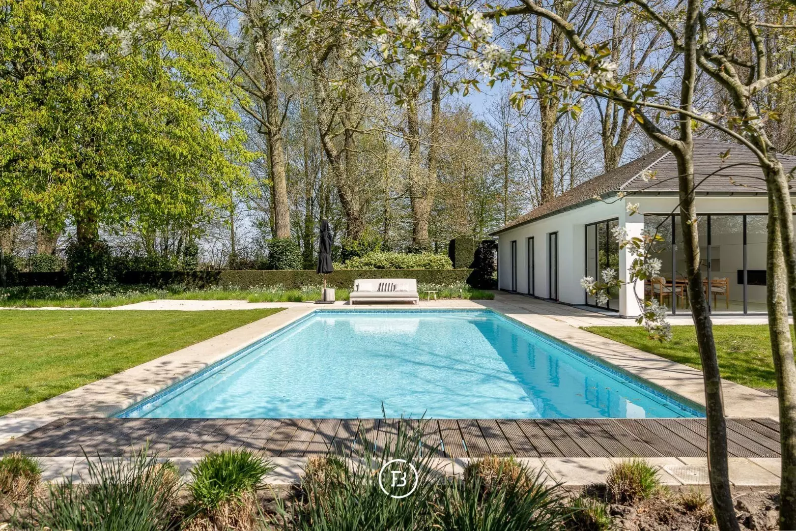 Situé sur un vaste terrain de 8.679 m² à proximité de Courtrai, ce domaine exclusif comprend une grande piscine et un pool house moderne.