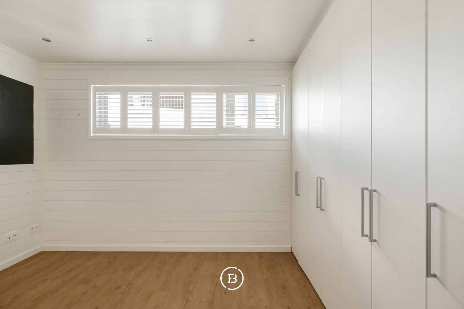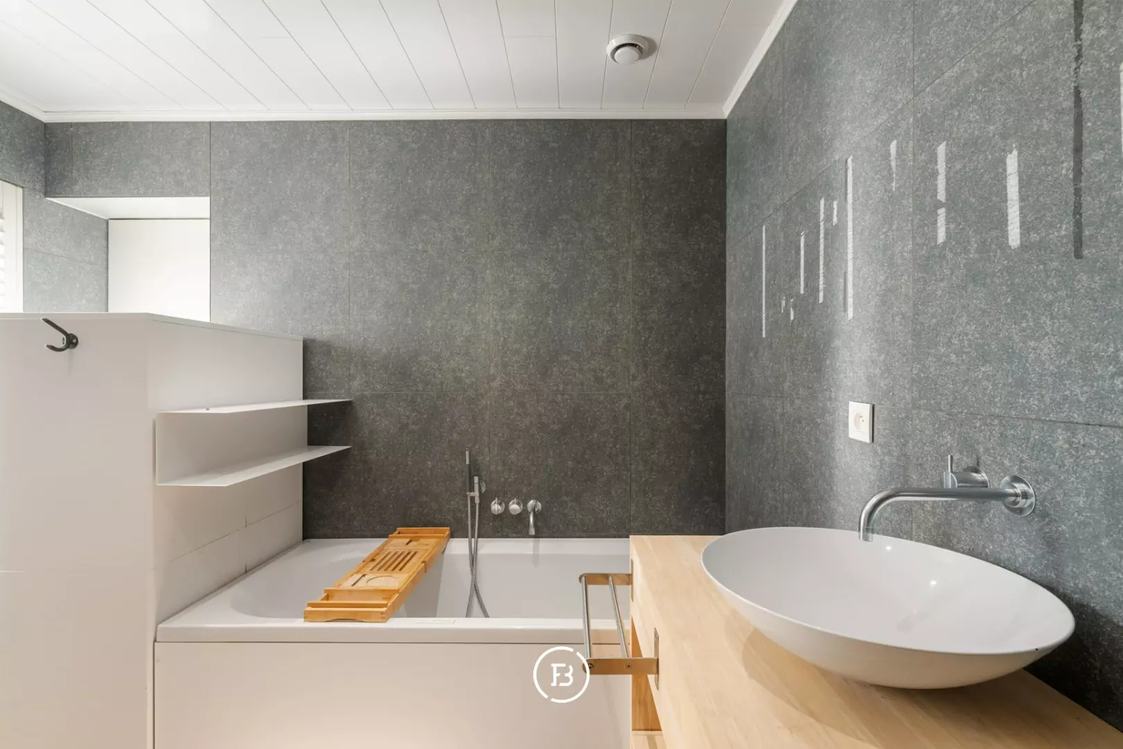 Le rez-de-chaussée constitue le cœur vivant du bâtiment. De larges baies vitrées laissent généreusement entrer la lumière naturelle et créent un lien visuel permanent avec les eaux du Donk. Le caractère ouvert de cet espace procure une sensation de liberté et de transparence, tandis que la vue reste constamment présente comme un décor apaisant. L’ensemble offre ainsi un cadre particulièrement attractif pour un concept de restauration, un showroom, un cabinet professionnel ou un bureau où l’expérience et la représentation occupent une place centrale. Le stationnement privé à l’avant du bâtiment apporte par ailleurs confort et discrétion supplémentaires pour les invités, clients ou patients.