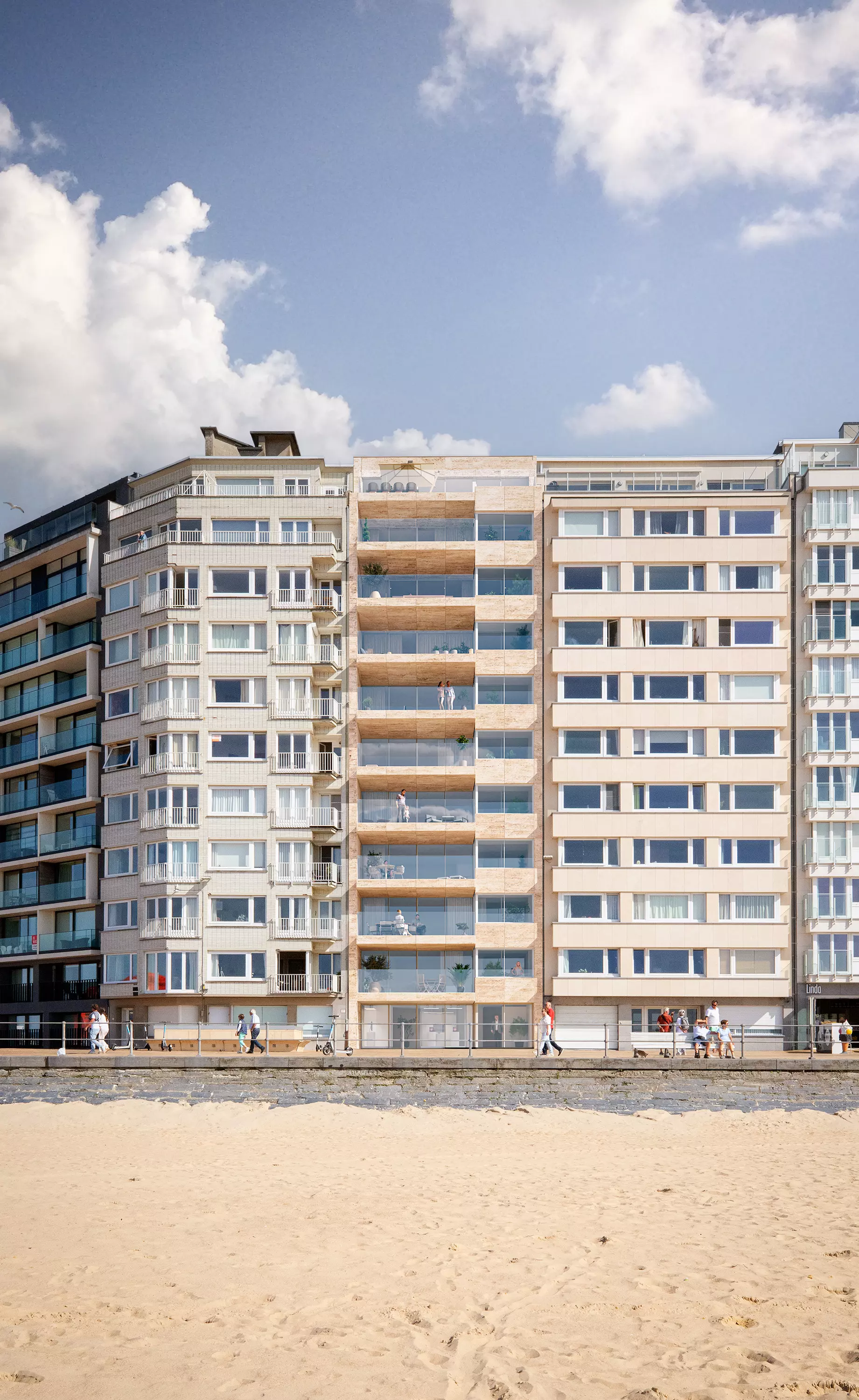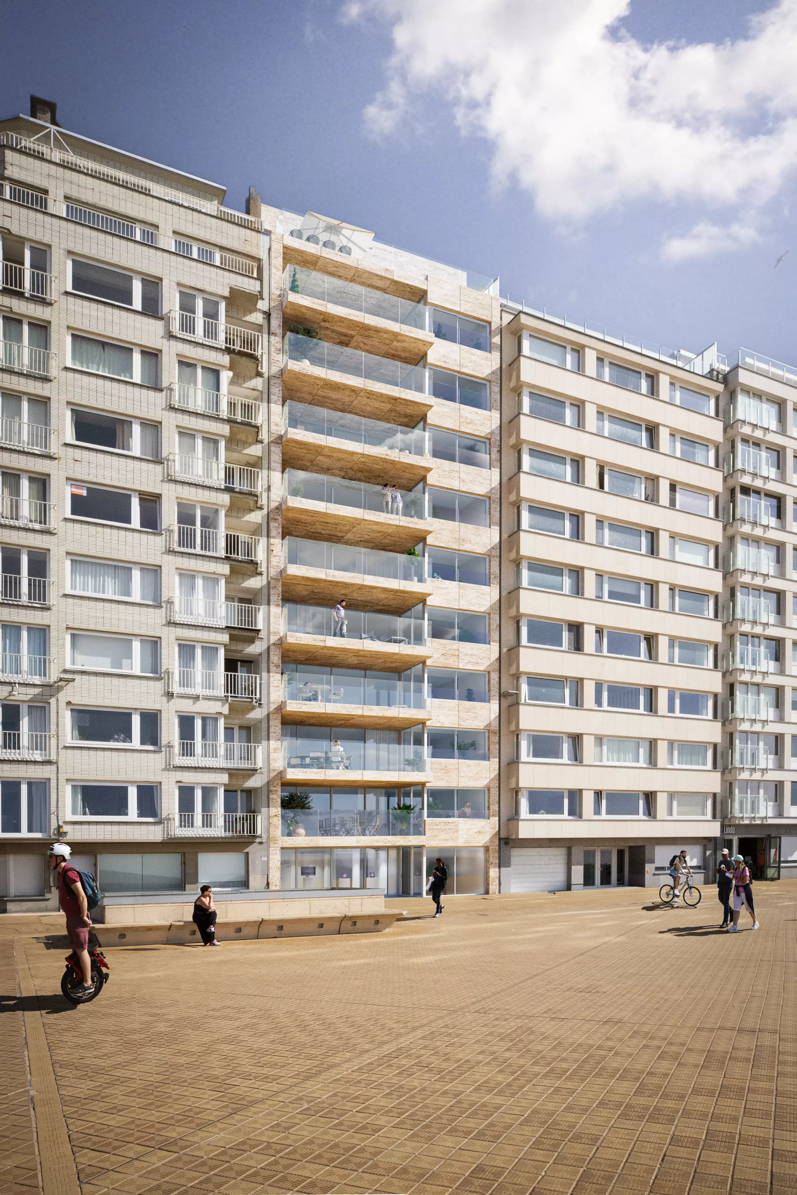 Armada bénéficie d’un emplacement exceptionnel sur la Promenade Albert I, directement sur la digue d’Ostende. Vous vivez ici à distance de marche du centre-ville, avec restaurants, commerces et culture à portée de main. La combinaison entre le calme de la promenade et la connexion directe avec la ville rend cette adresse particulièrement recherchée.