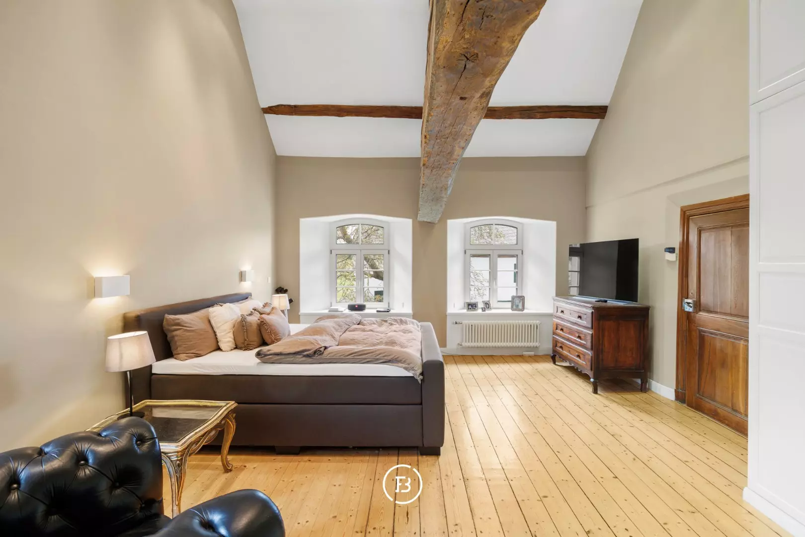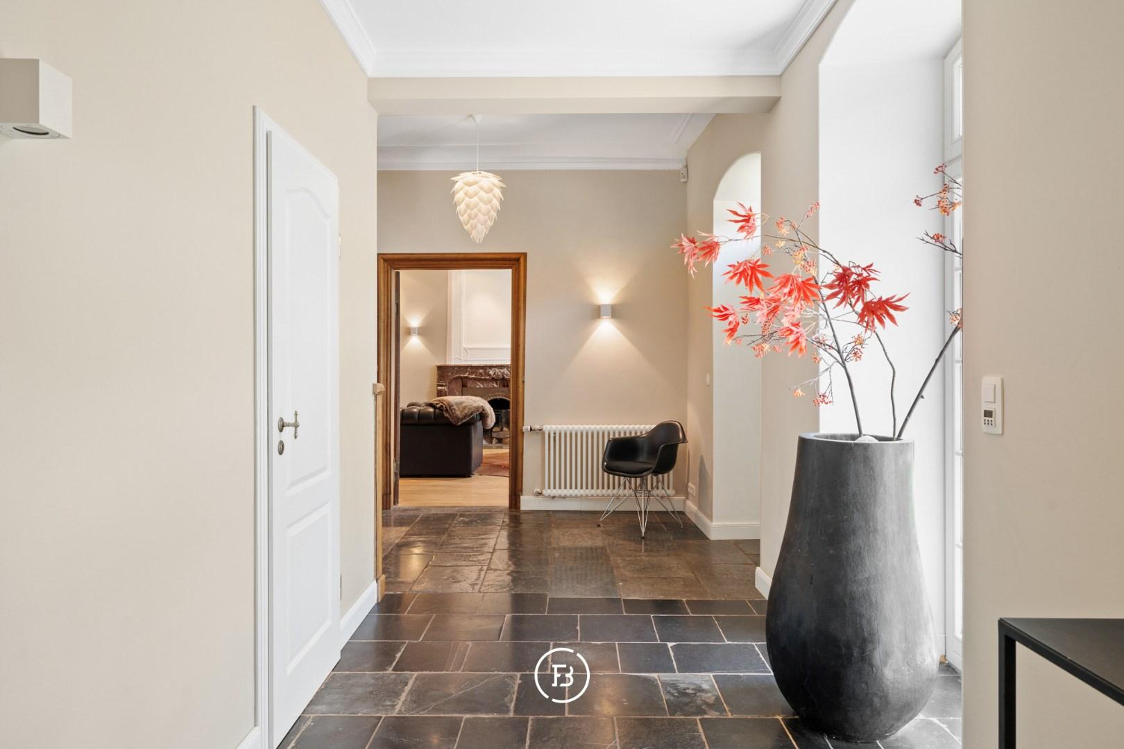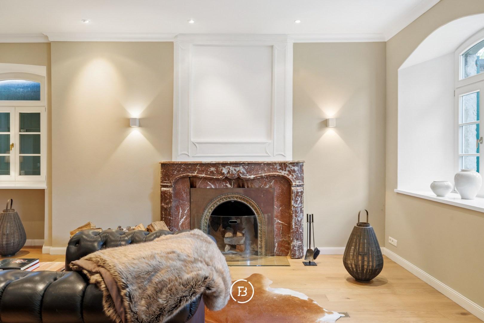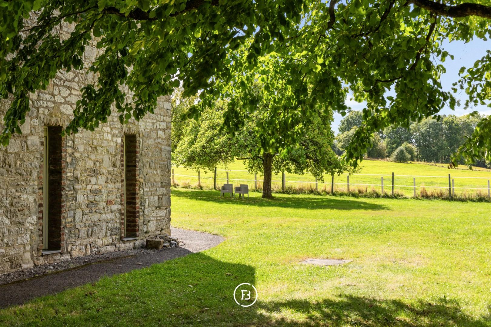 Situated in the beautiful Raeren, just a few minutes from Eupen and Aachen, we find 'Haus Bergscheid', a magnificent historic residence entirely built of blue stone. The house was recently completely renovated to contemporary standards while preserving its charming authenticity. The main residence consists of a spacious entrance hall, separate office, living room with fireplace, and a separate TV corner. In the other wing of the house, we find the spacious dining area with access to the kitchen and a large cellar serving as a laundry room and storage. Upstairs, there are three spacious bedrooms with two bathrooms, one of which is a master with an ensuite bathroom. The adjacent outbuilding currently serves as a summer house, with another living room, kitchen, and two bedrooms with a separate bathroom. The house is surrounded by its beautiful garden, currently equipped for the two horses, each with their own stable. A magnificent residence with magnificent views where it is delightful to enjoy nature.