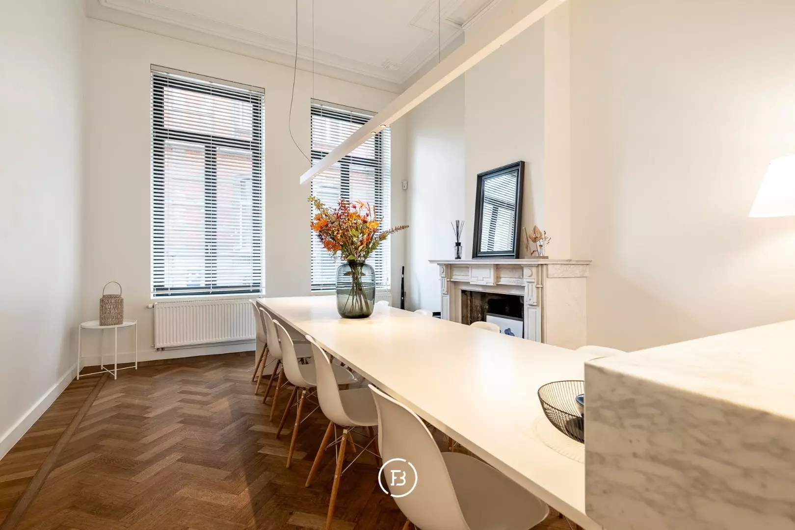 Premier étage: espace de vie lumineux avec une impressionnante baie vitrée, un mélange réussi de parquet en bois authentique et d'éléments modernes. Espace de rangement supplémentaire grâce à un mur de placards sur toute la longueur du salon.Deuxième étage: trois chambres à coucher et une salle de bains séparée.Troisième étage: chambre principale avec dressing attenant et salle de bains spacieuse, s'étendant sur tout l'étage. En plus, une terrasse supplémentaire unique ("black box") offrant une expérience de plein air particulière. Atouts:• Emplacement exceptionnel au centre de Gand• Rénovation de haute qualité (2018)• Prêt à emménager et fini avec souci du détail• Plusieurs espaces extérieurs Une opportunité exceptionnelle pour ceux qui recherchent une maison de maître élégante et prête à emménager avec un niveau de finition élevé, dans l'un des quartiers les plus recherchés de Gand.