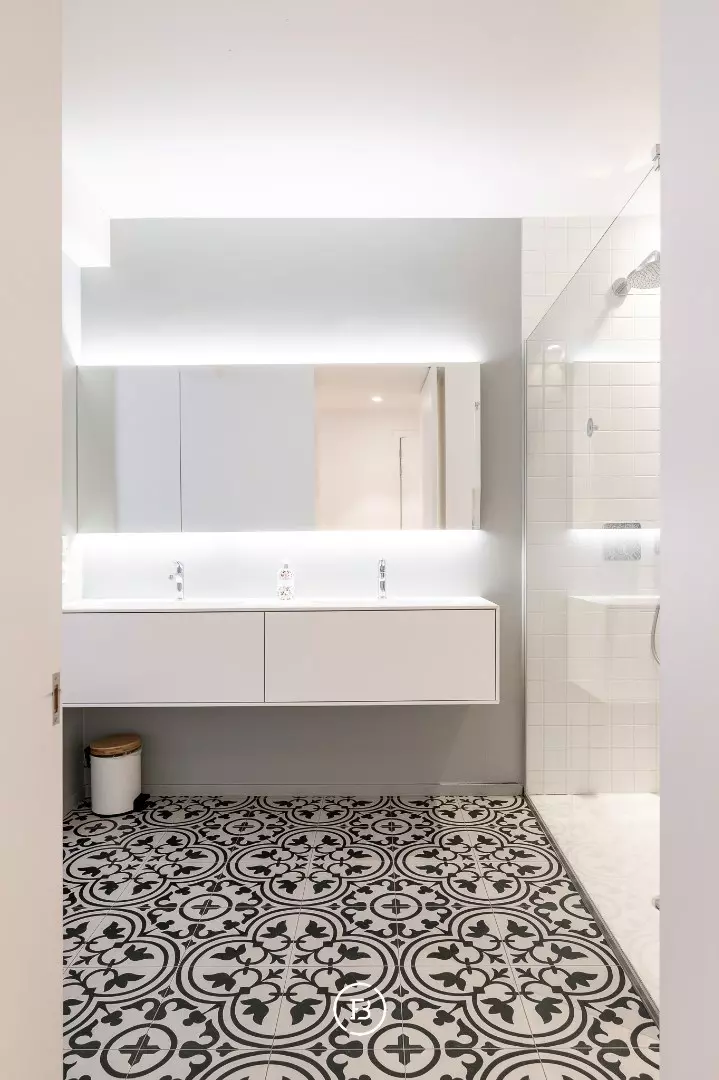 Cet étage abrite deux chambres spacieuses, dont une avec dressing. Les deux chambres disposent d'une salle de bains entièrement équipée. Il y a également des toilettes séparées et un hall de nuit avec des armoires encastrées.