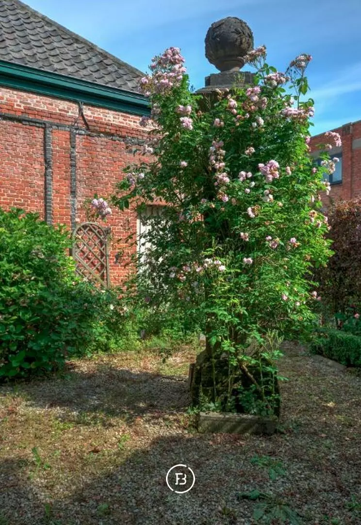 Par le biais de l'ancien passage pour les calèches, on accède à une magnifique cour intérieure qui mène aux anciennes écuries. De plus, deux places de garage sont prévues. Le plus grand atout de la propriété est l'immense jardin avec étang et une piscine ancienne cachée derrière la maison. Une fois que vous fermez la grande porte d'entrée, vous pourrez profiter pleinement de la nature et du calme, tout en étant situé en plein centre.
