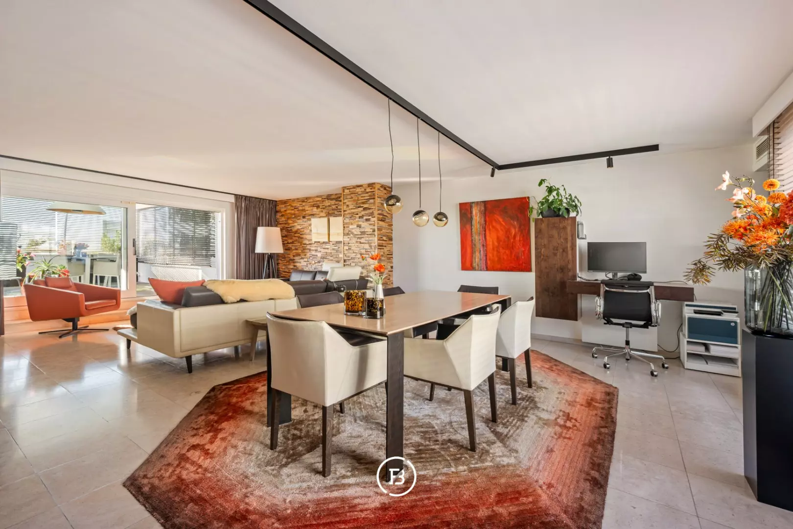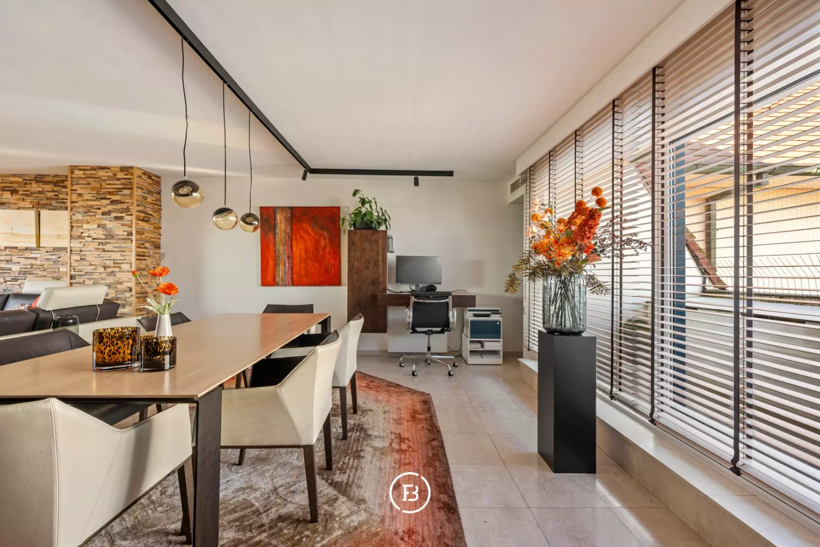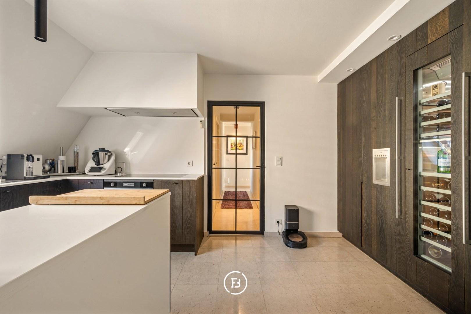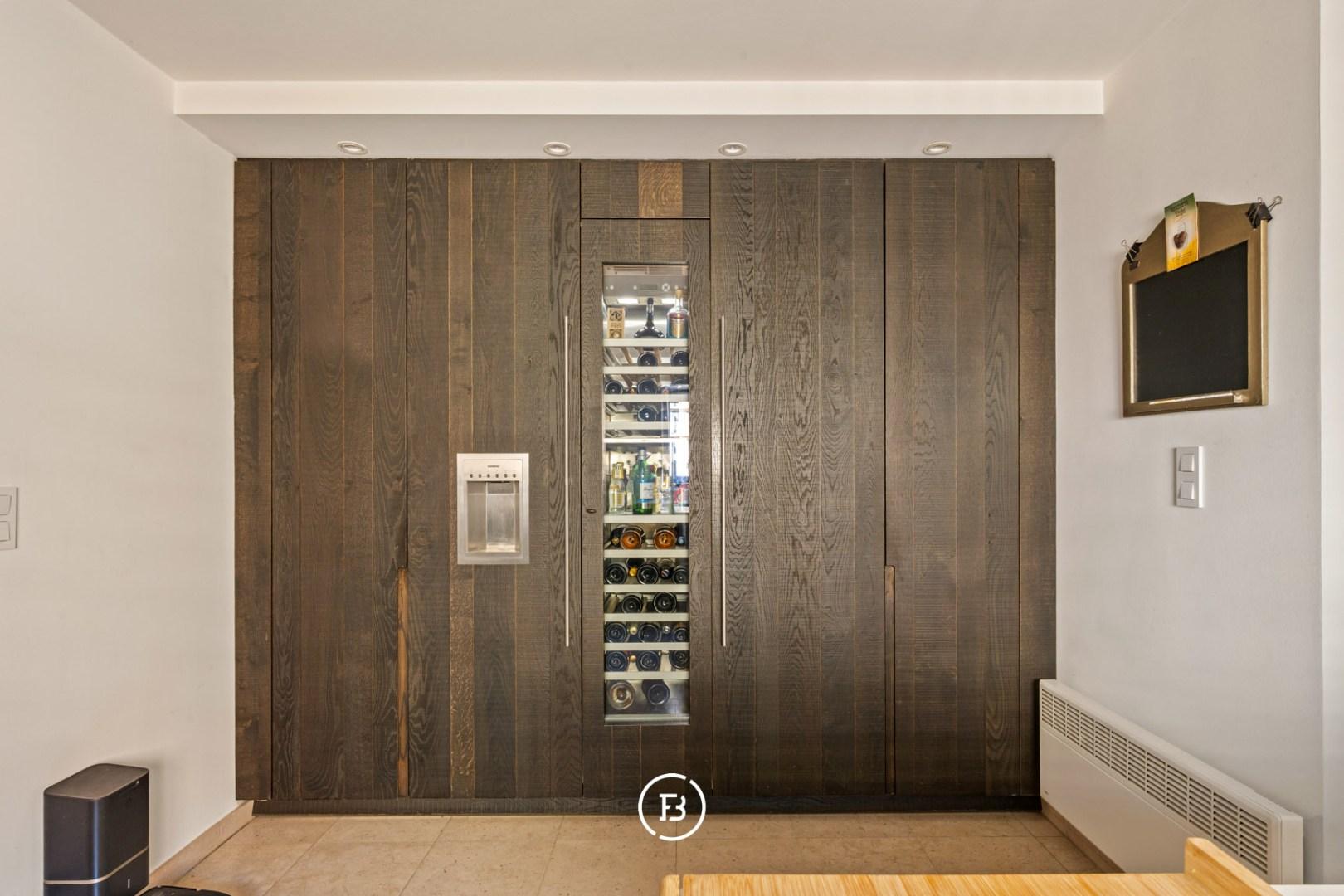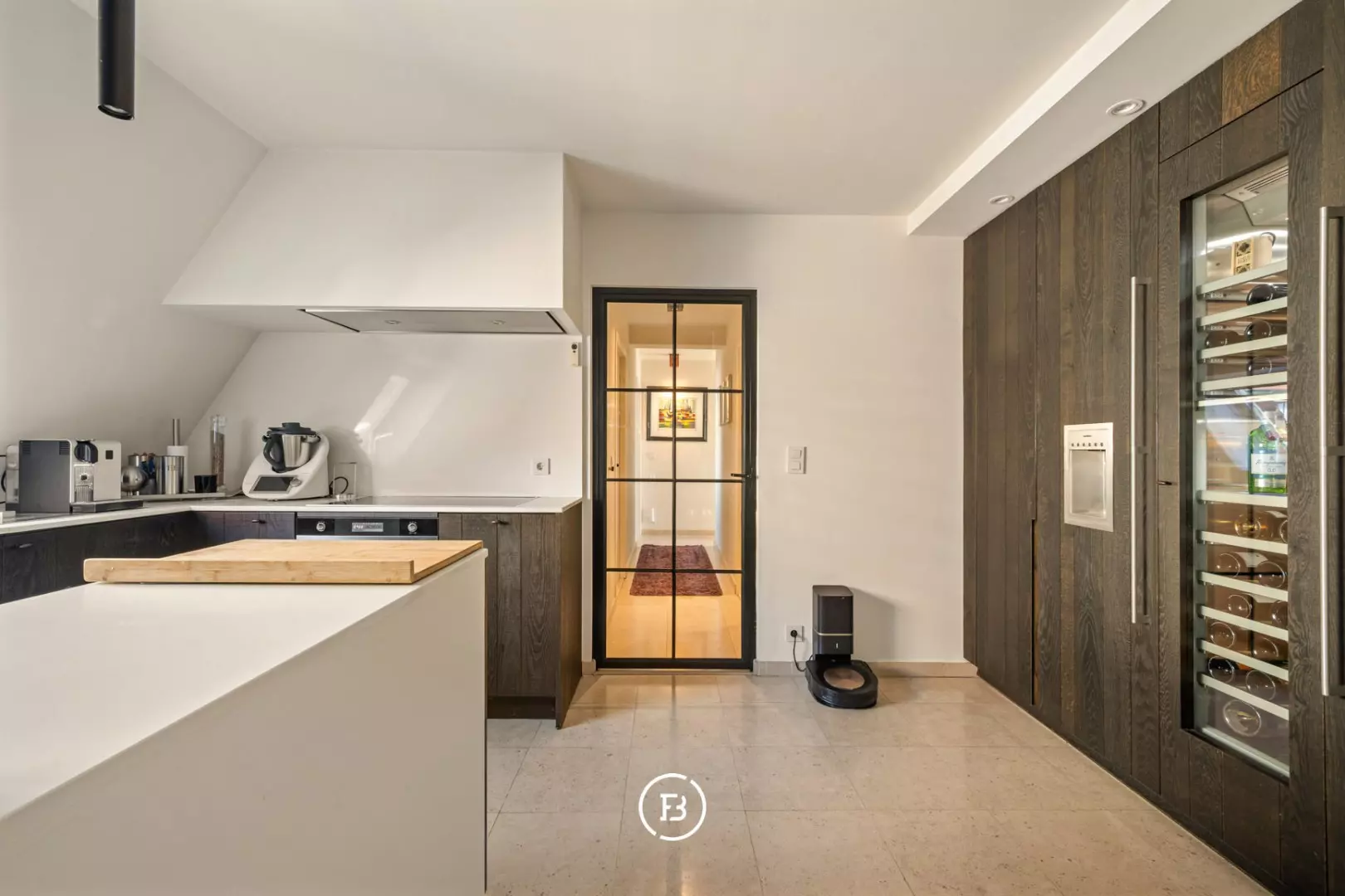 L’appartement bénéficie de finitions de haute qualité avec du mobilier sur mesure et est accessible via un ascenseur privatif arrivant directement à l’étage.